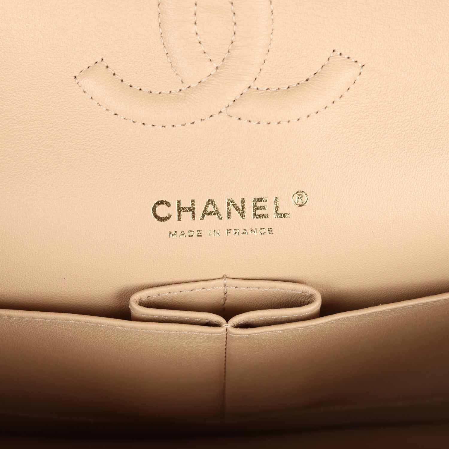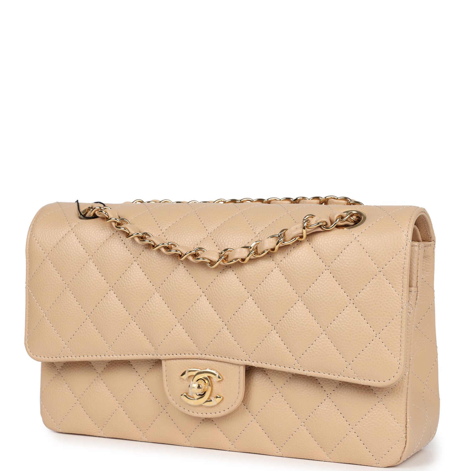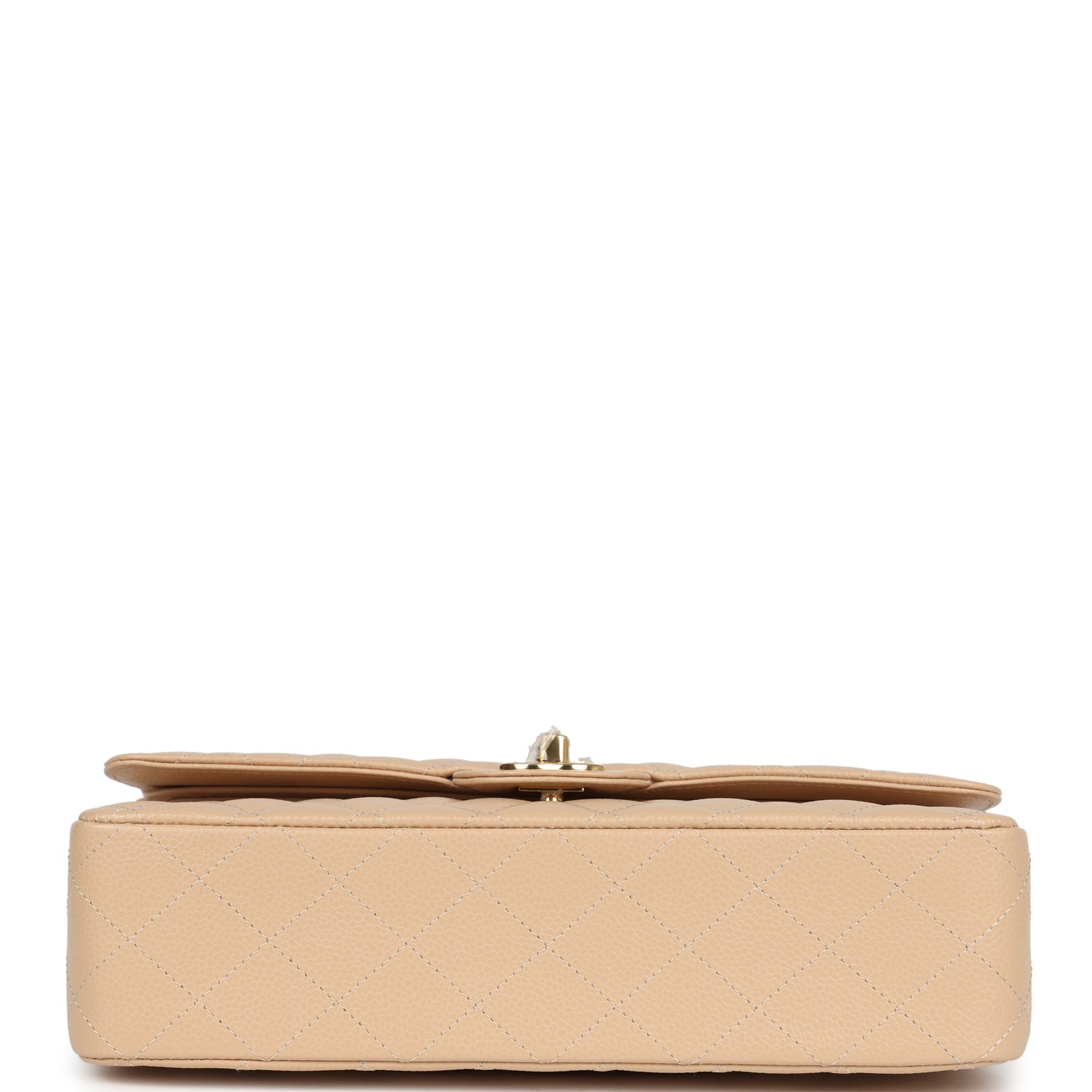 Chanel Medium Classic Double Flap Beige Caviar Gold Hardware