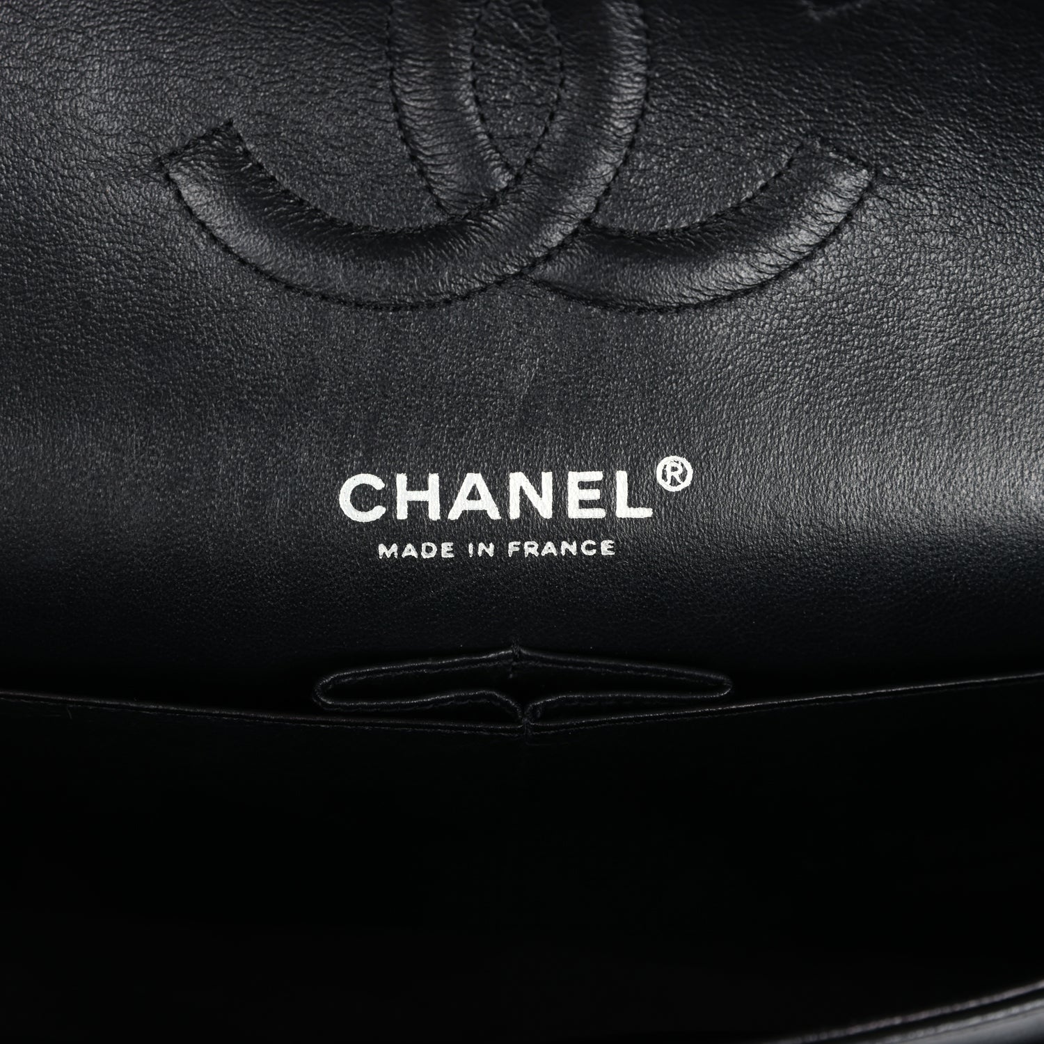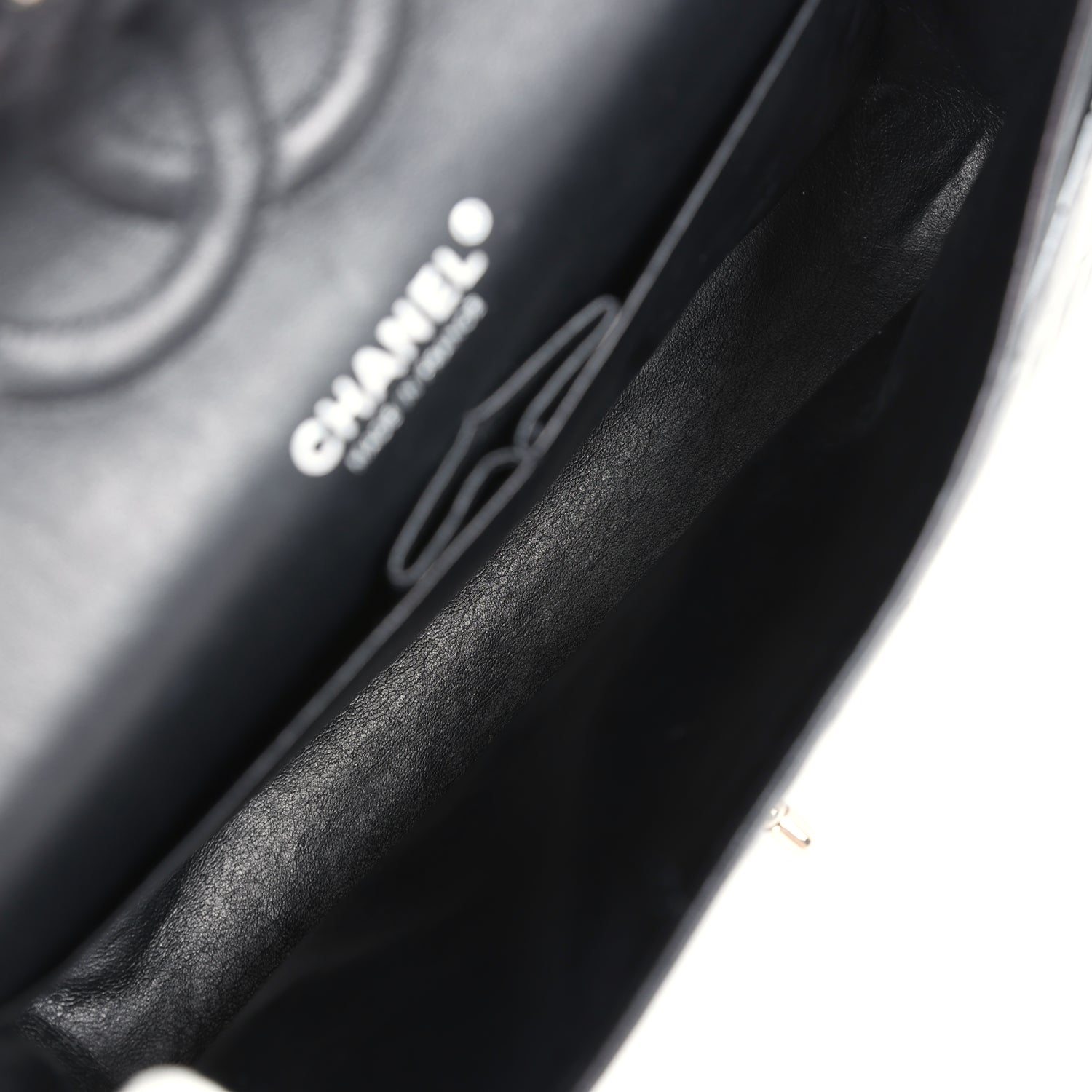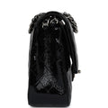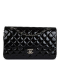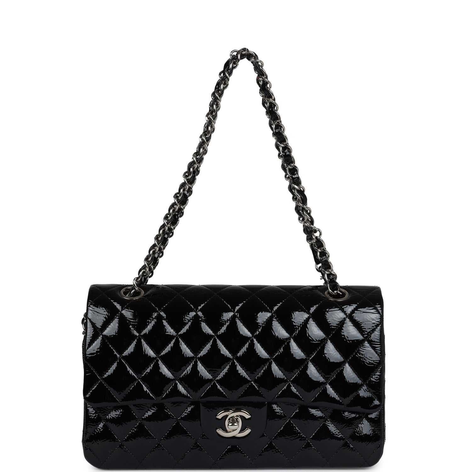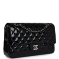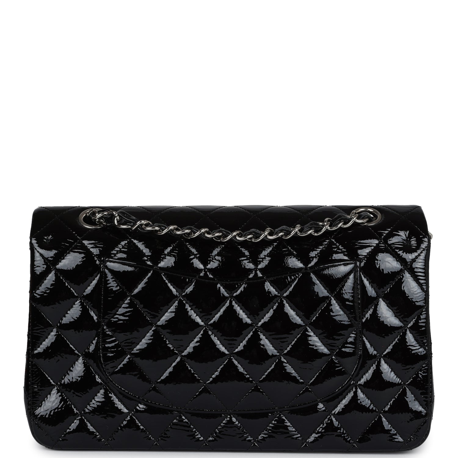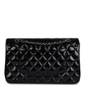 Chanel Medium Classic Double Flap Bag Black Crumpled Patent Leather Silver Hardware