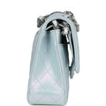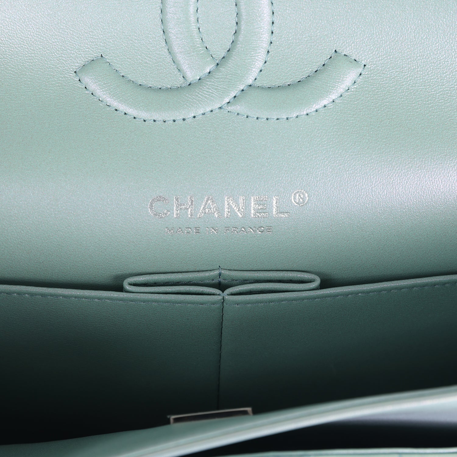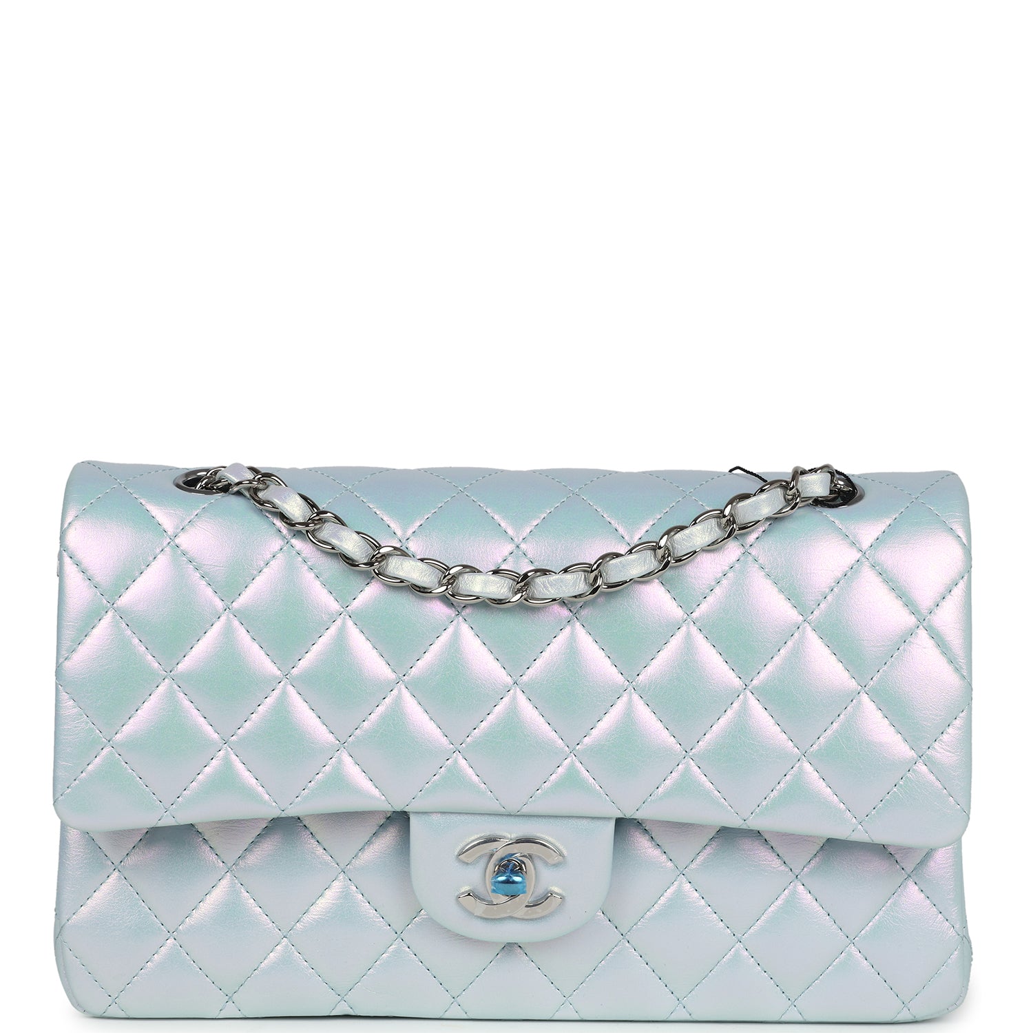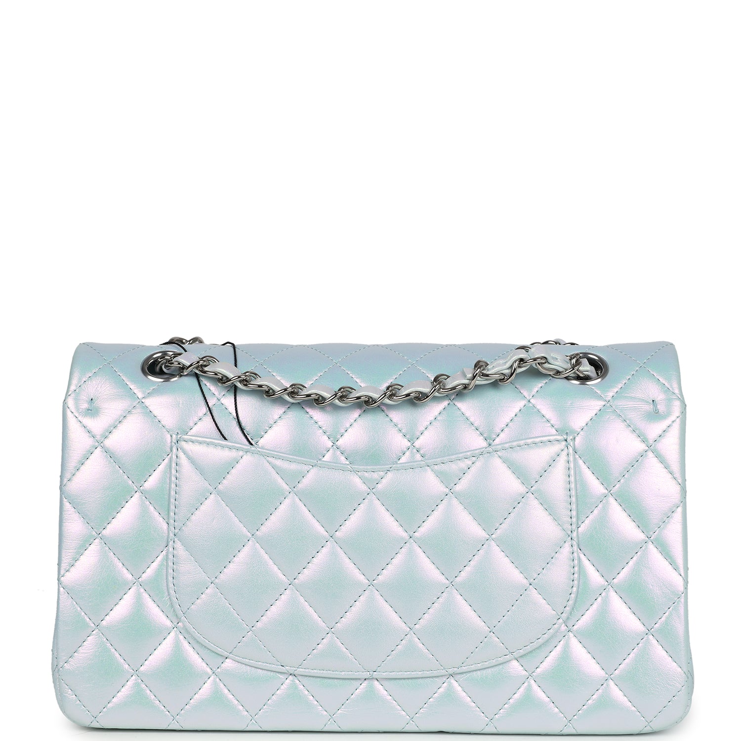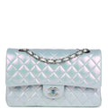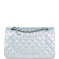 Chanel Medium Classic Double Flap Bag Blue Iridescent Calfskin Silver Hardware