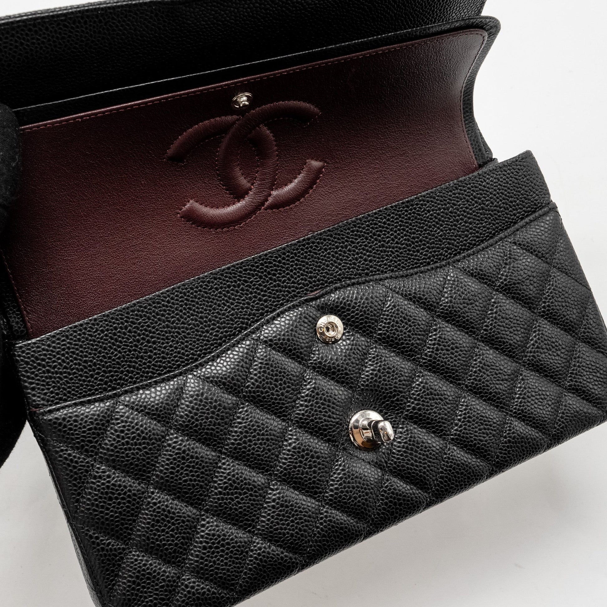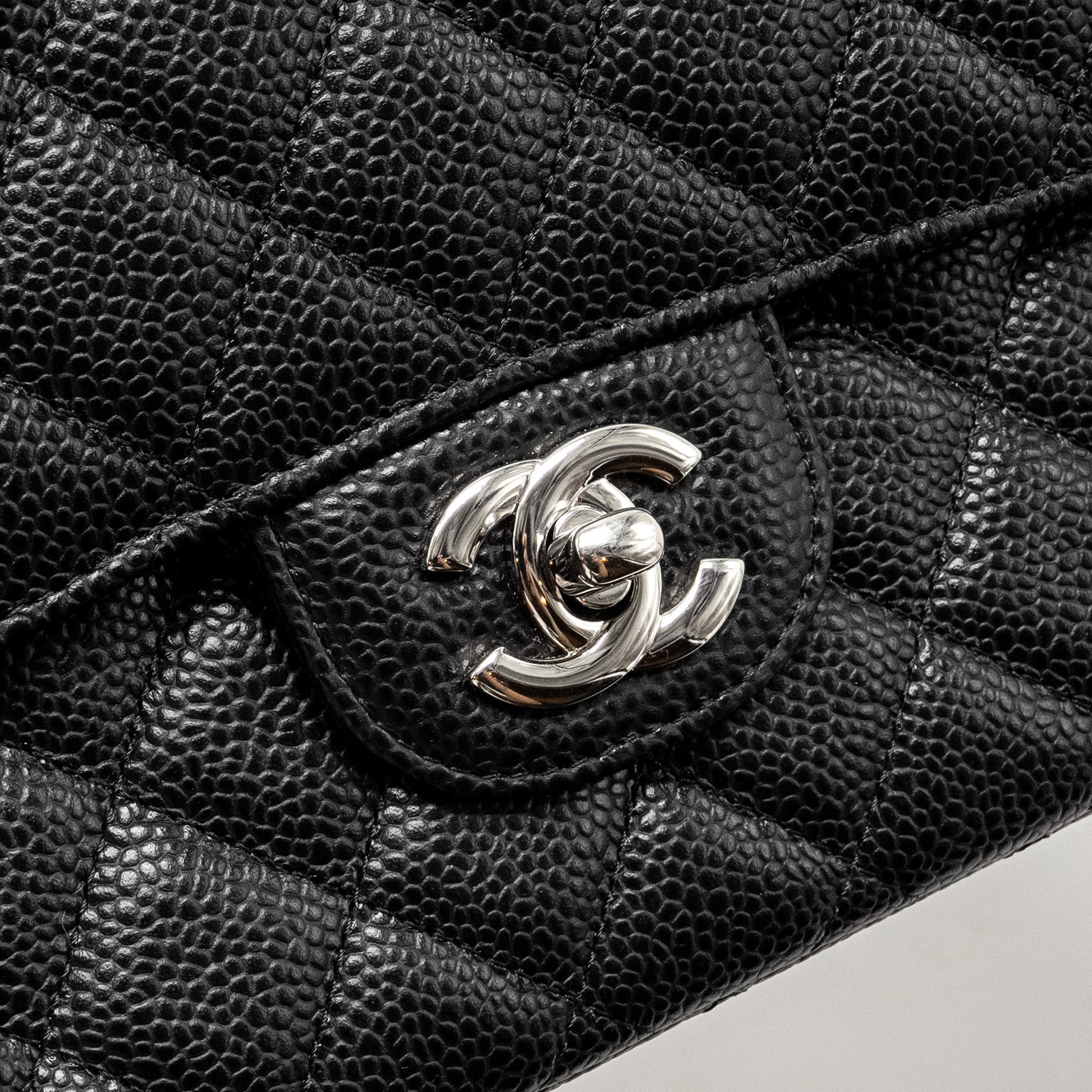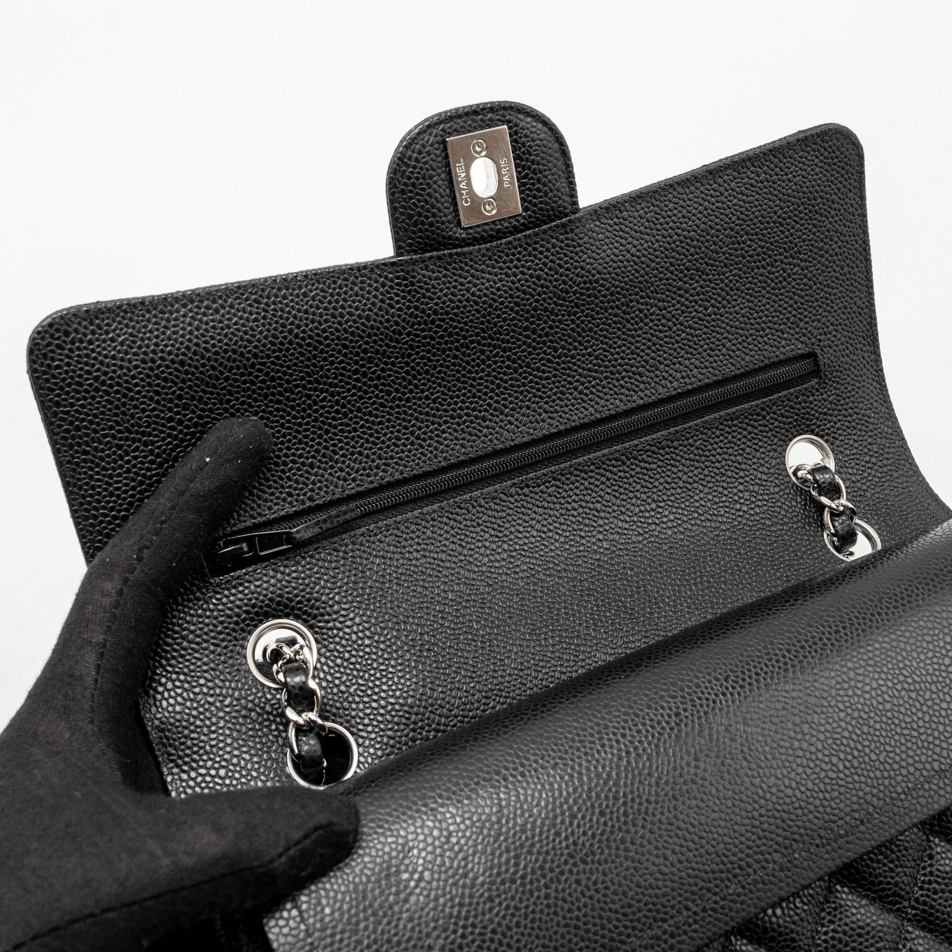 CHANEL Medium Classic Double Flap Bag Caviar Black SHW (Microchip)