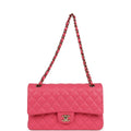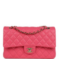 Chanel Medium Classic Double Flap Hot Pink Shiny Caviar Light Gold Hardware