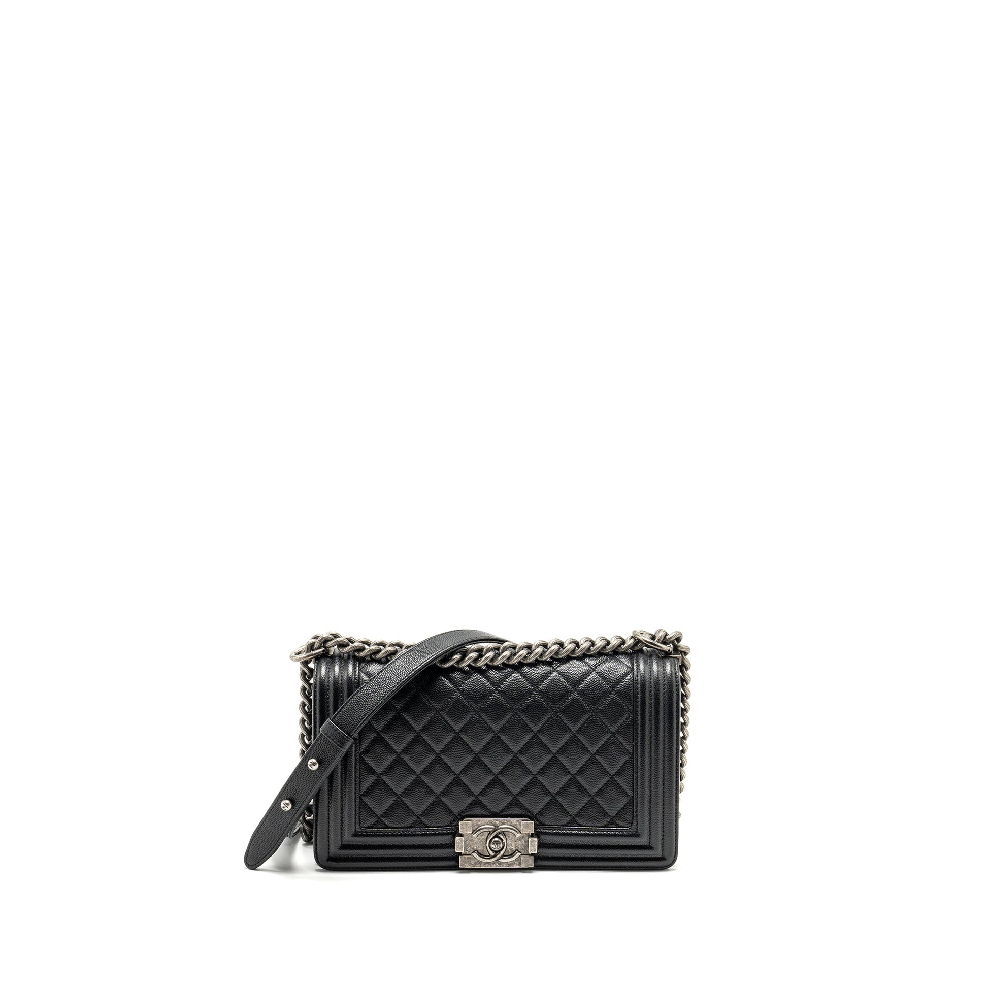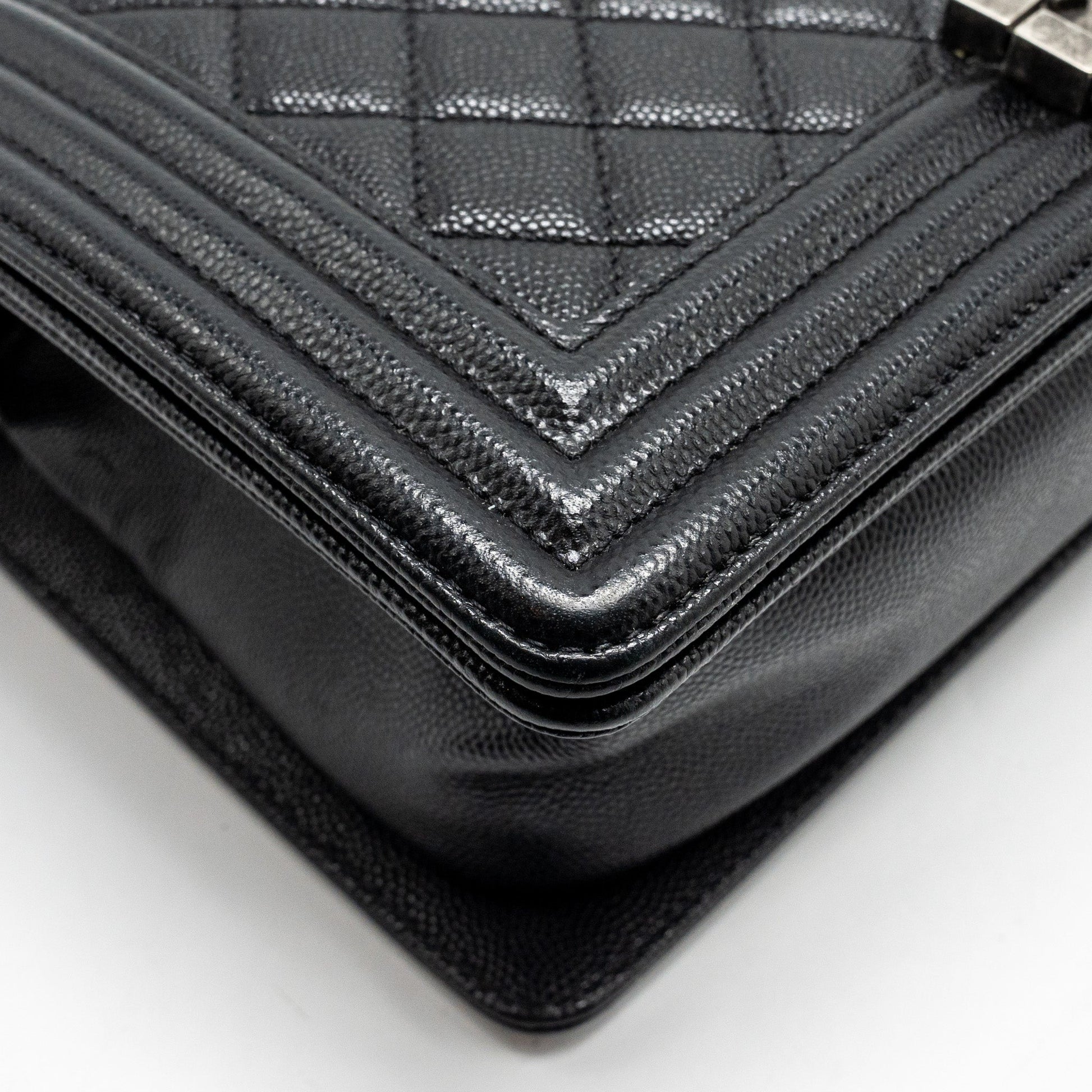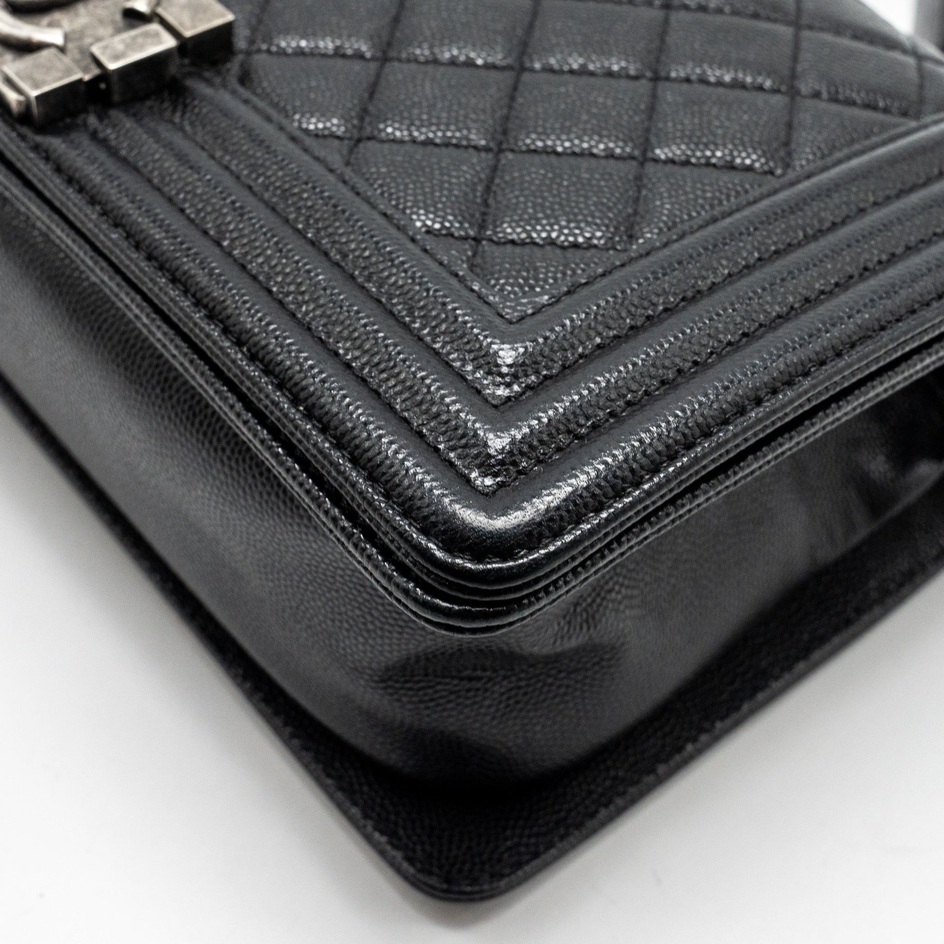 Chanel Medium Boy Bag Caviar Black Ruthenium Silver Hardware