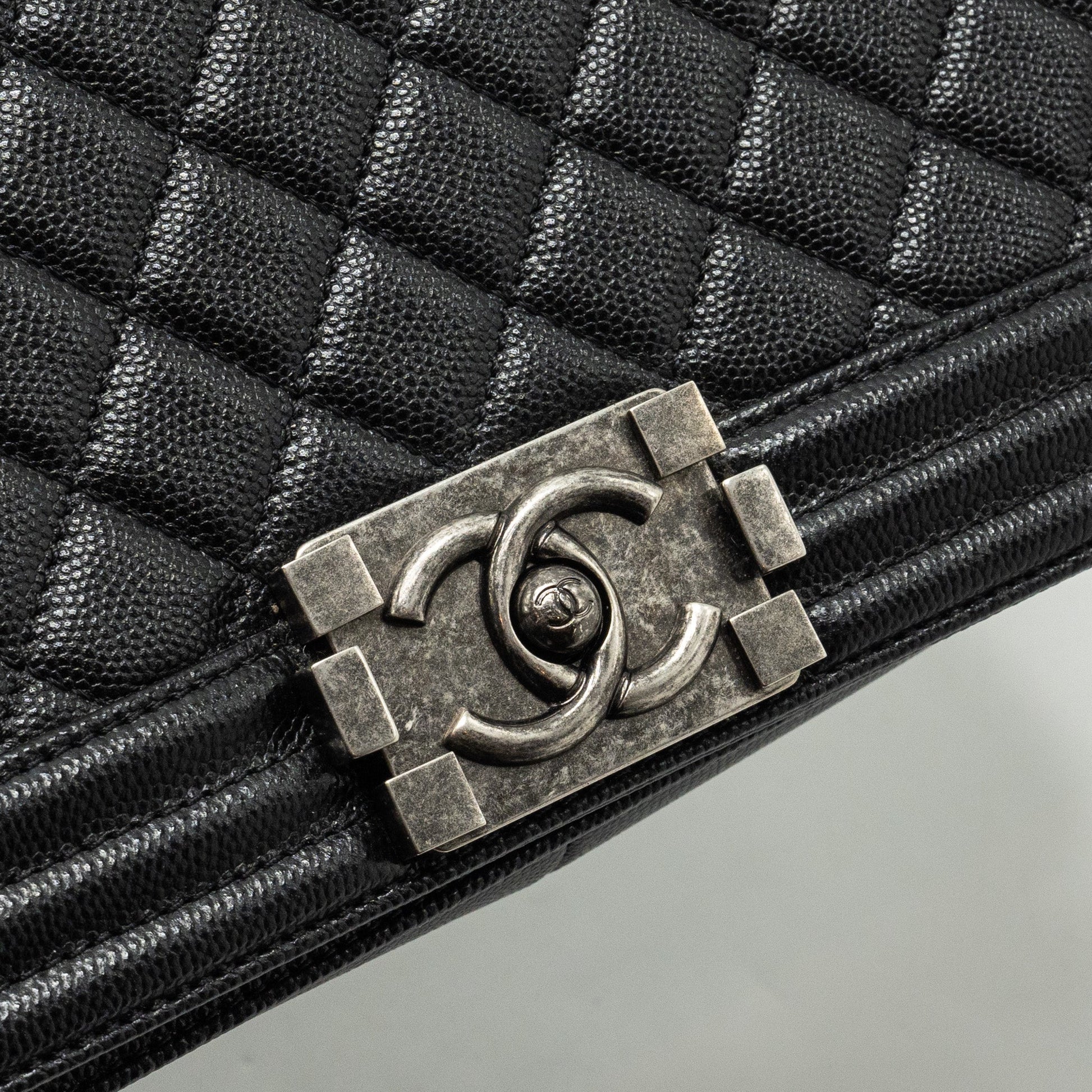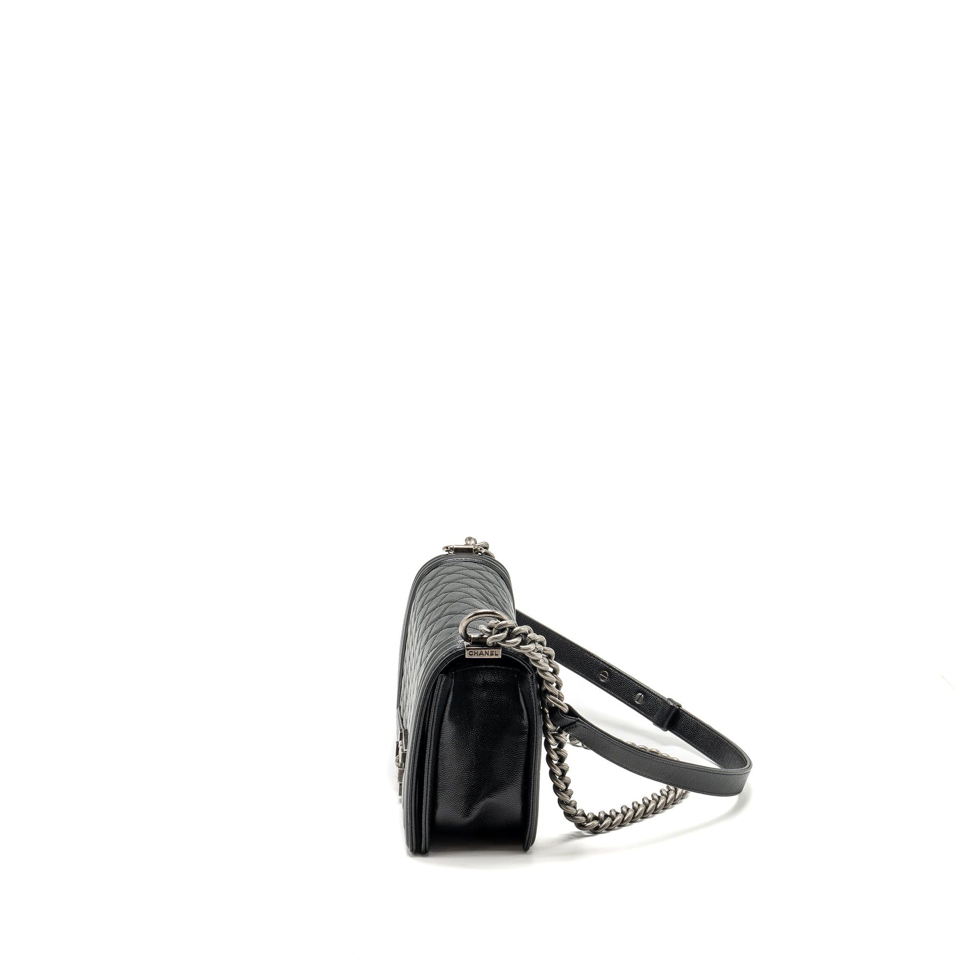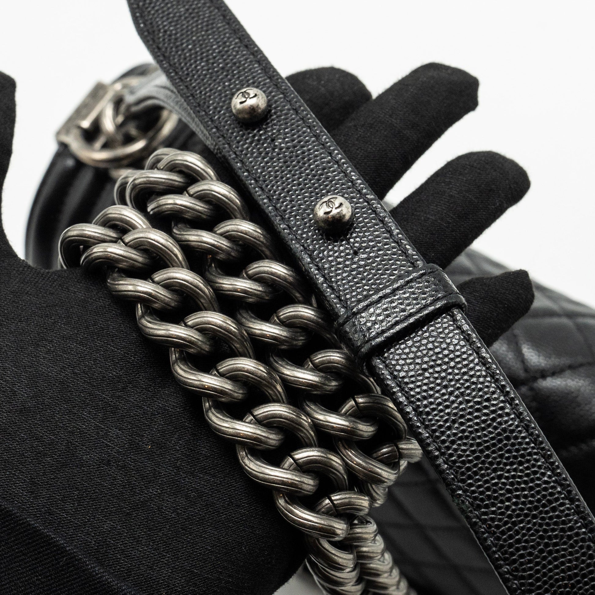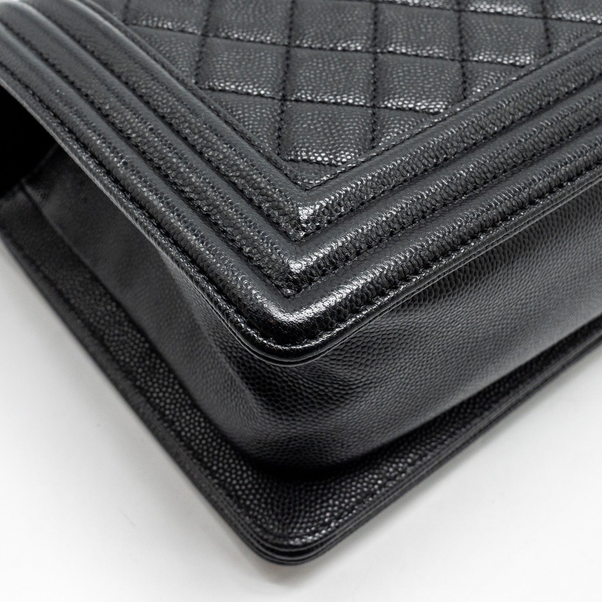 Chanel Medium Boy Bag Caviar Black Ruthenium Silver Hardware