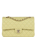 Chanel Medium Classic Double Flap Bag Light Green Lambskin Light Gold Hardware