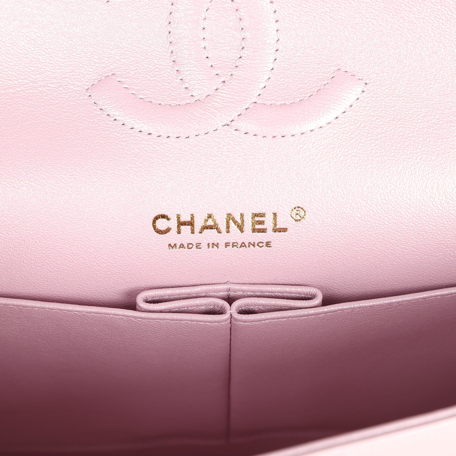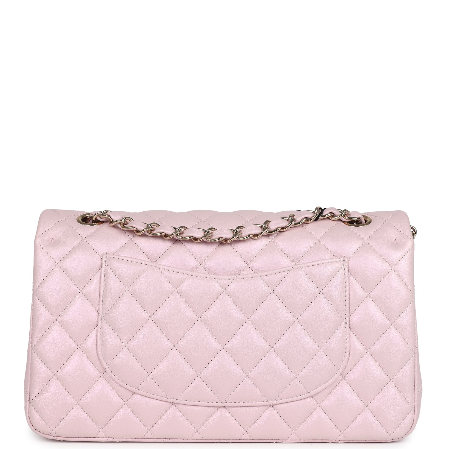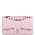 Chanel Medium Classic Double Flap Bag Pink Iridescent Lambskin Light Gold Hardware
