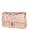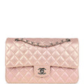 Chanel Medium Classic Double Flap Bag Pink Iridescent Lambskin Silver Hardware