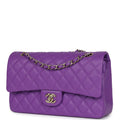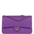 Chanel Medium Classic Double Flap Bag Purple Caviar Light Gold Hardware