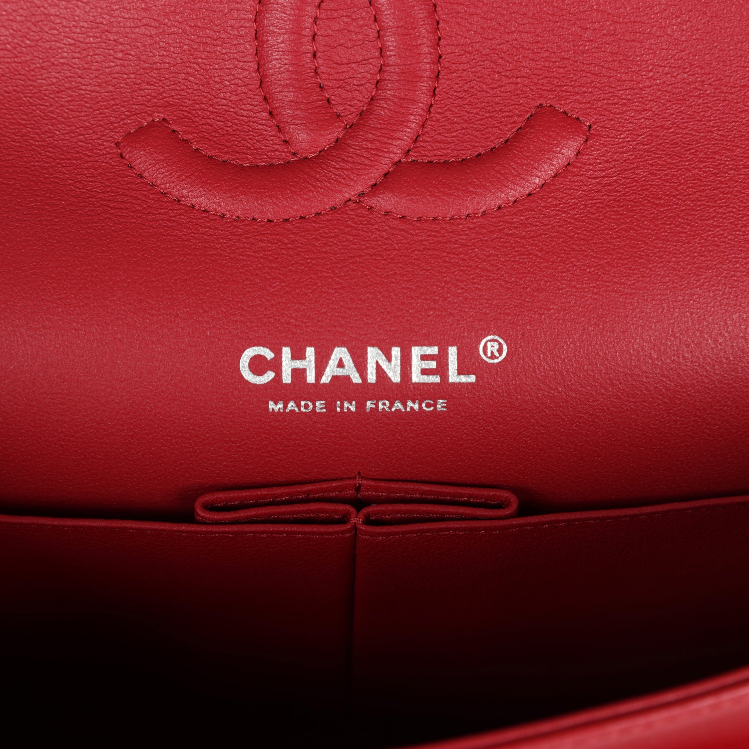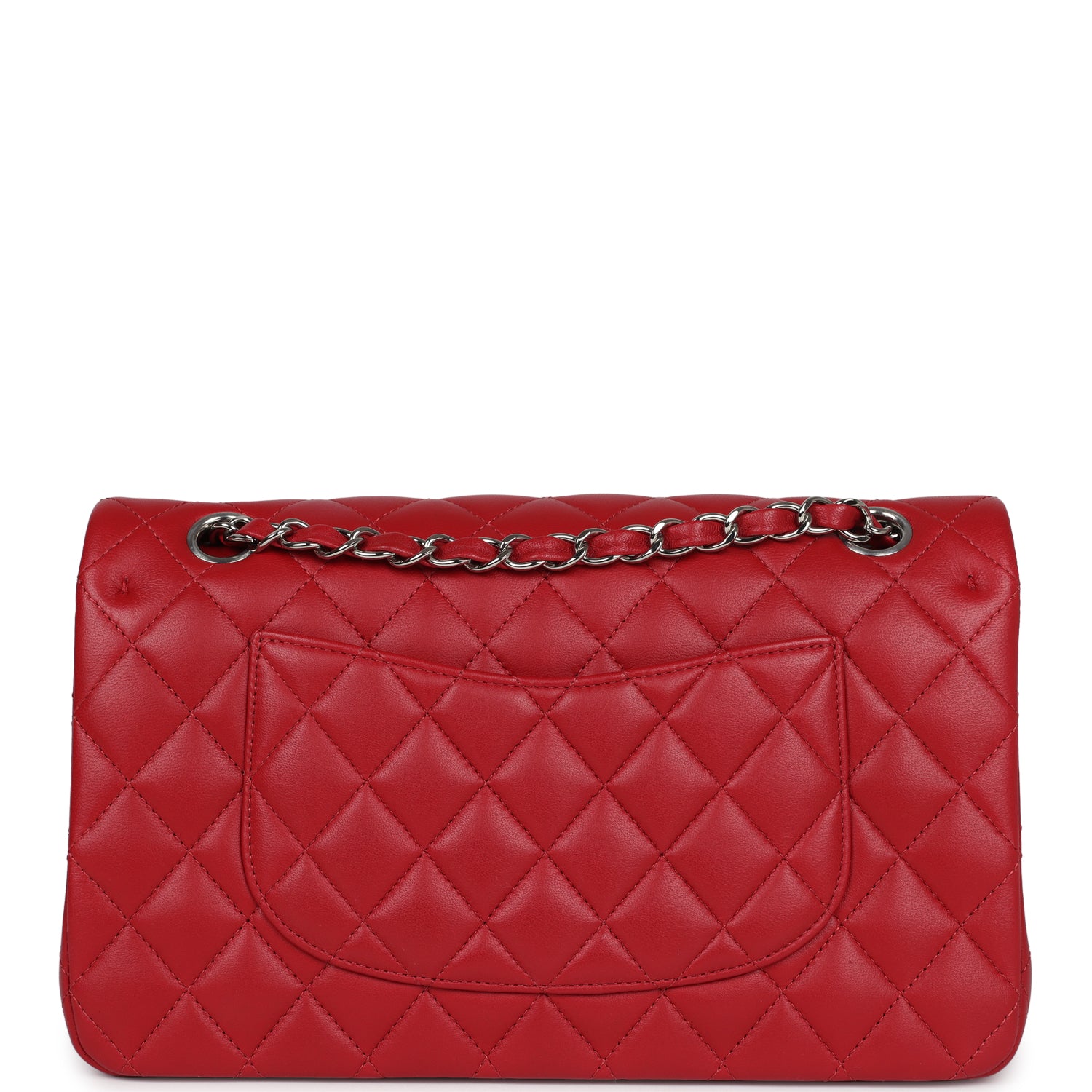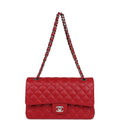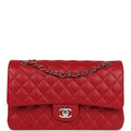 Chanel Medium Classic Double Flap Bag Red Lambskin Silver Hardware