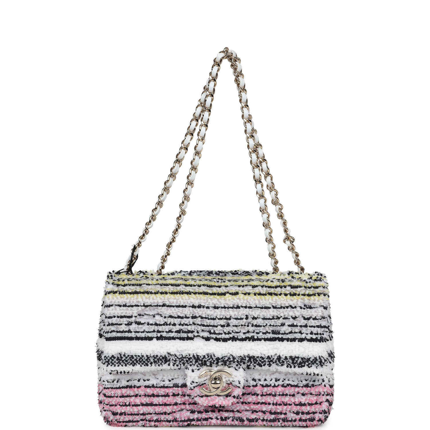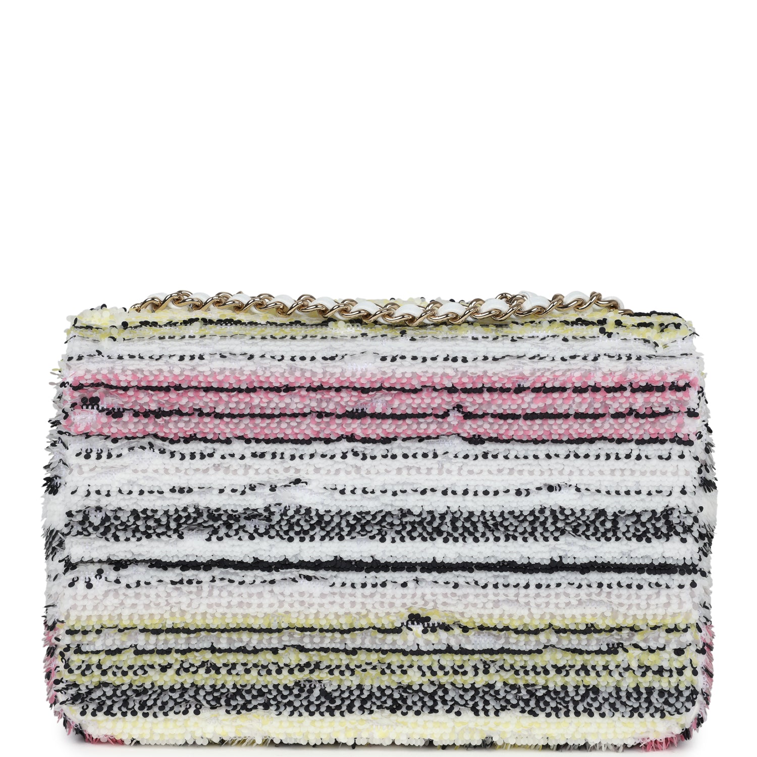 Chanel Mini Rectangular Flap White Multicolor Sequin Light Gold Hardware