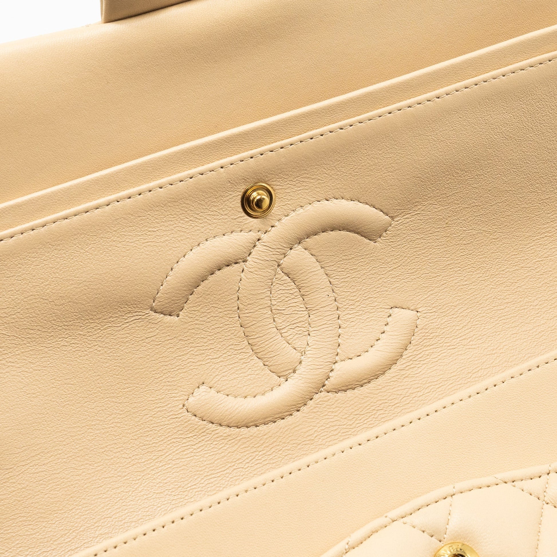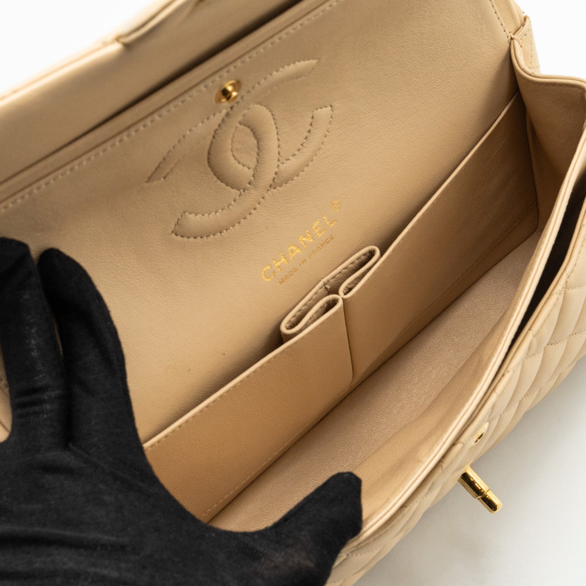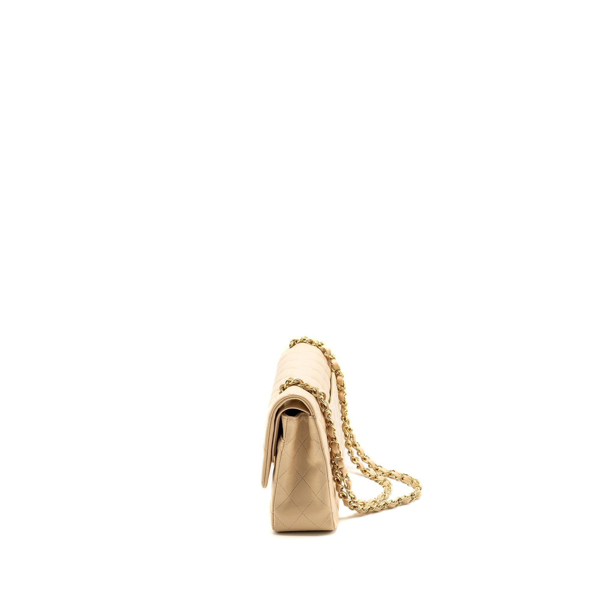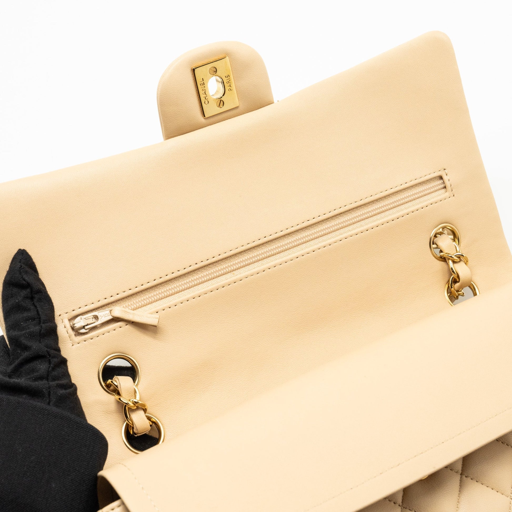 Chanel Medium Classic Double Flat Bag Lambskin Beige GHW