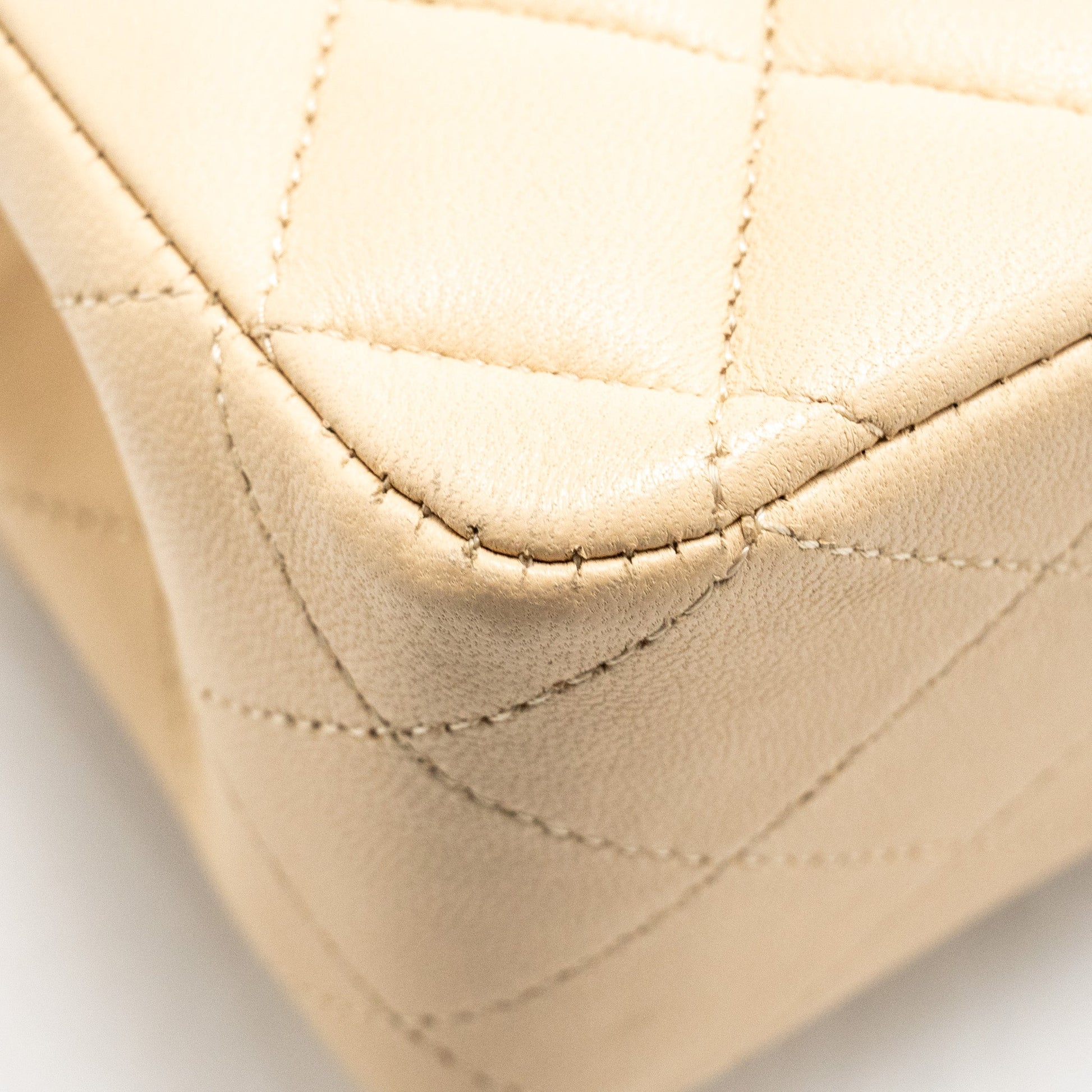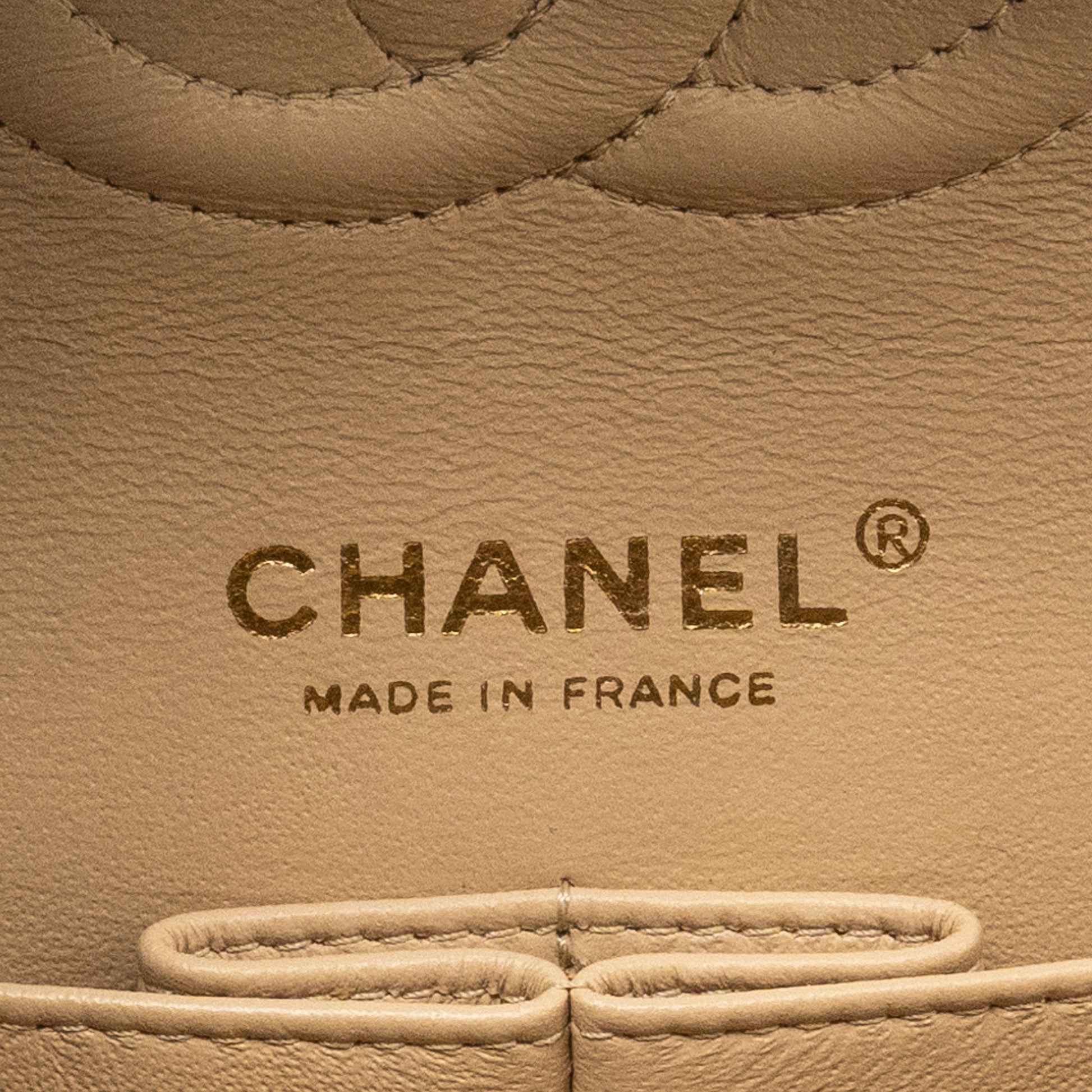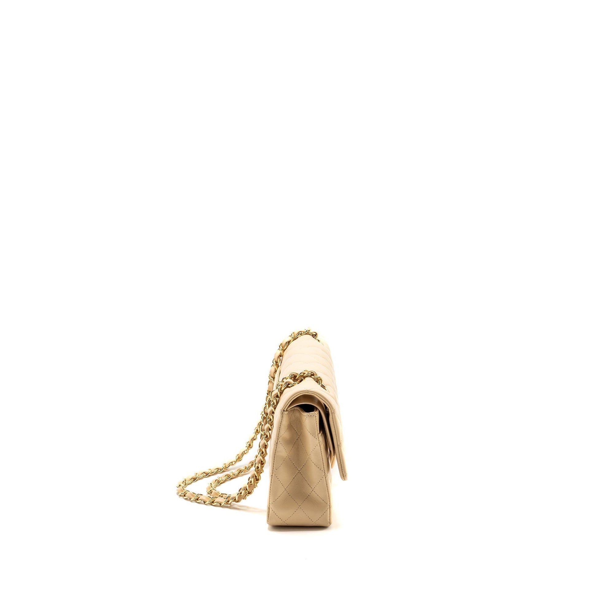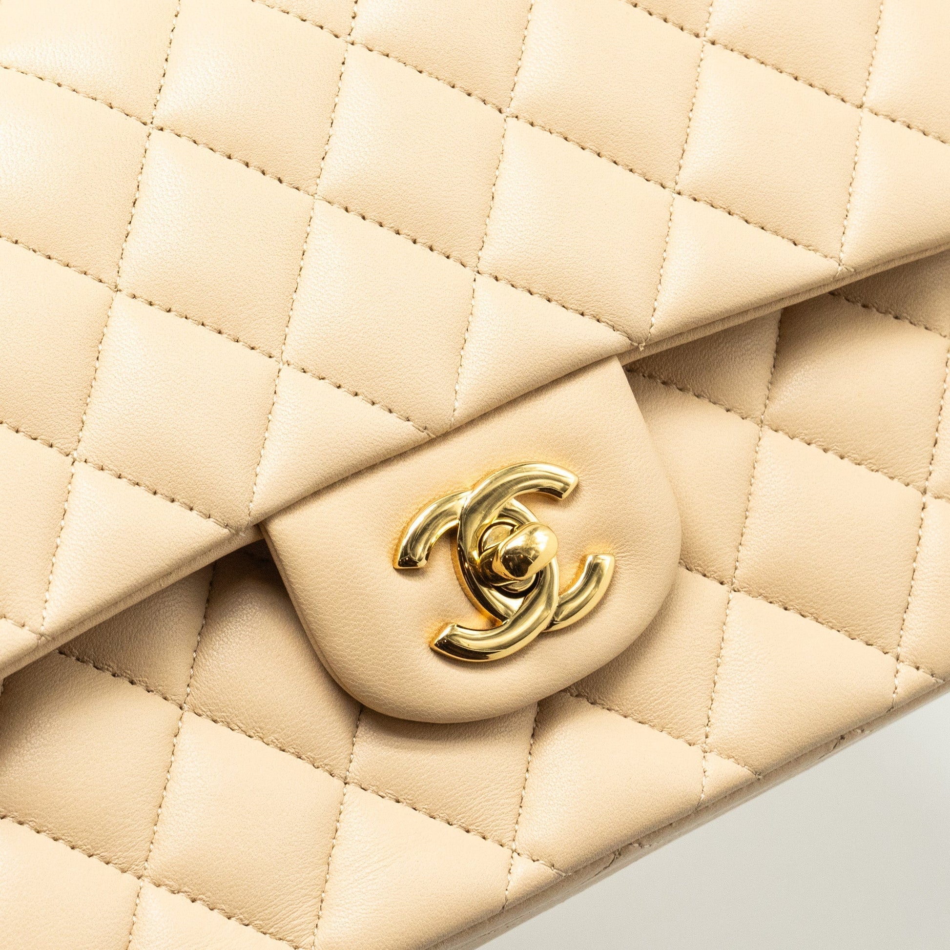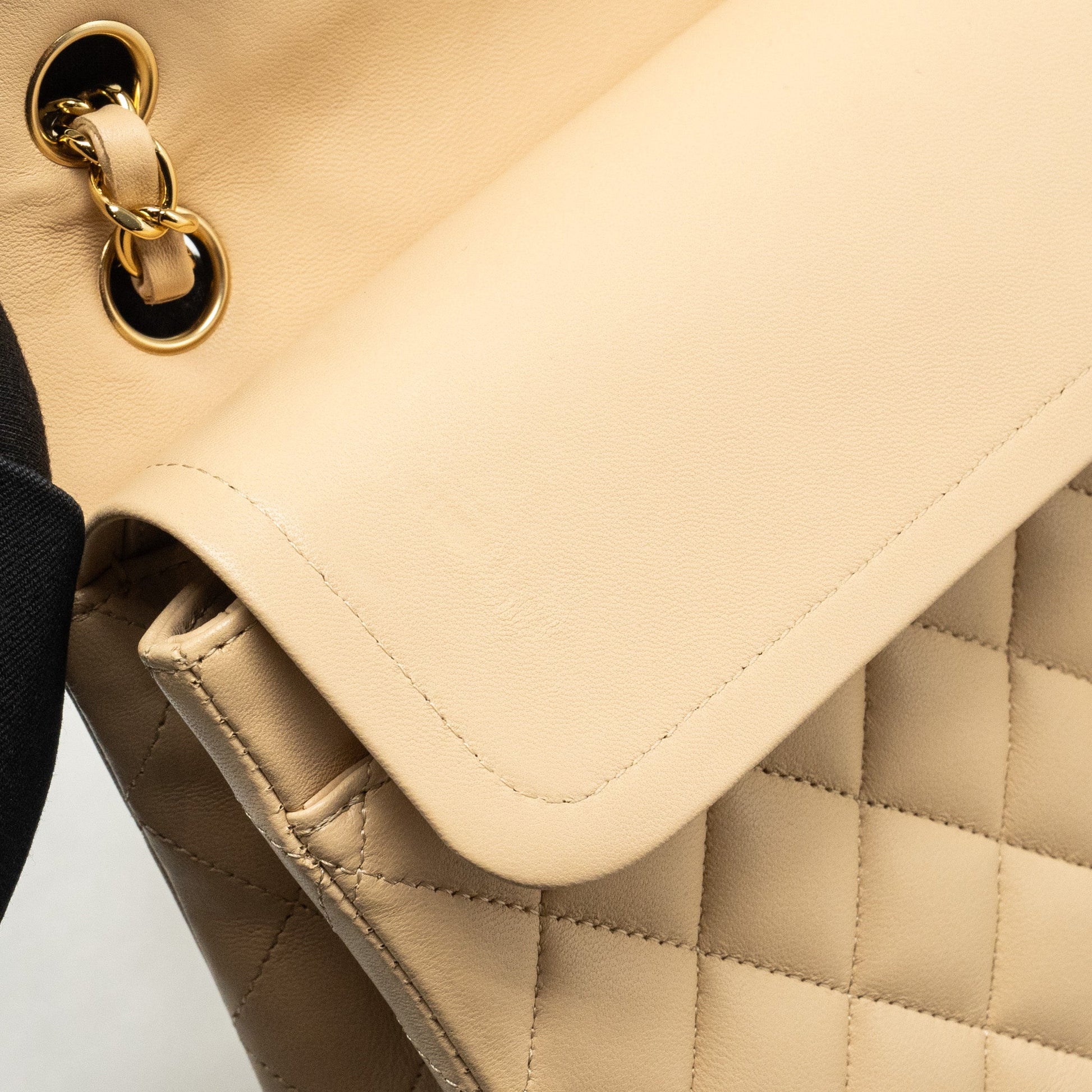 Chanel Medium Classic Double Flat Bag Lambskin Beige GHW