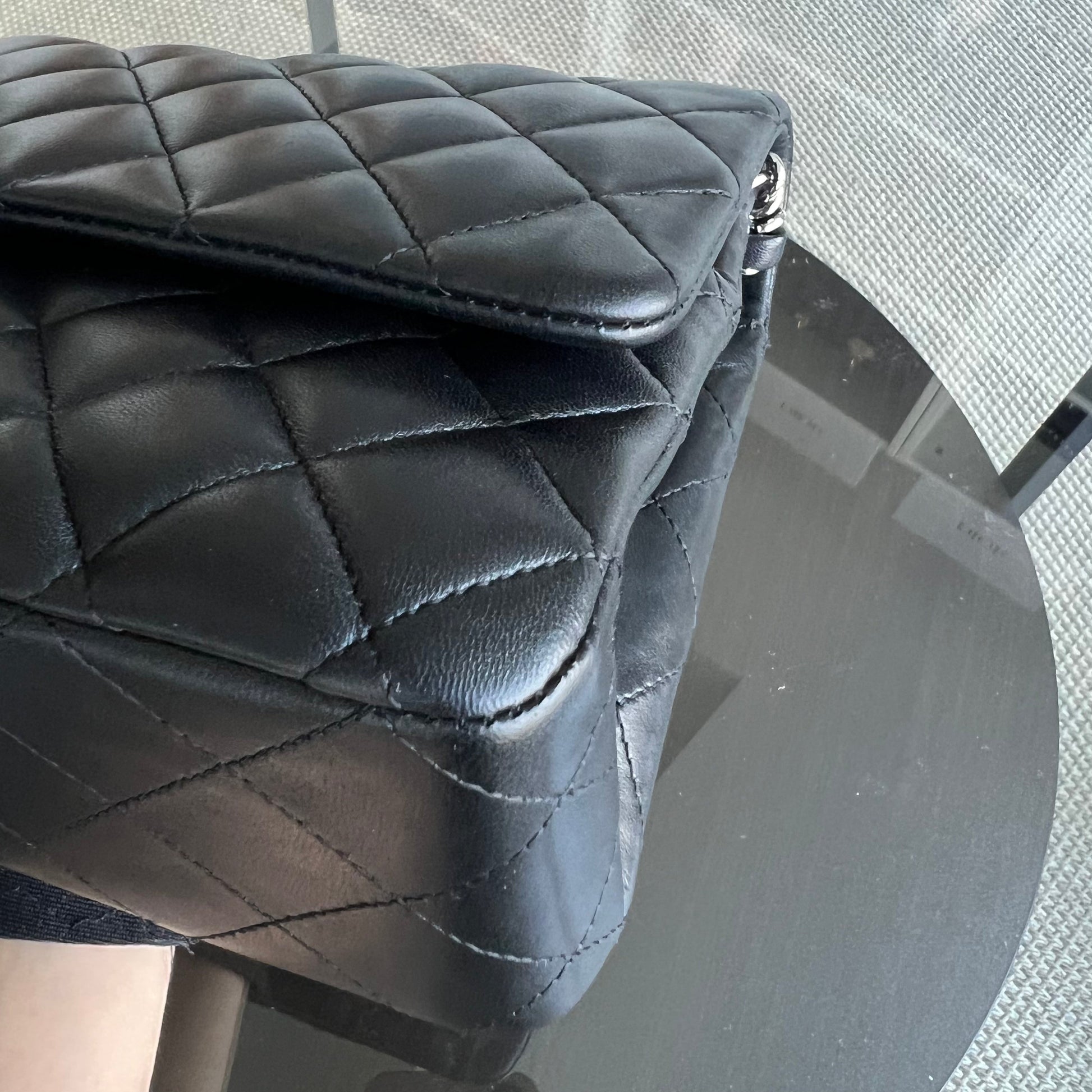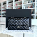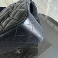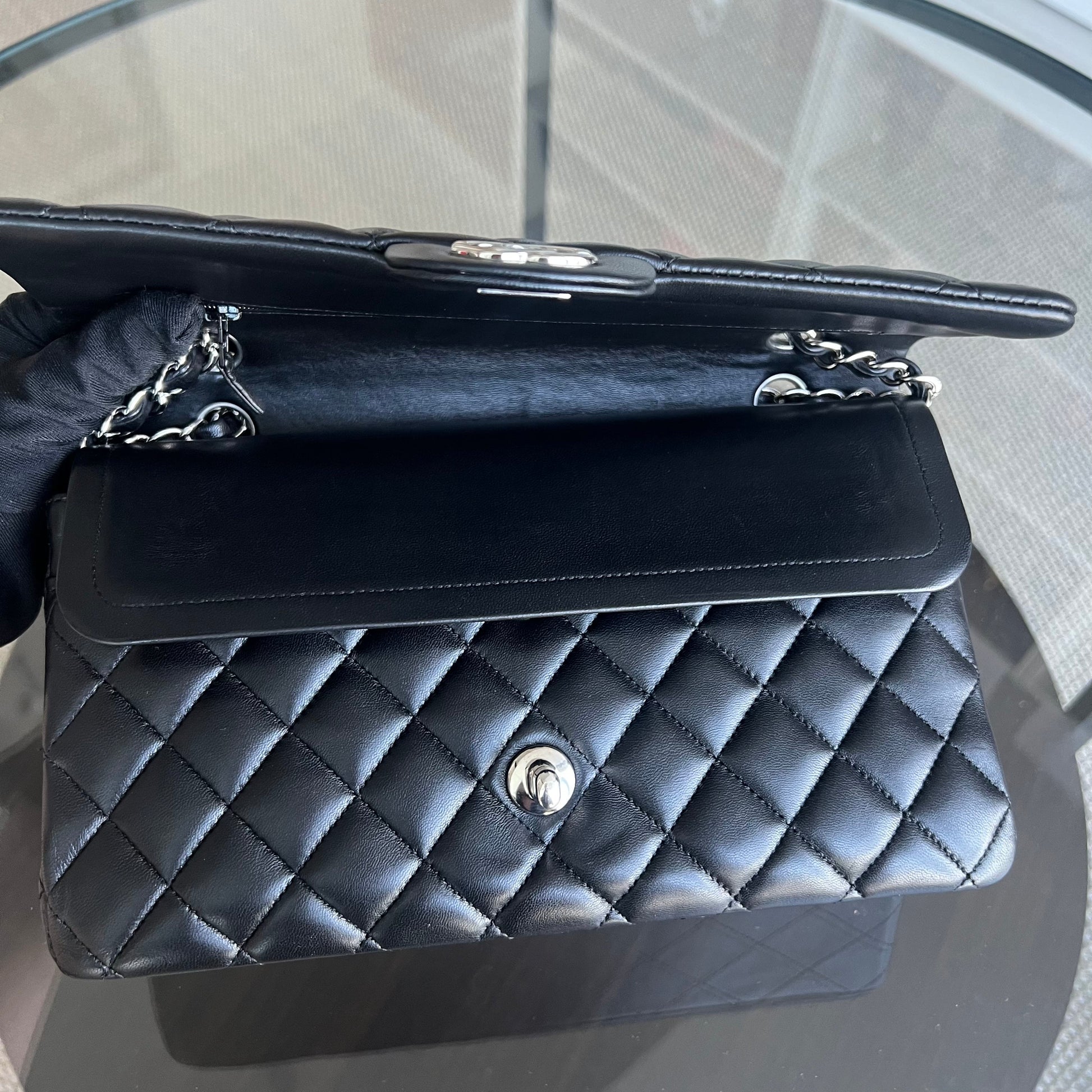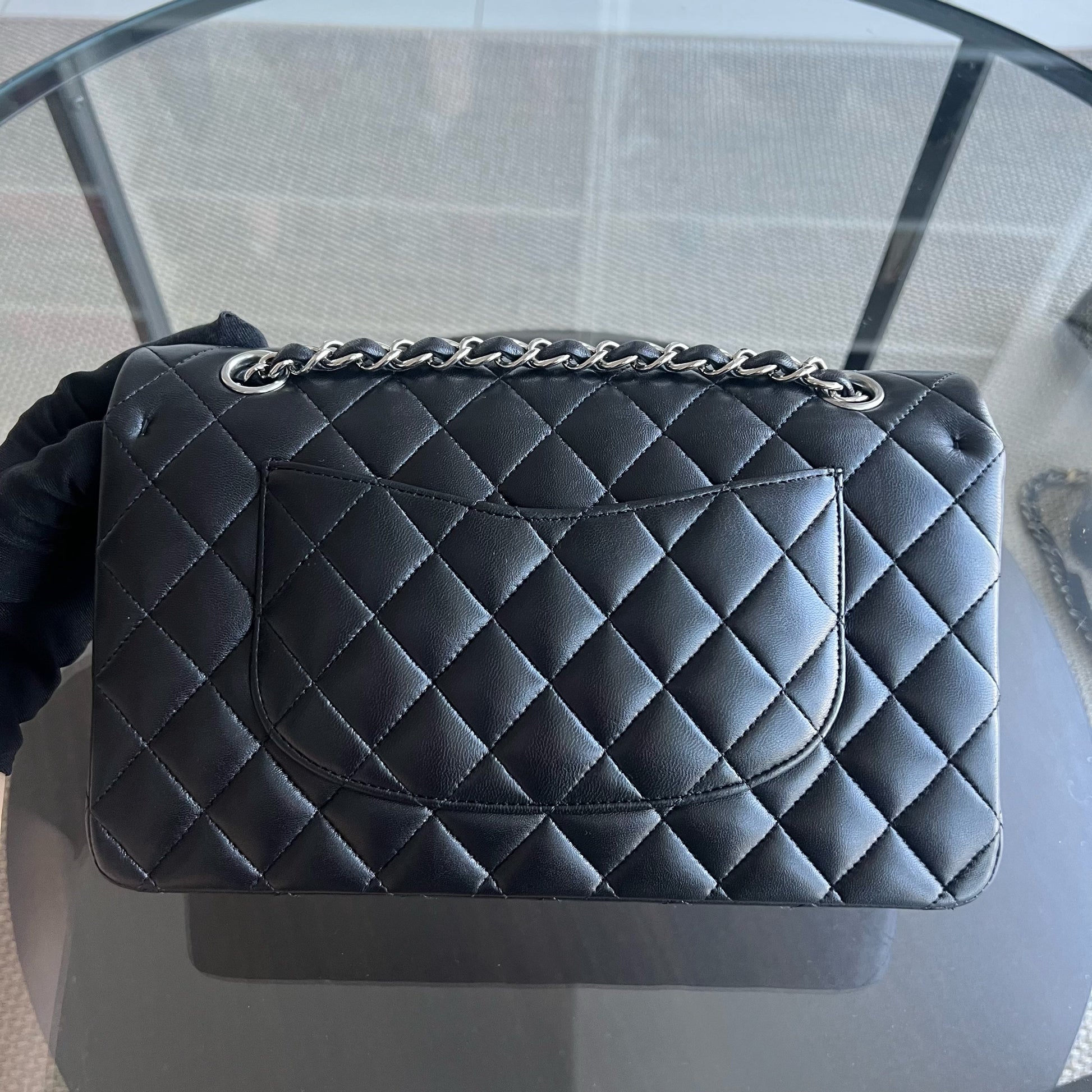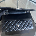 Double Flap Quilted Lambskin Black Silver Hardware Series 19