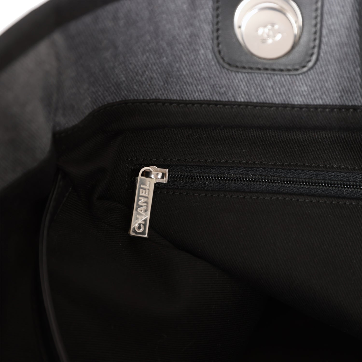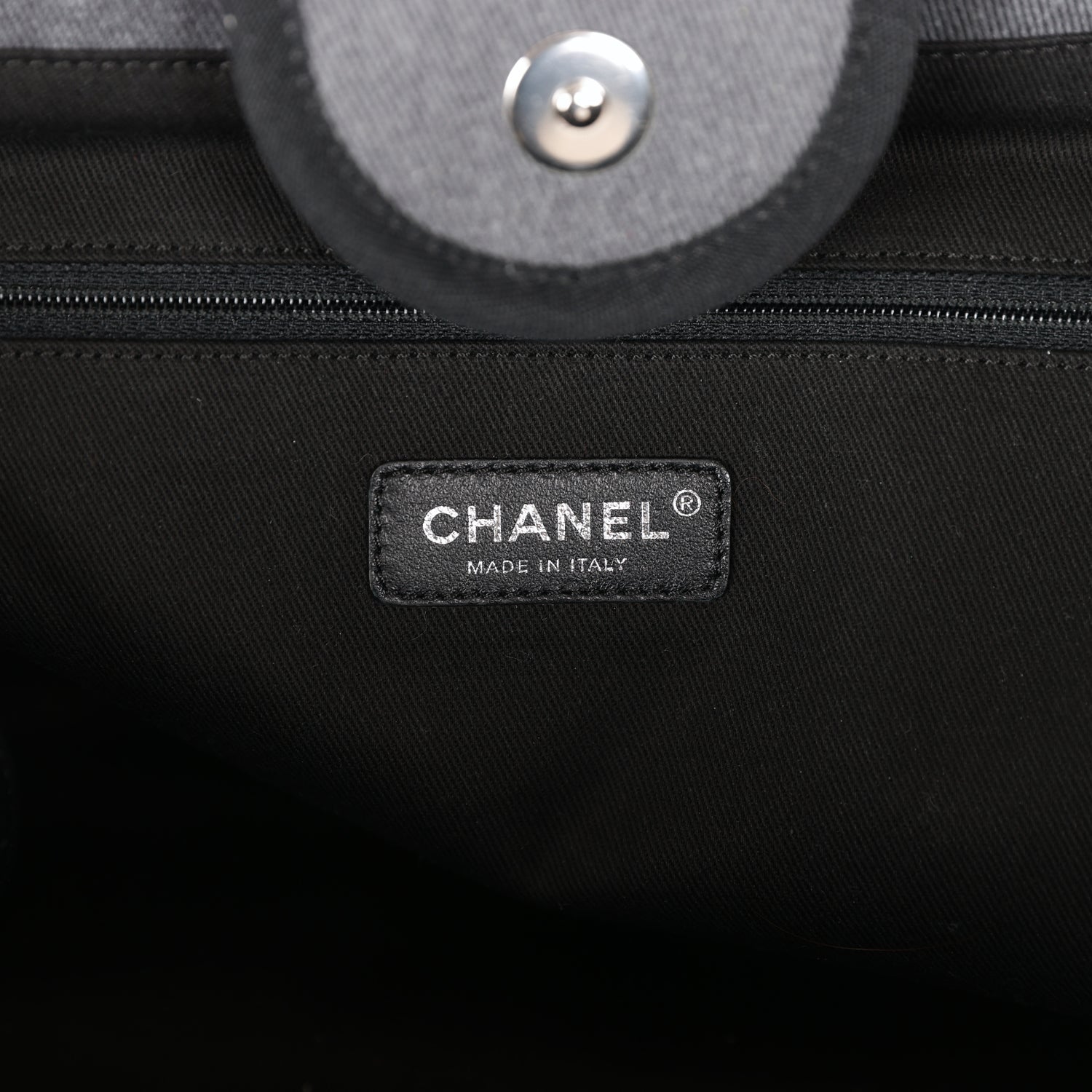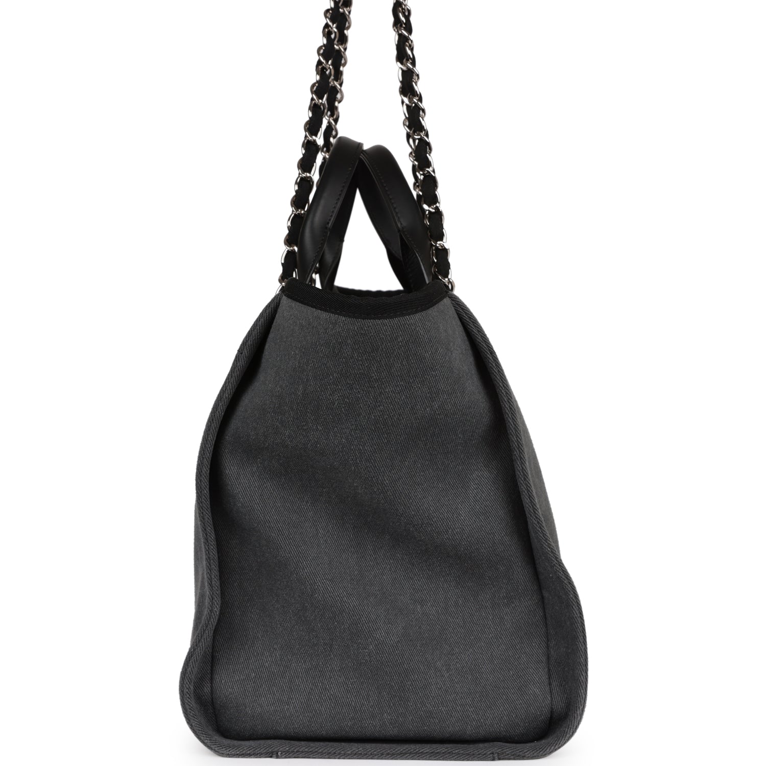 Chanel Medium Deauville Shopping Tote Dark Grey Denim Silver Hardware