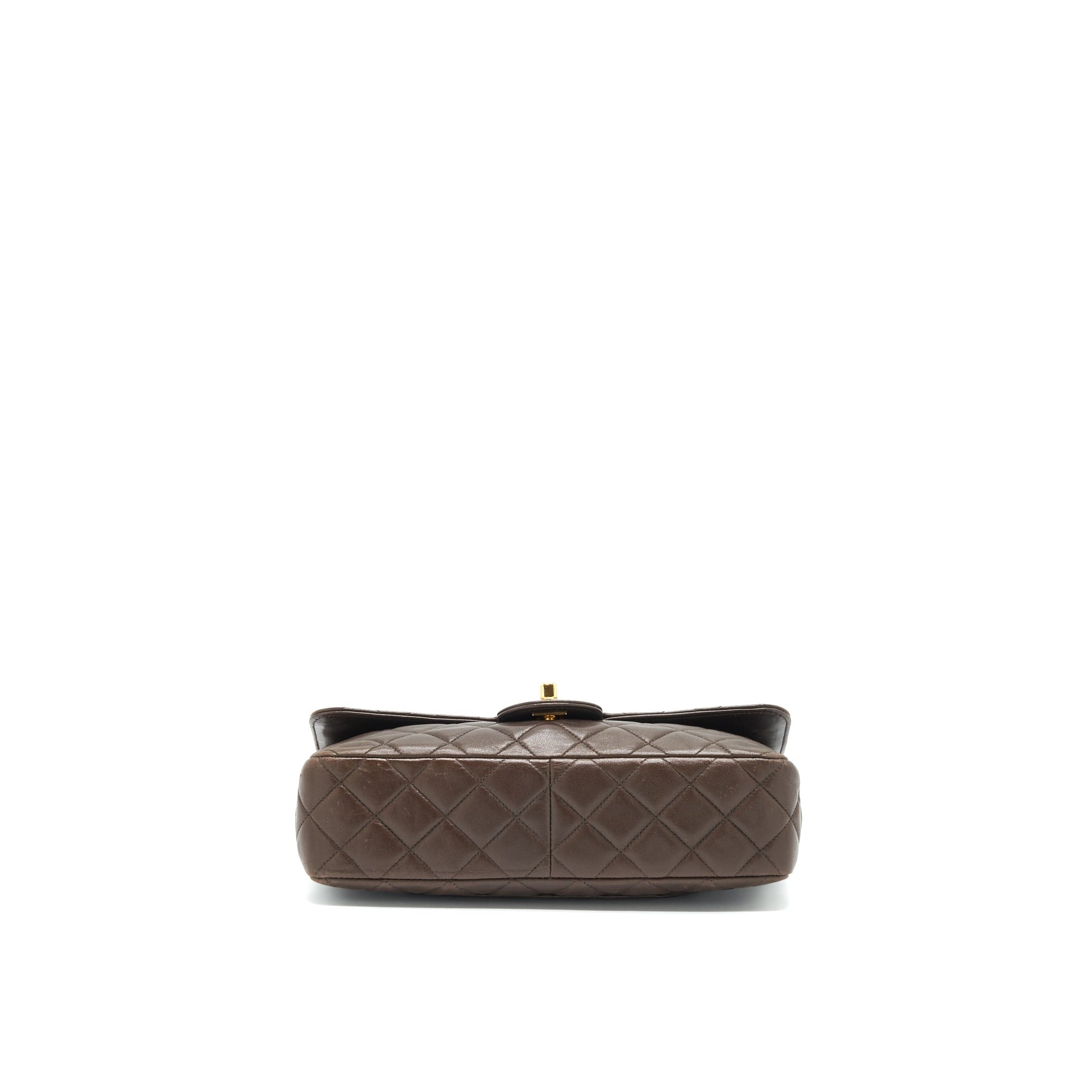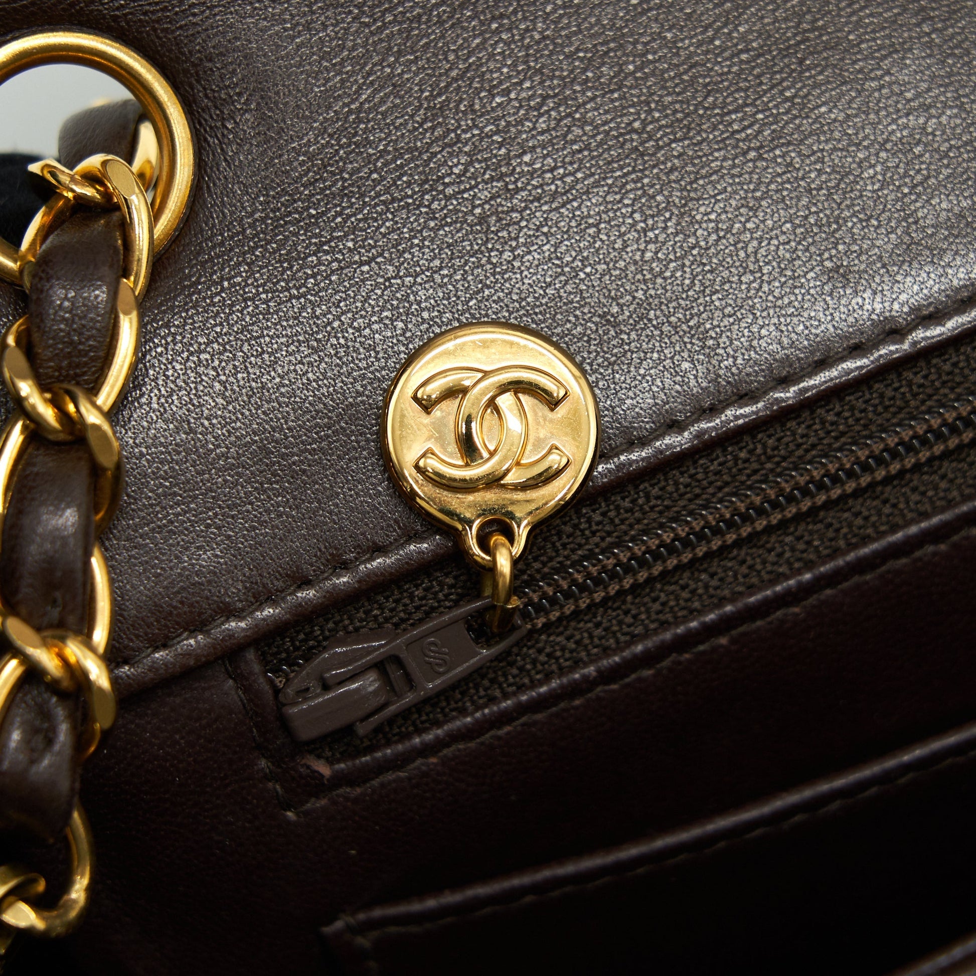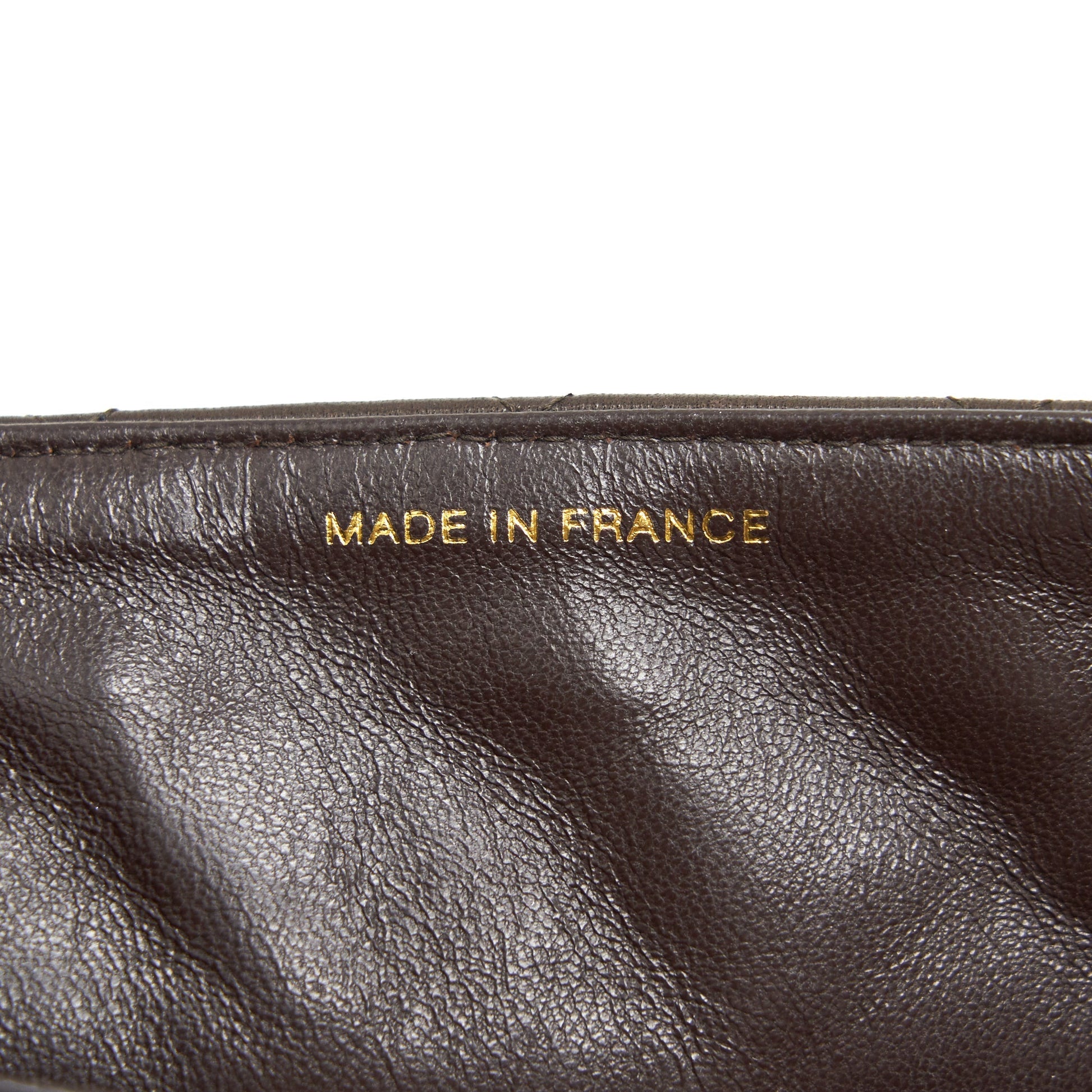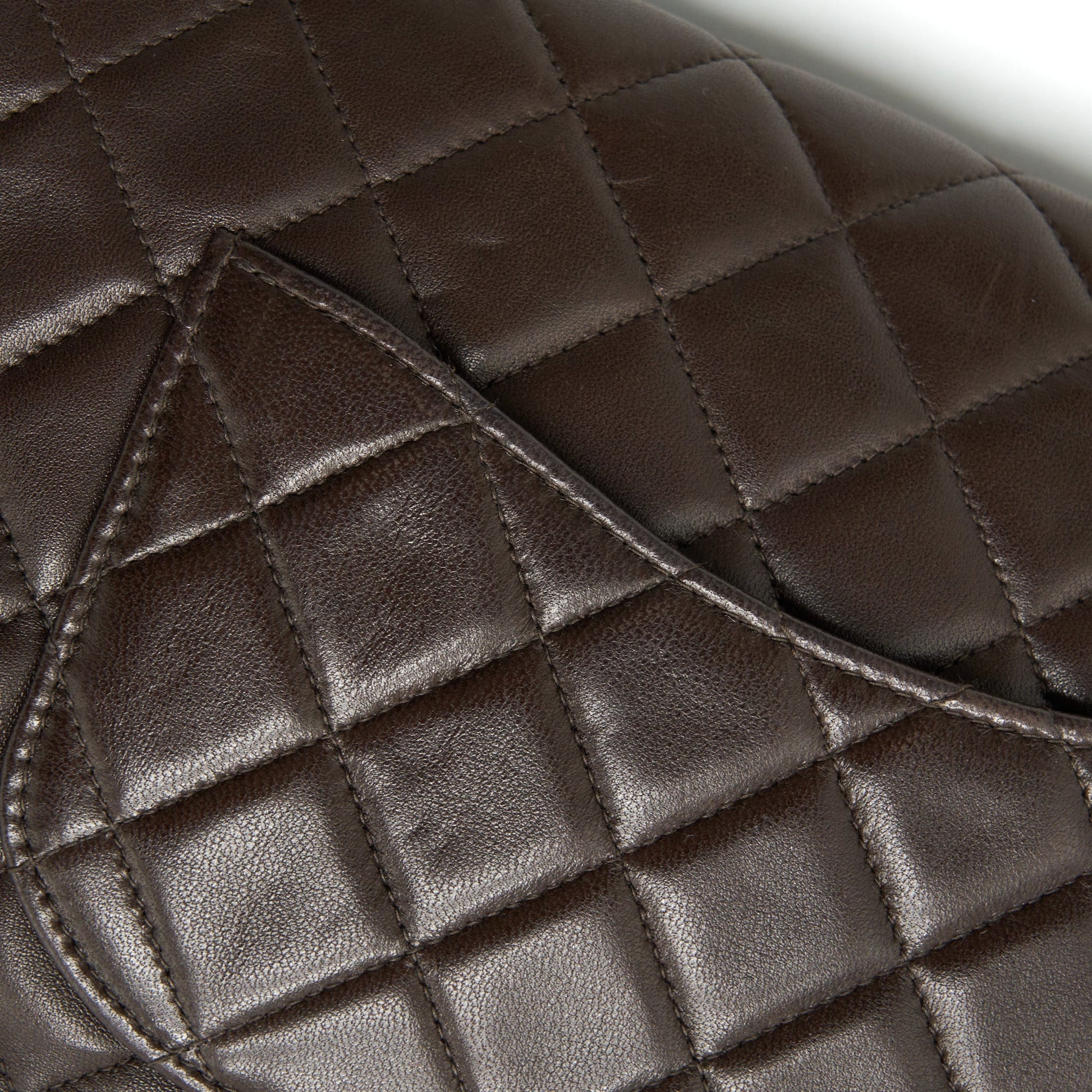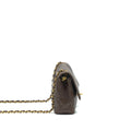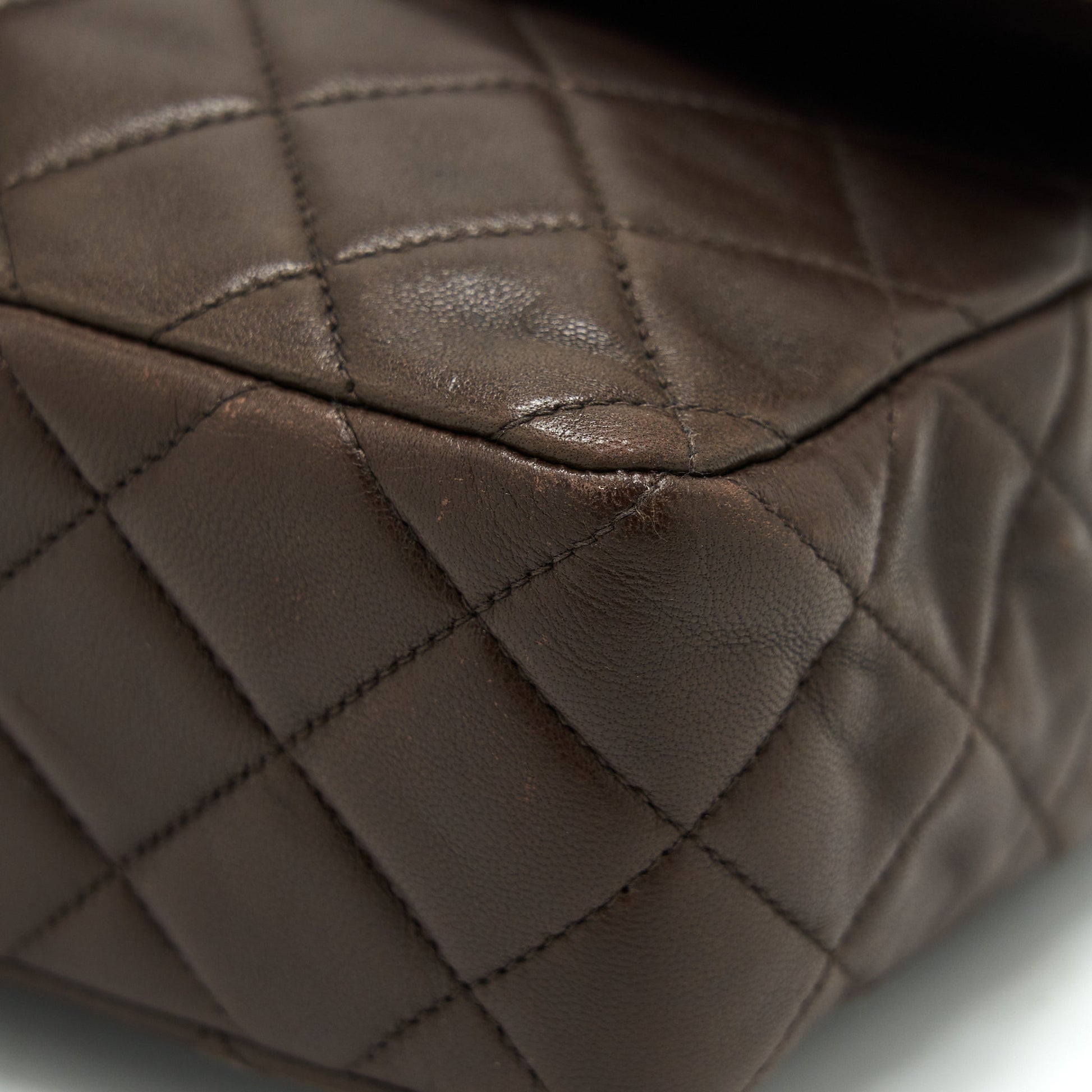 (This item is in fair condition with rubbing on edges and leather on chains, slight scratches under the flap and bottom side leather, sign of use inside, slight scratches on hardware, softened structure )
