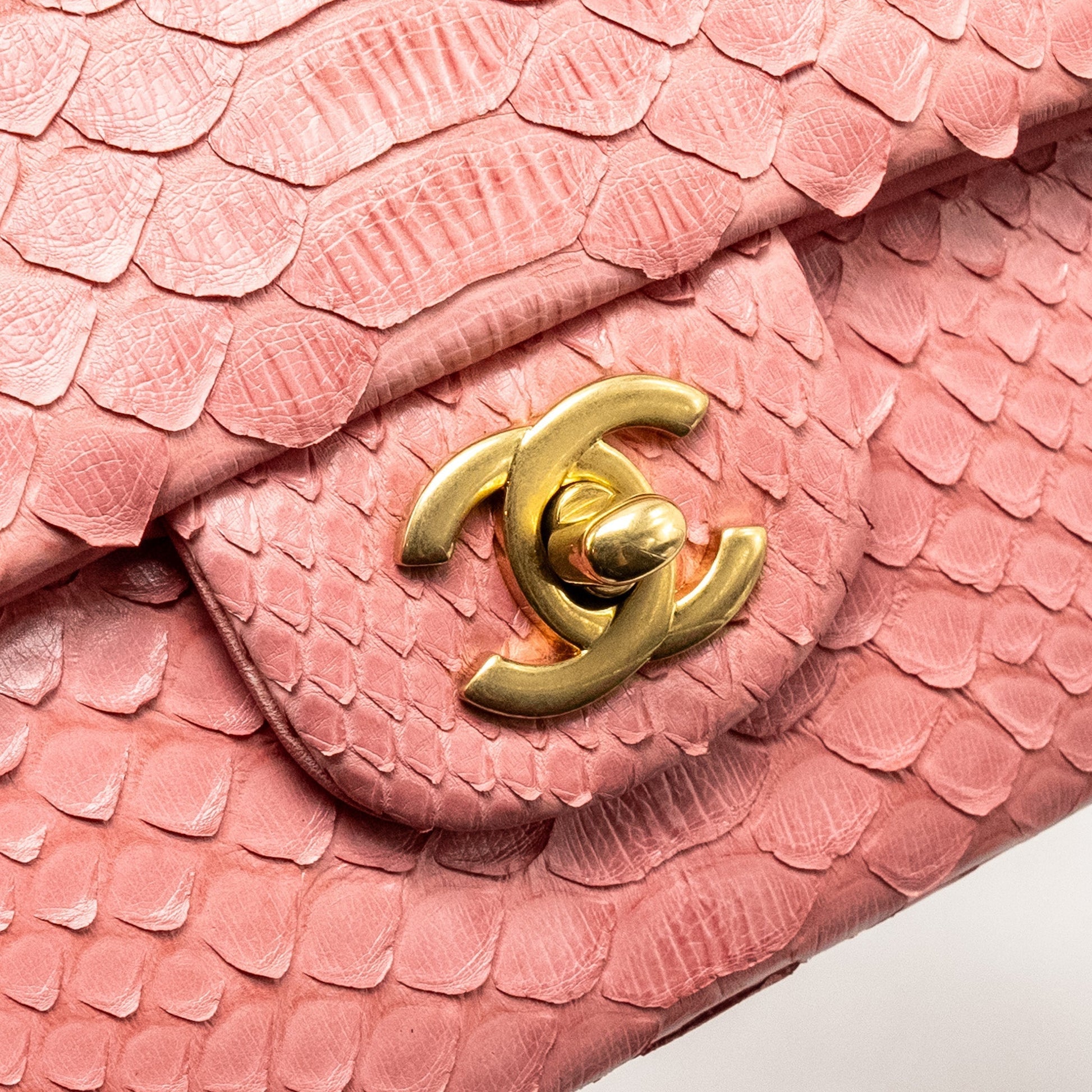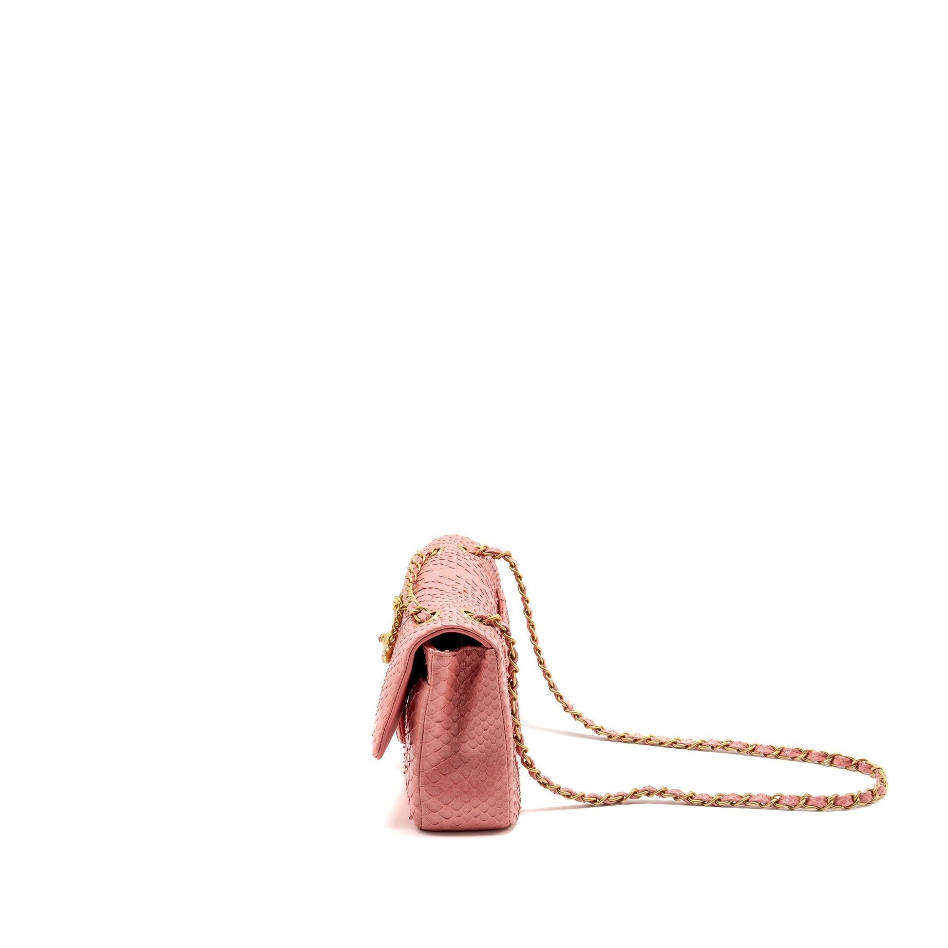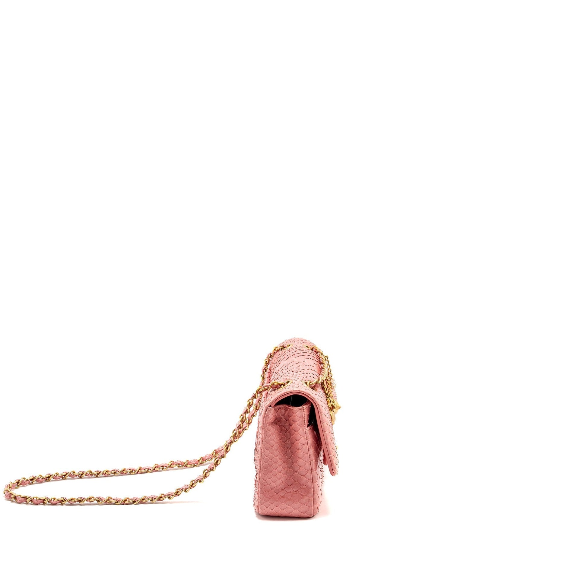 Chanel Medium Flap Bag with Detailed Charms Python Pink GHW