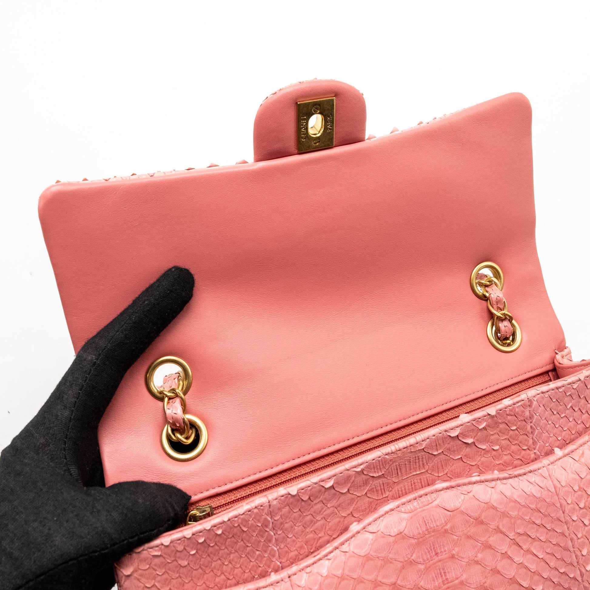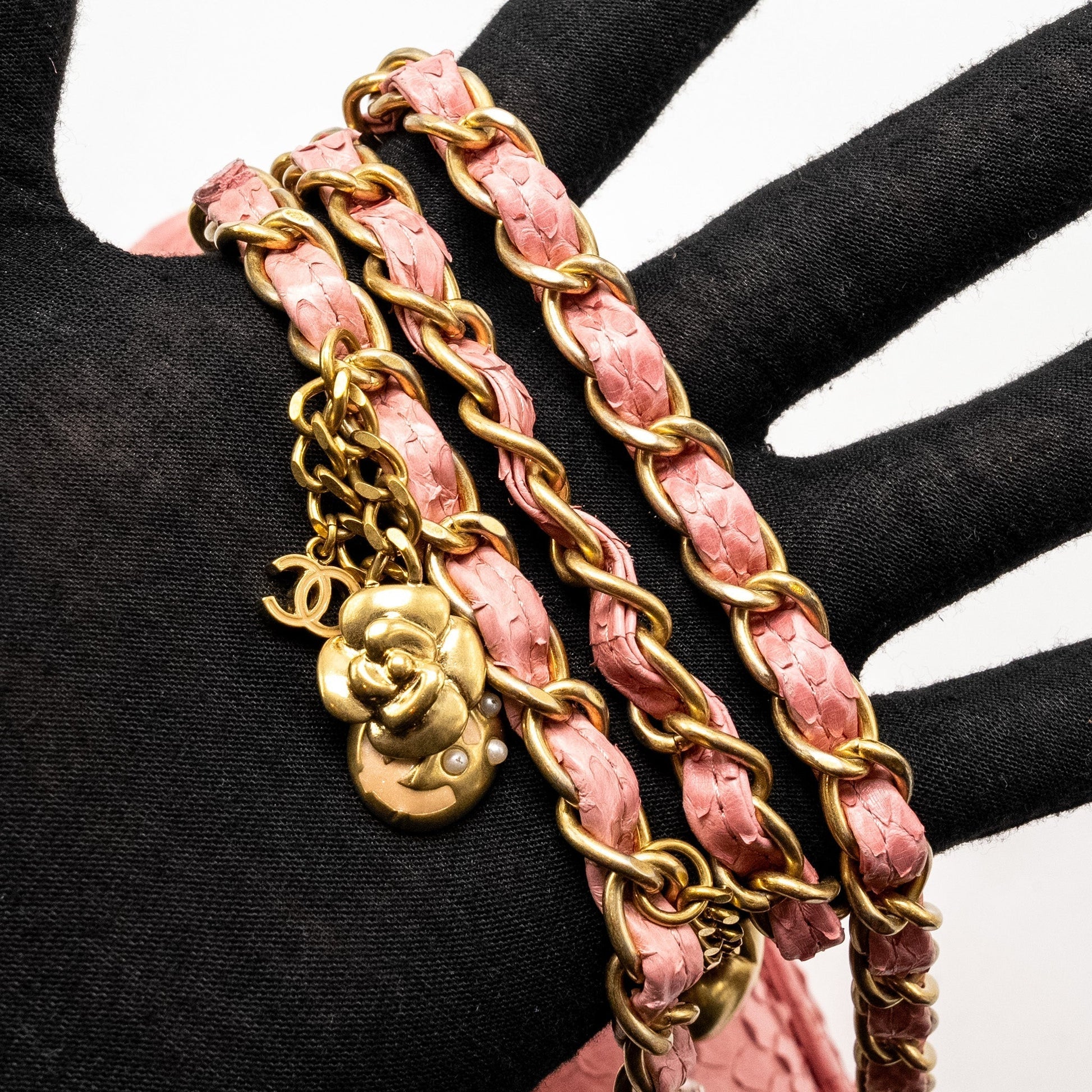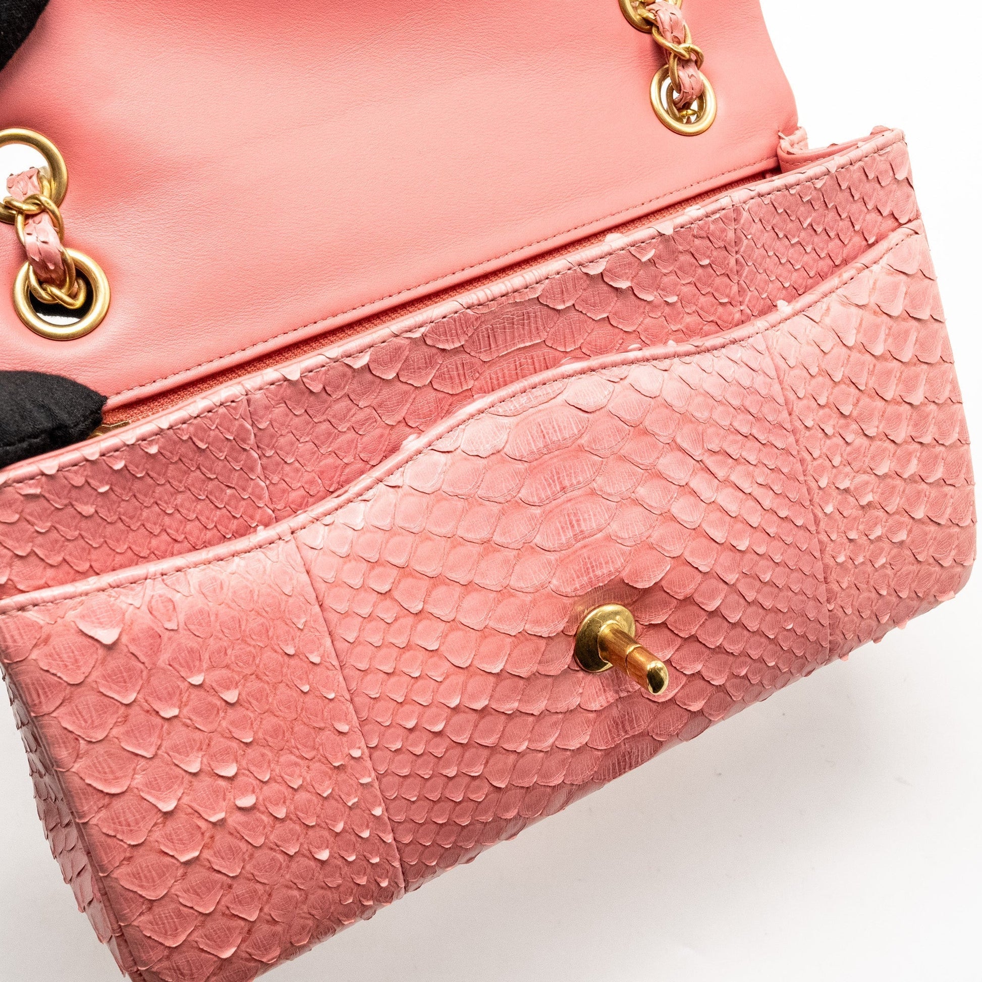 Chanel Medium Flap Bag with Detailed Charms Python Pink GHW