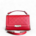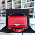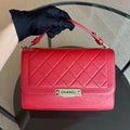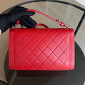 Chanel Medium Label Click Flap Quilted Grained Calfskin Red Golden Hardware Series 24