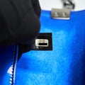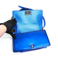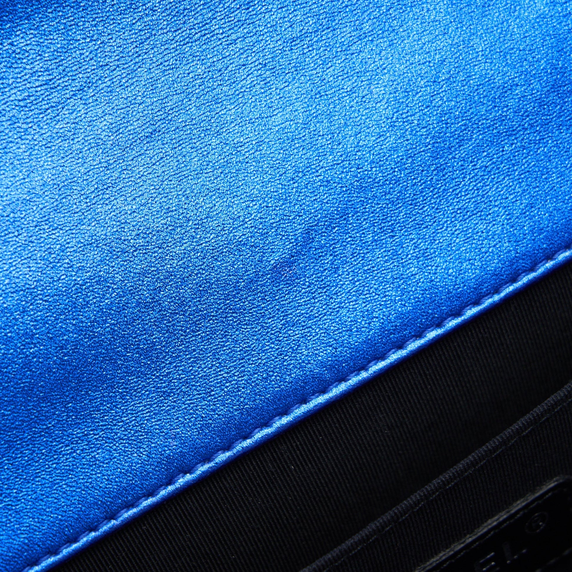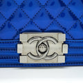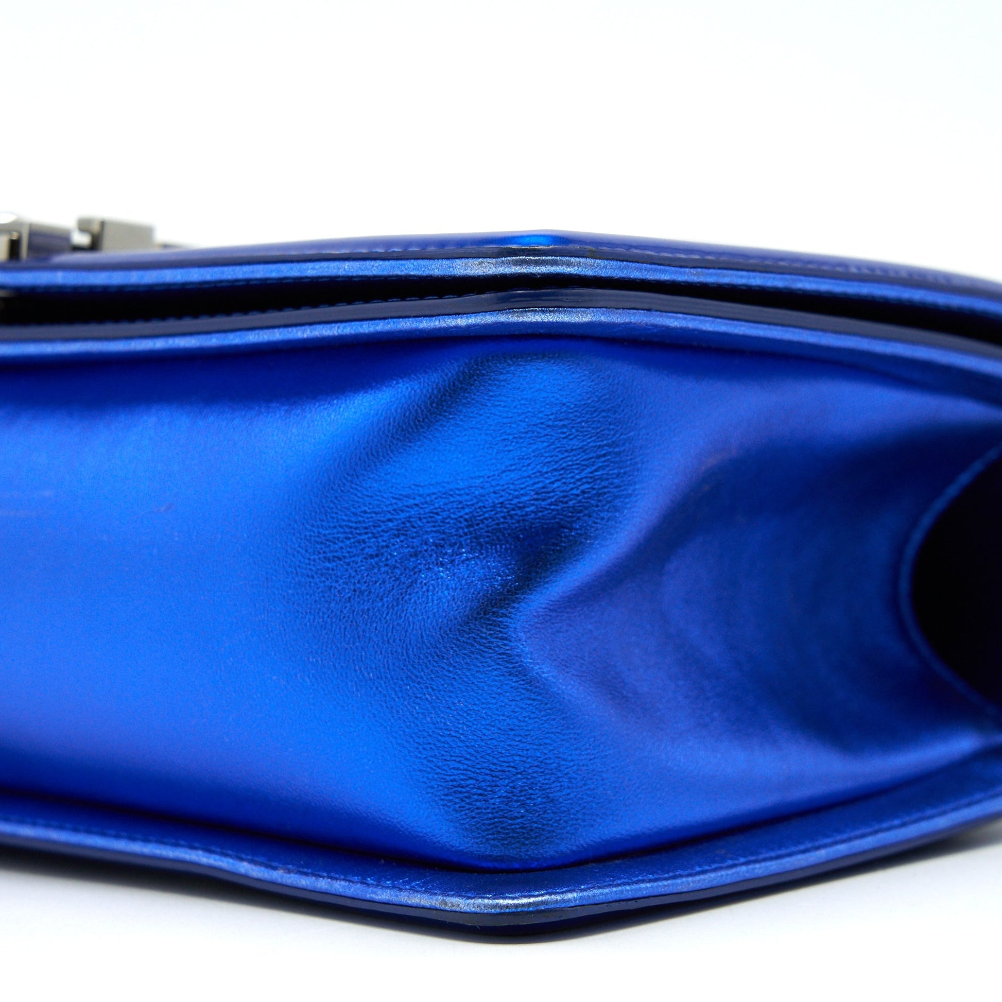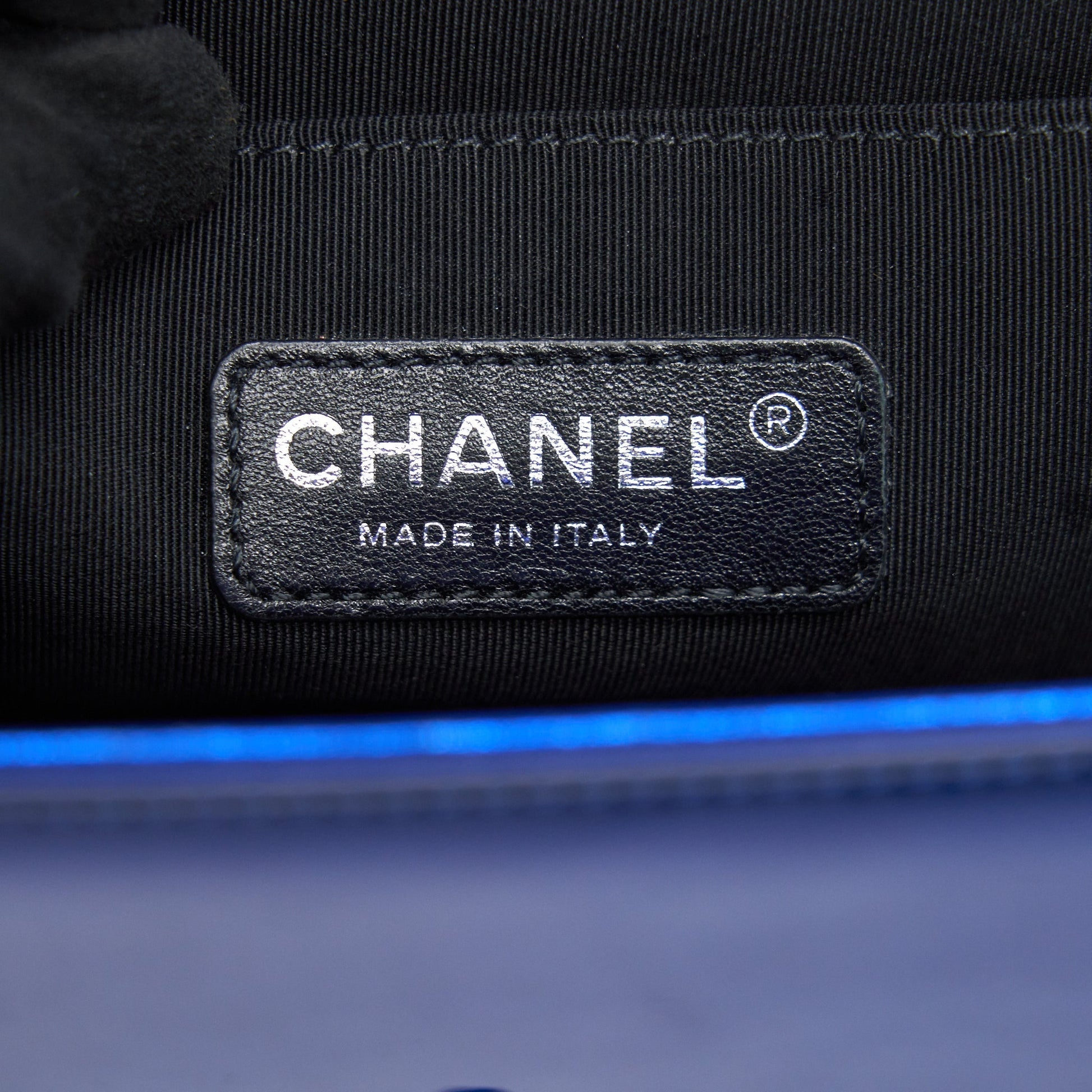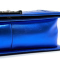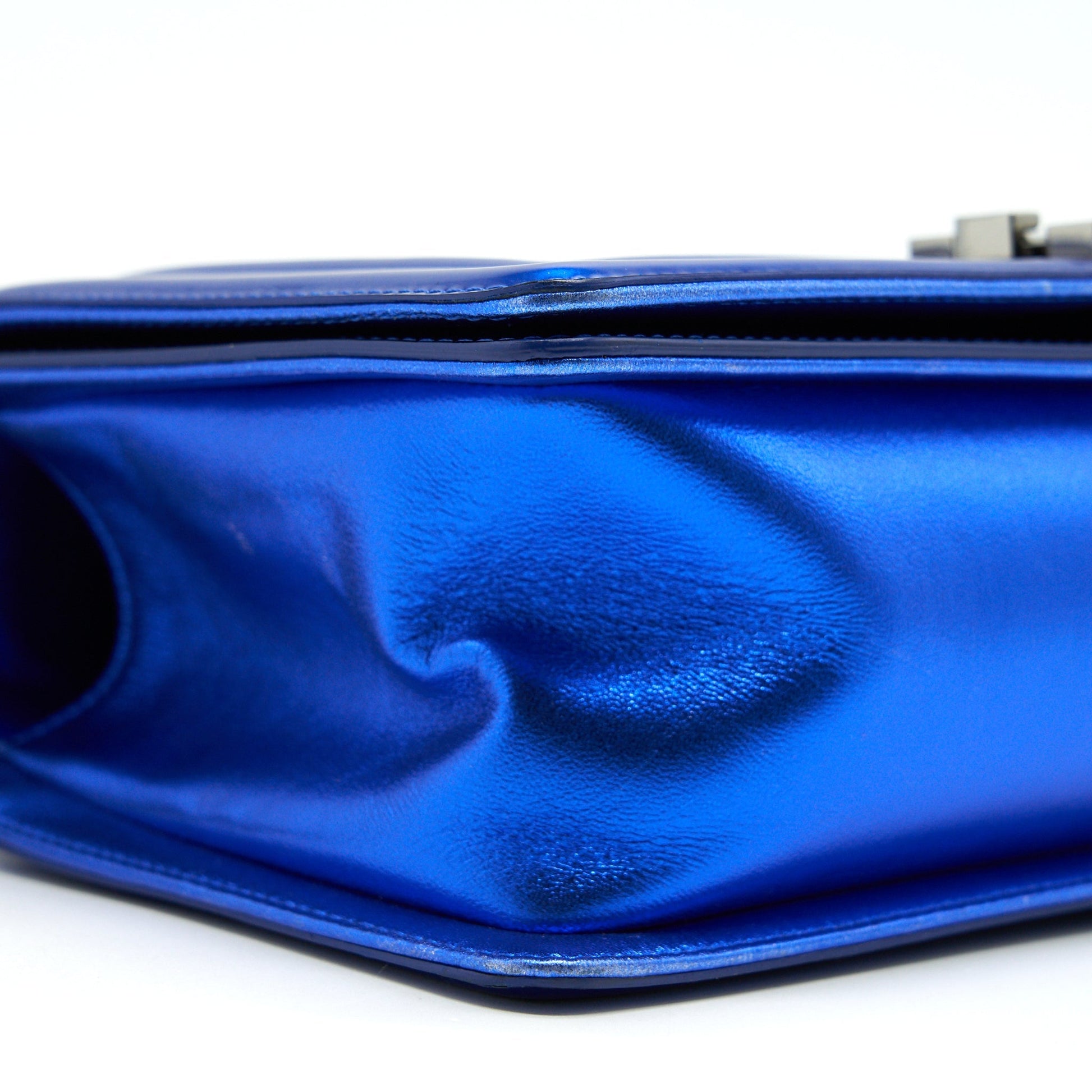 CHANEL MEDIUM LE BOY BAG IN METALLIC BLUE SHW