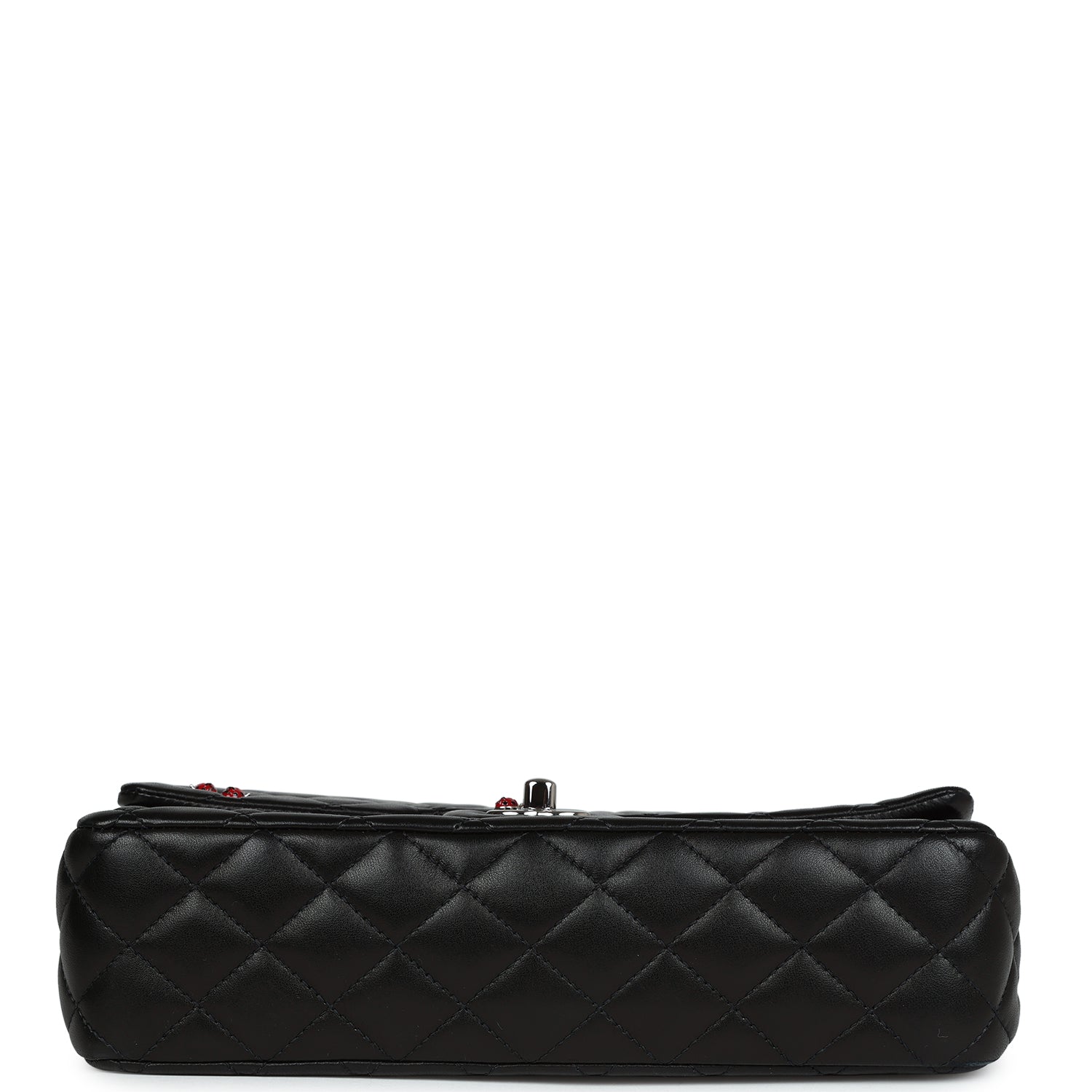 New Chanel Medium Lady Bug Single Flap Bag Black Lambskin Silver Hardware