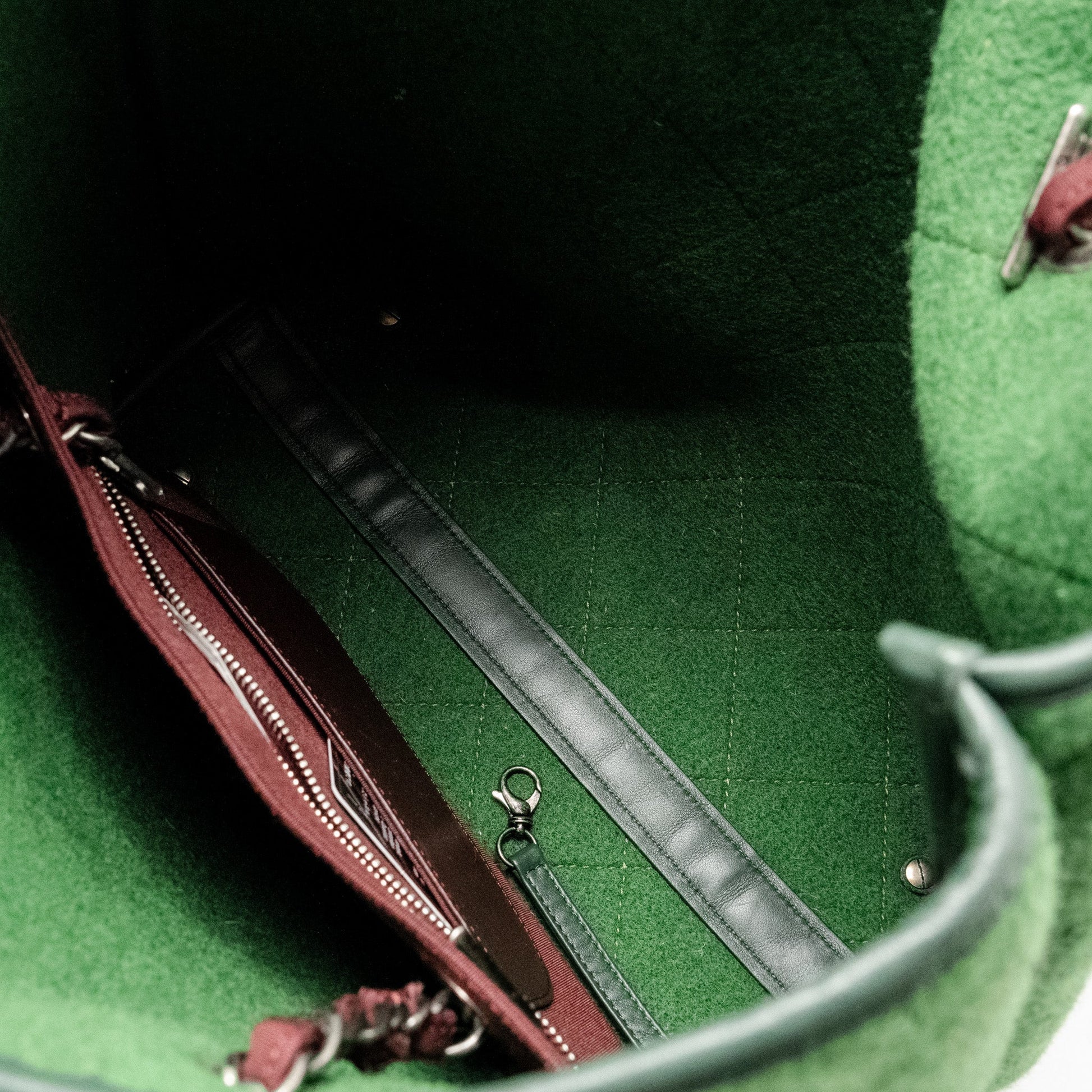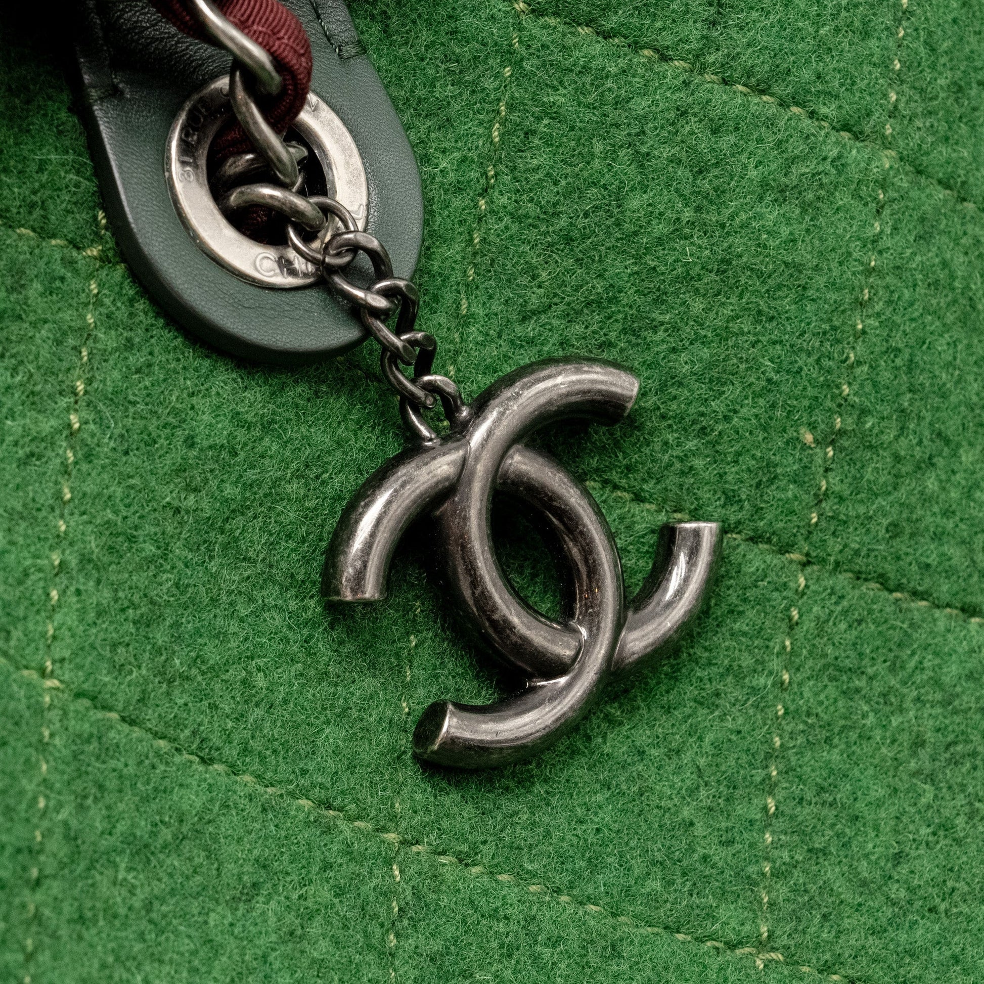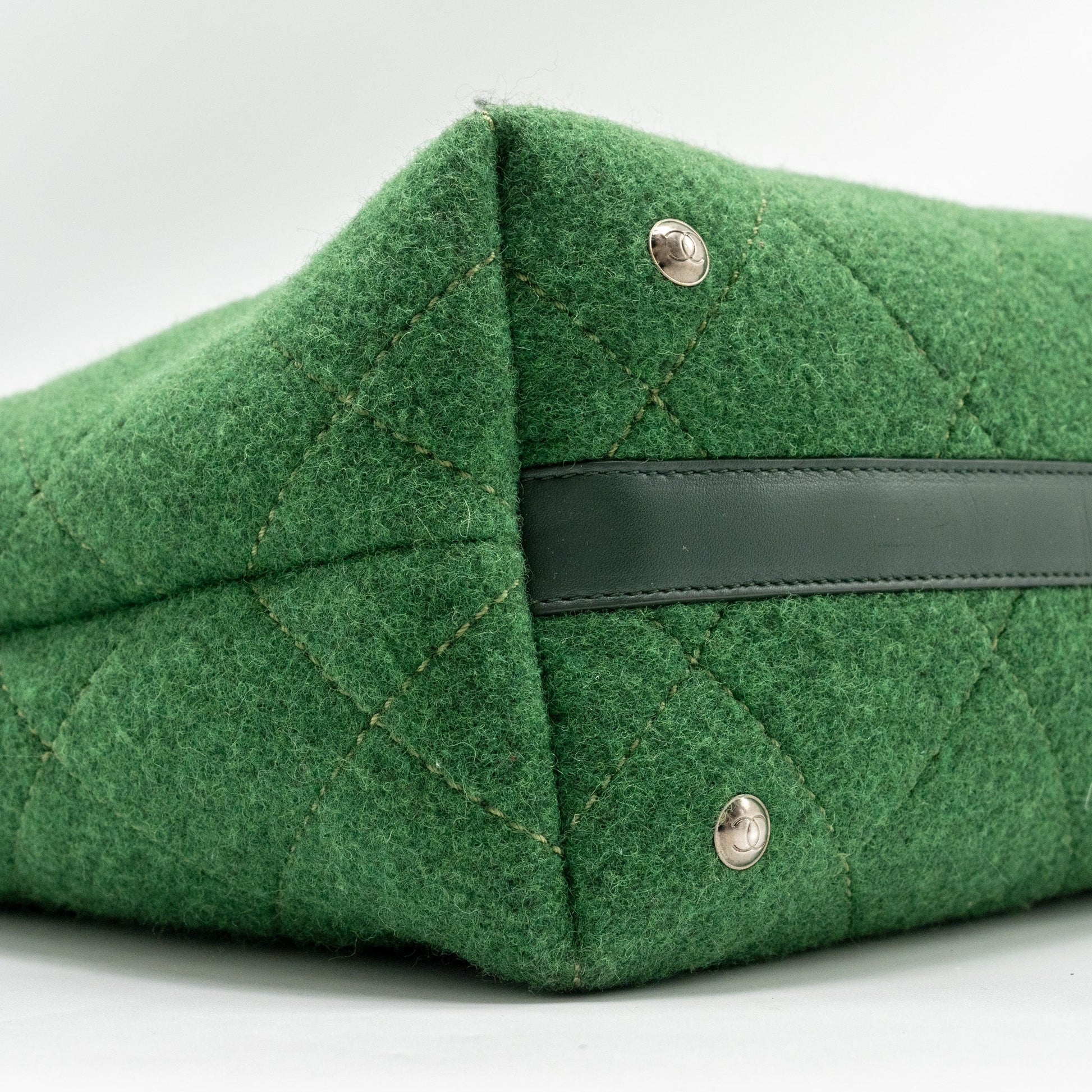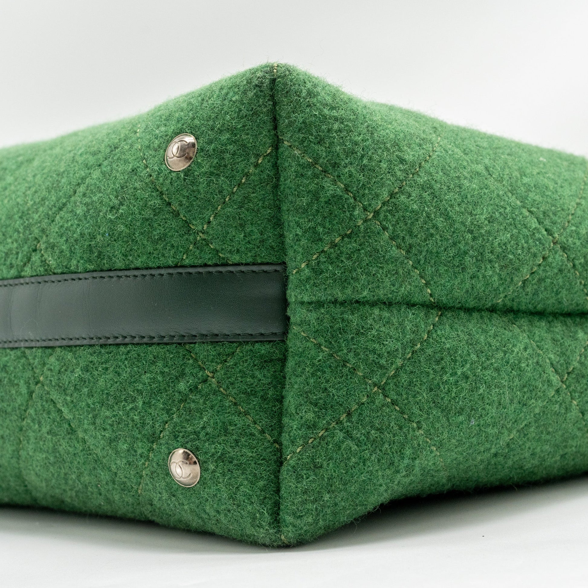 Chanel Medium Quilted Pop Tote Bag Felt / Leather Green Ruthenium Hardware