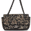 Chanel Medium Single Flap Black and White Tweed With Crystals Silver Hardware