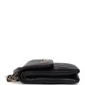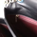 This Chanel Medium Trendy CC bag is in black lambskin leather with light gold tone hardware and has a front flap with signature CC turnlock closure, CHANEL light gold plaque on top of handbag, rear half moon pocket and a single interwoven black leather and light gold tone chain link shoulder strap.