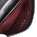 The interior is lined in burgundy lambskin leather and has two main open compartments; two small slip pockets on front wall, and one zip pocket on rear wall.