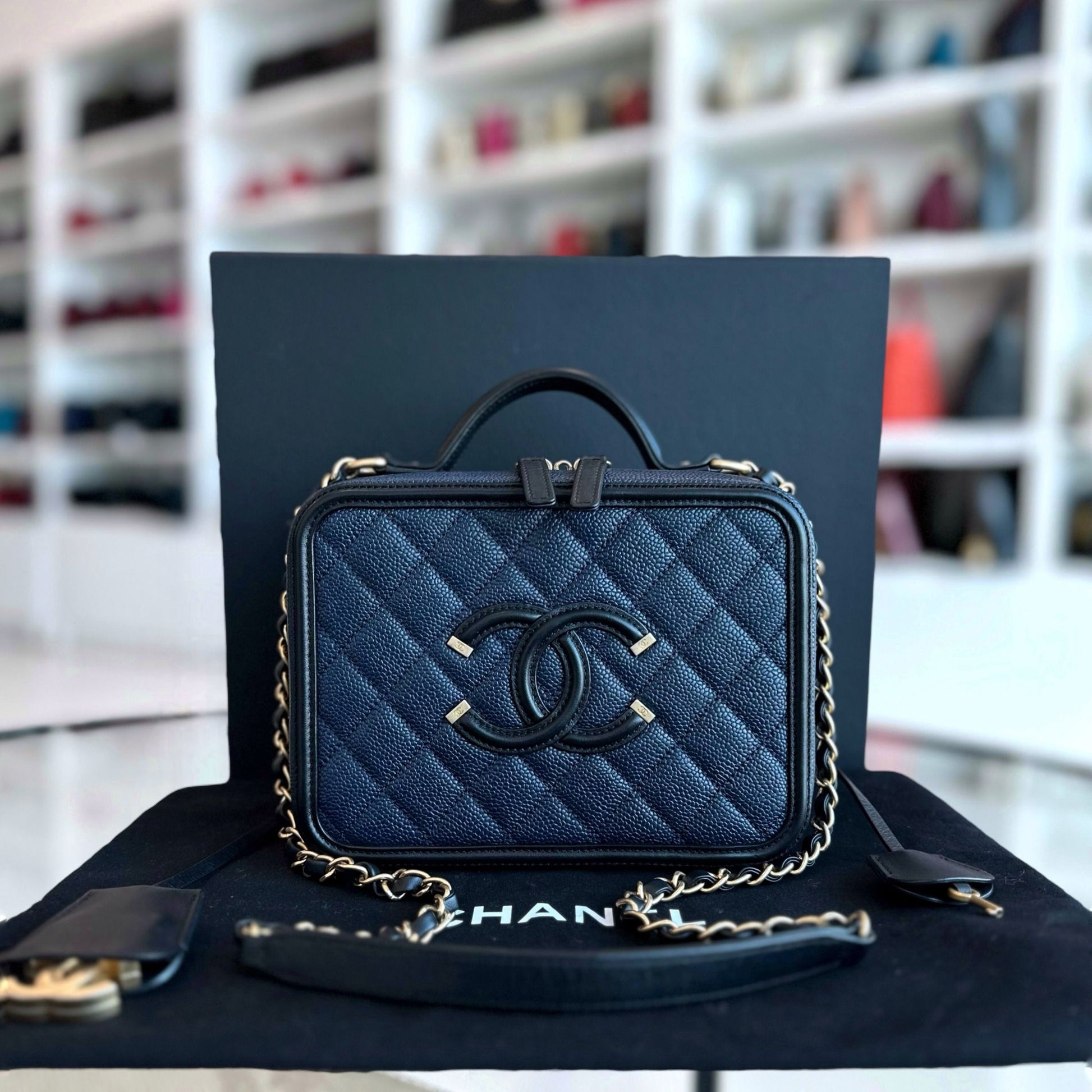Chanel Vanity Case Medium - Caviar Dark Blue GHW No 24