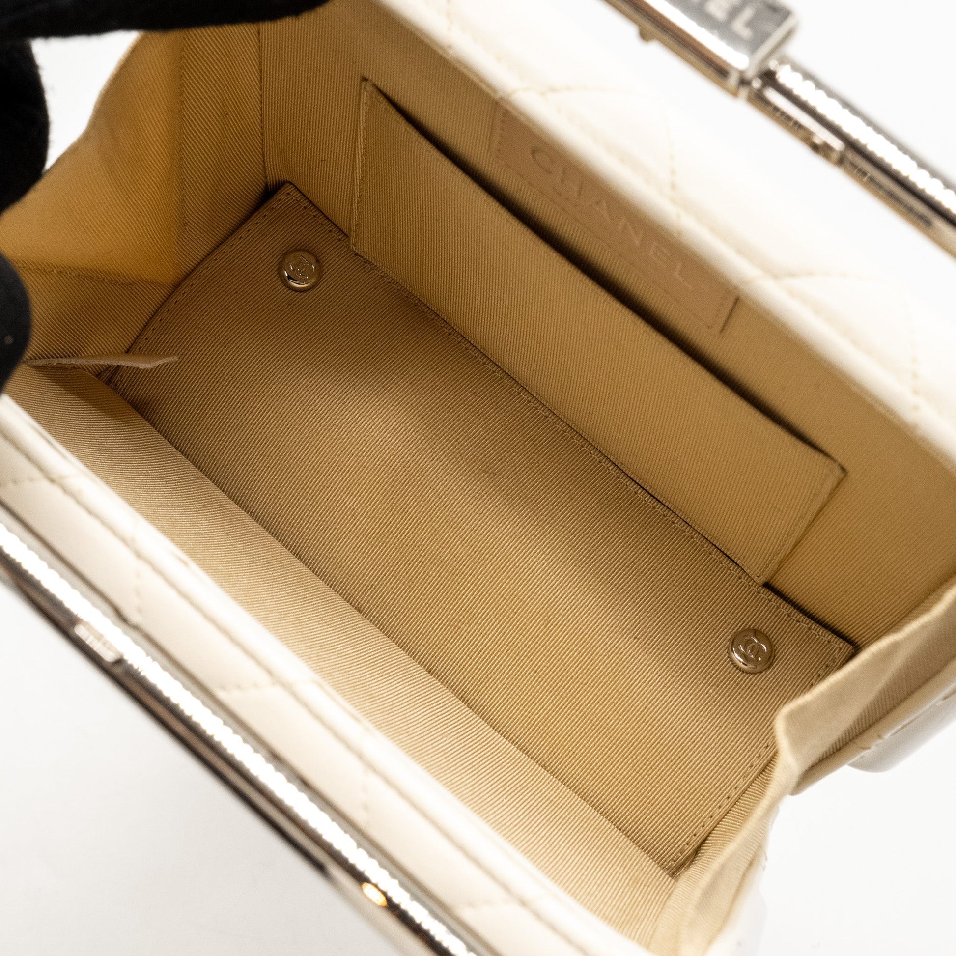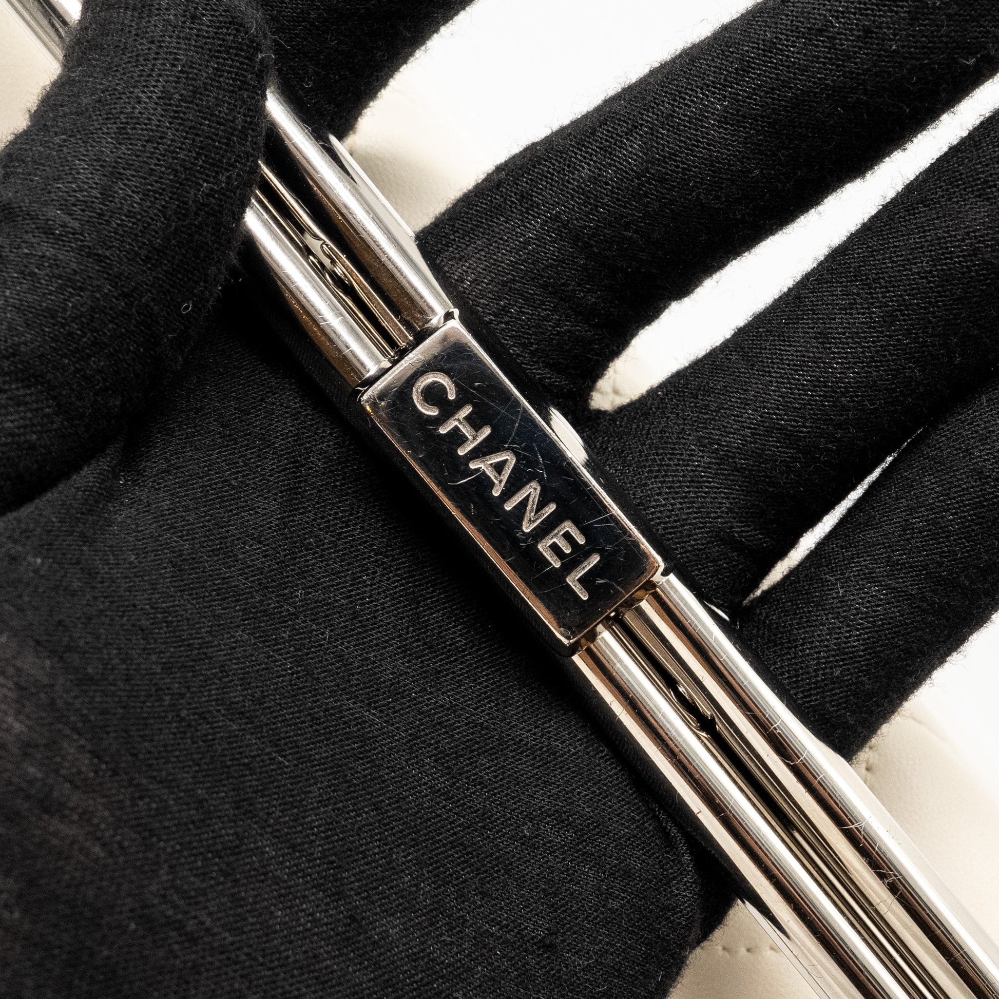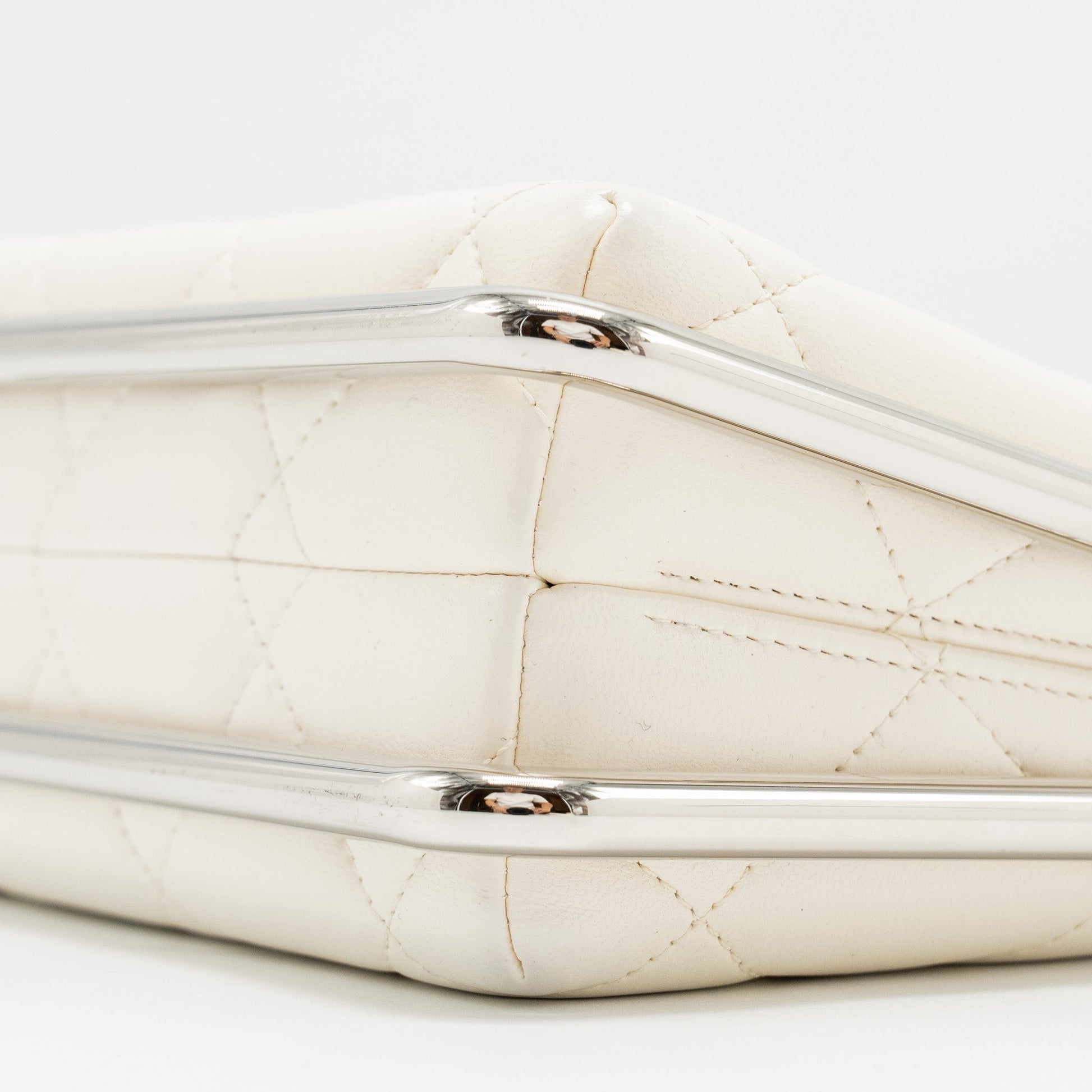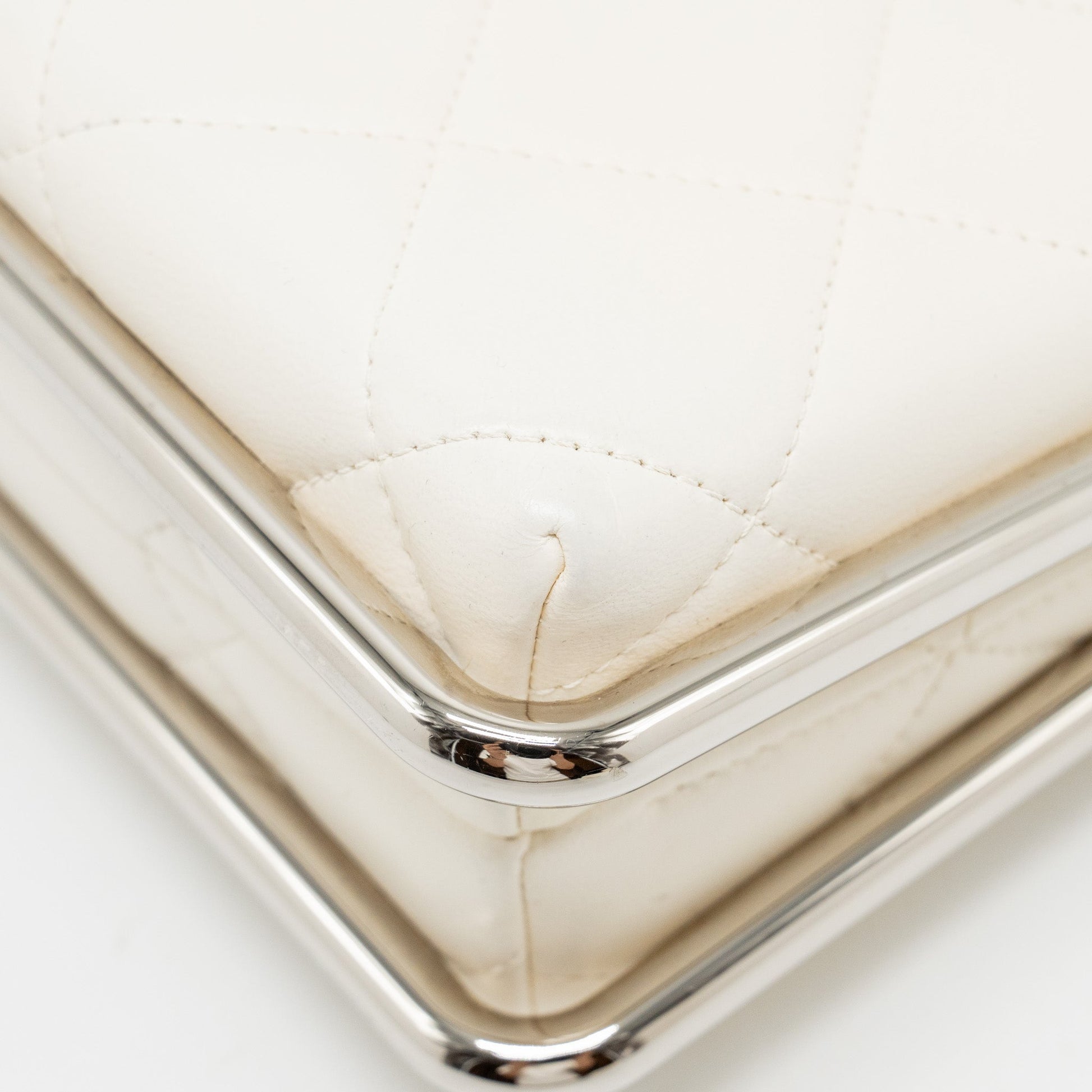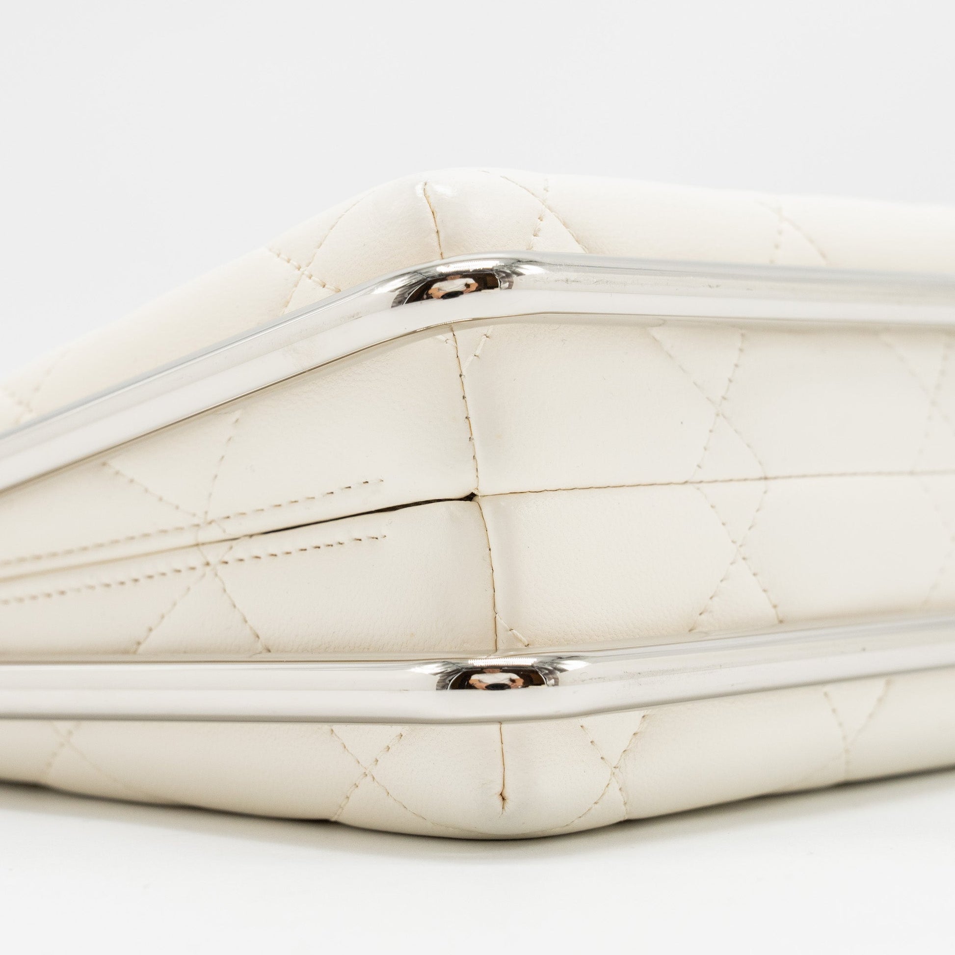 Chanel Metal Bar Clutch Bag Lambskin White SHW
