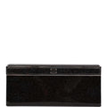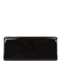 This Minaudiere clutch is in Black patent leather with glitter, silver hardware, a top CC magnetic snap closure.