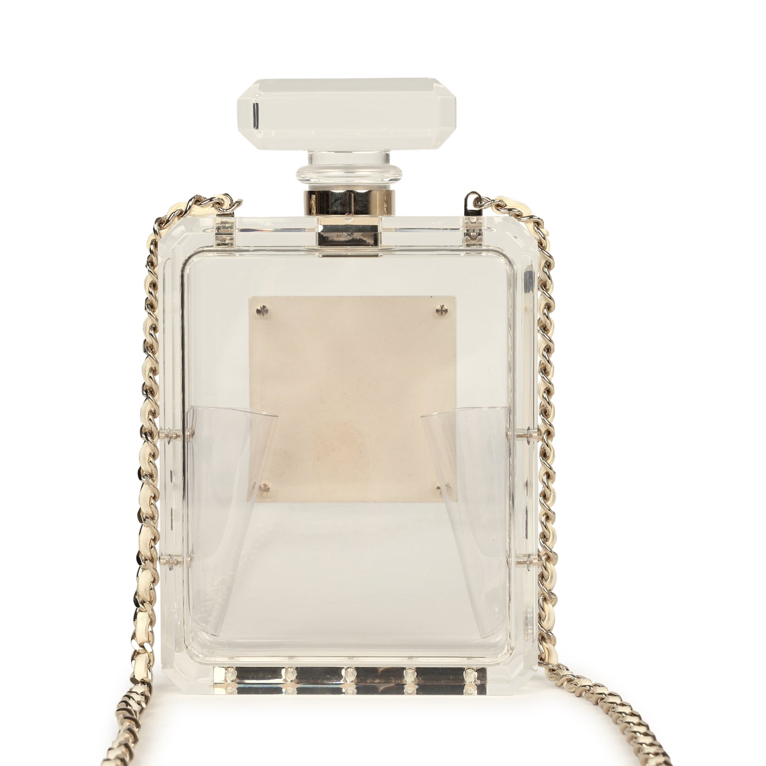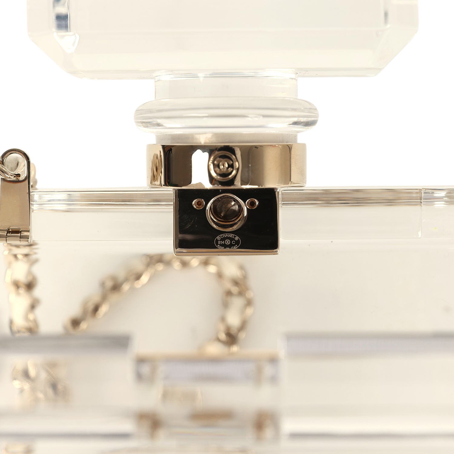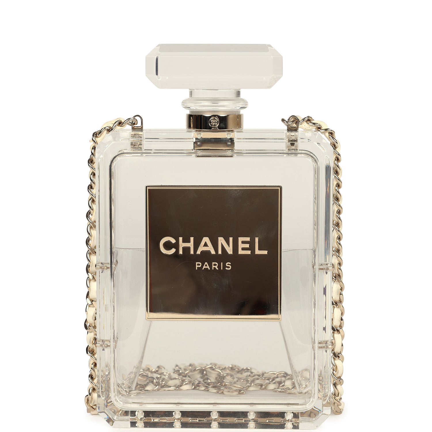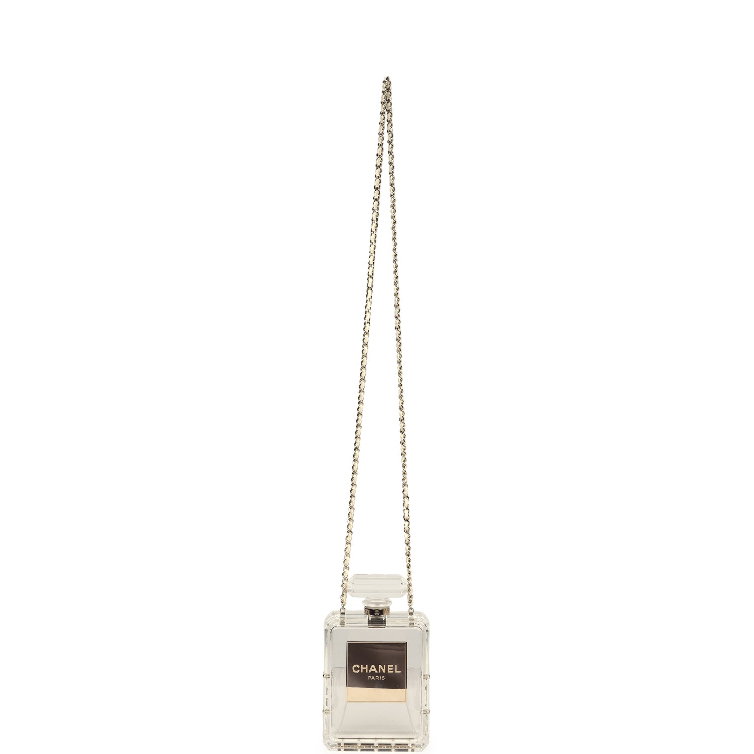 New Chanel Minaudiere No. 5 Perfume Clutch Transparent Plexiglass Light Gold Hardware