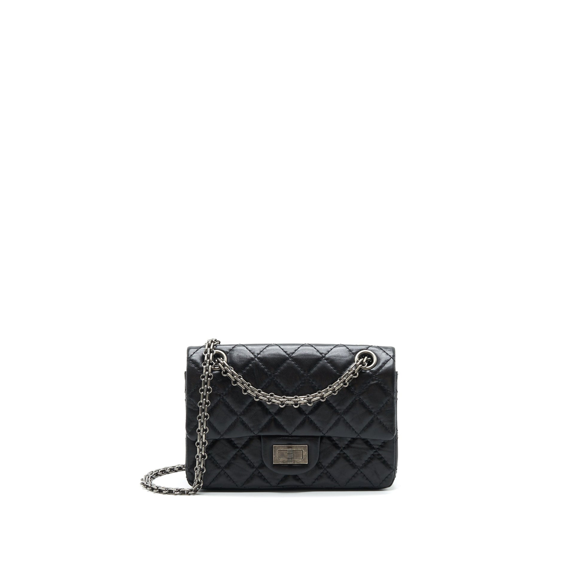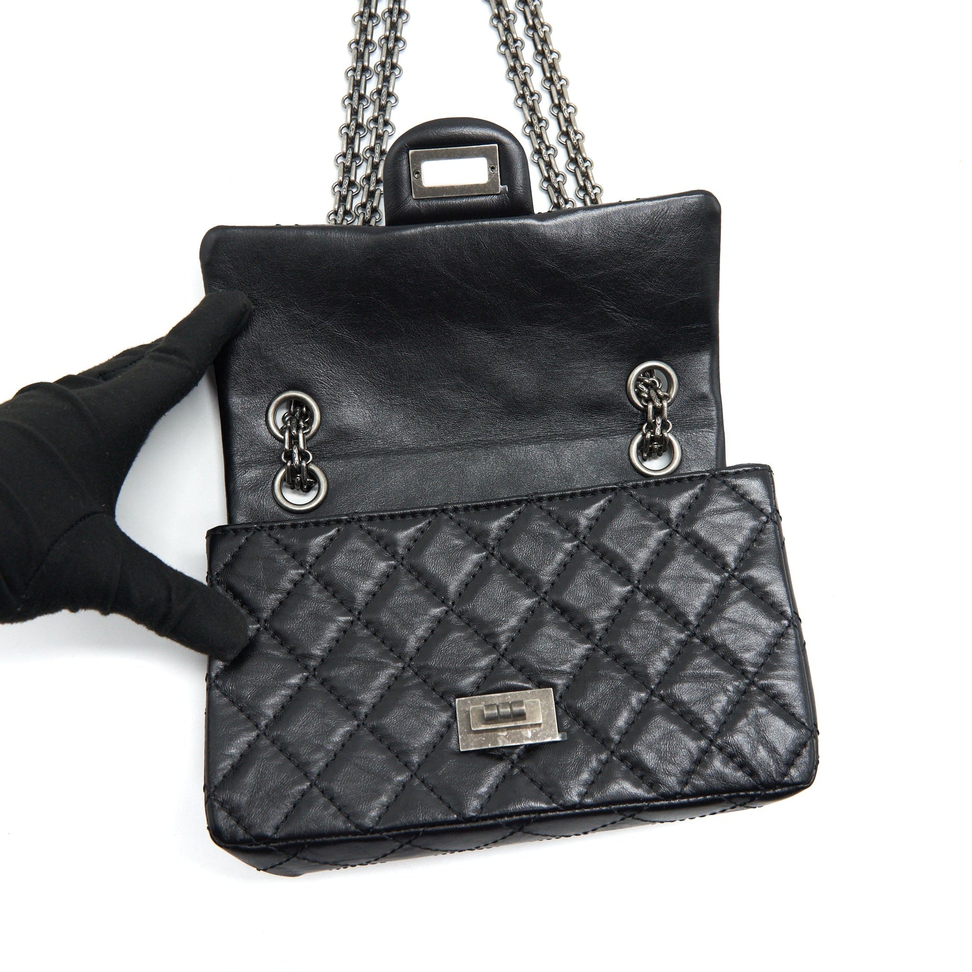 Chanel Mini 2.55 reissue Flap Bag Black with ruthenium Hardware