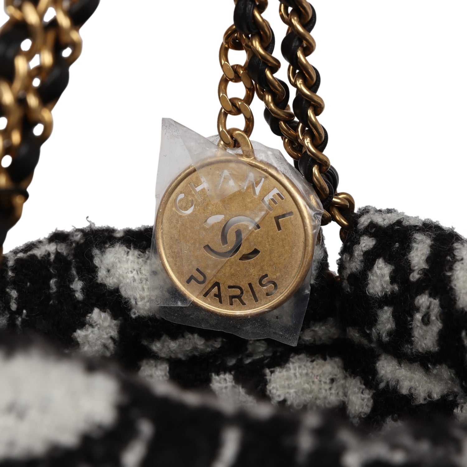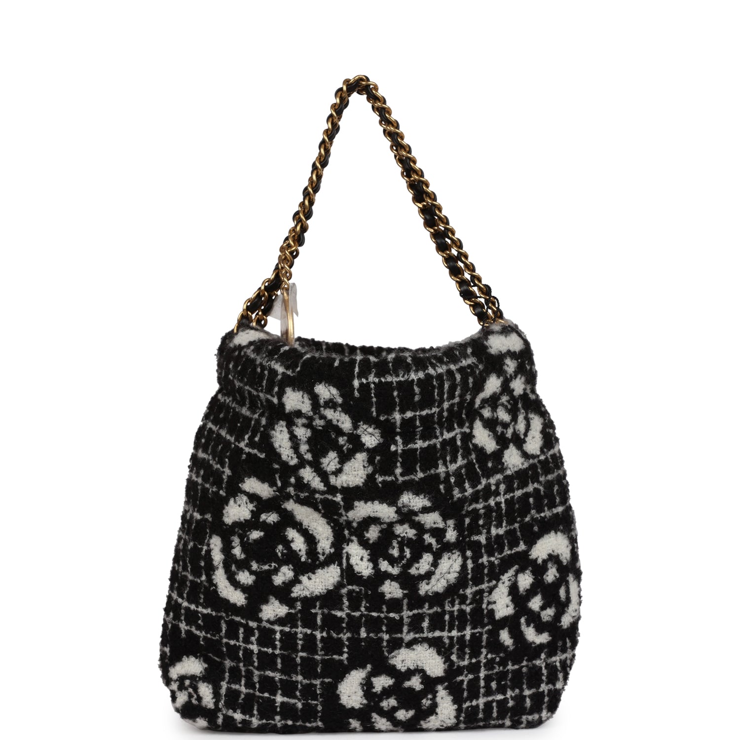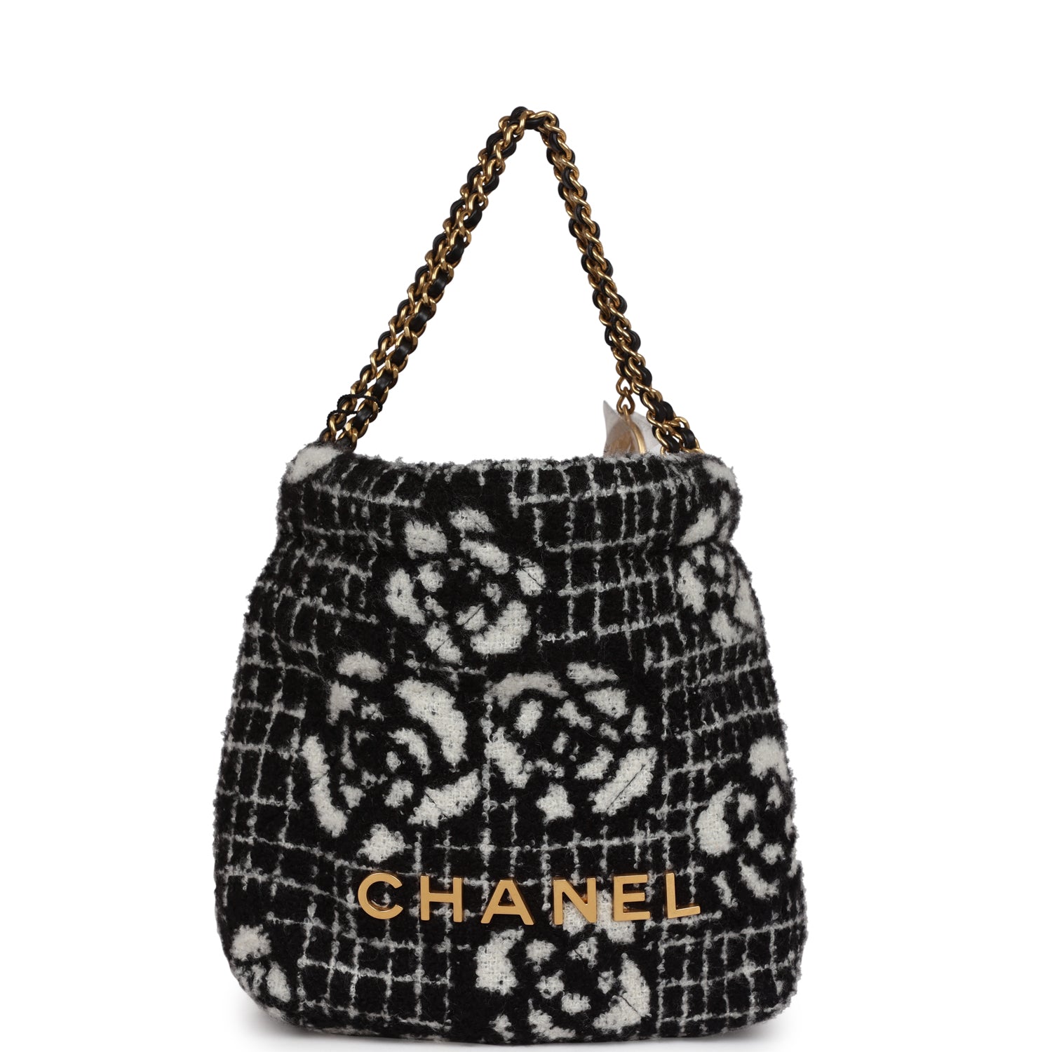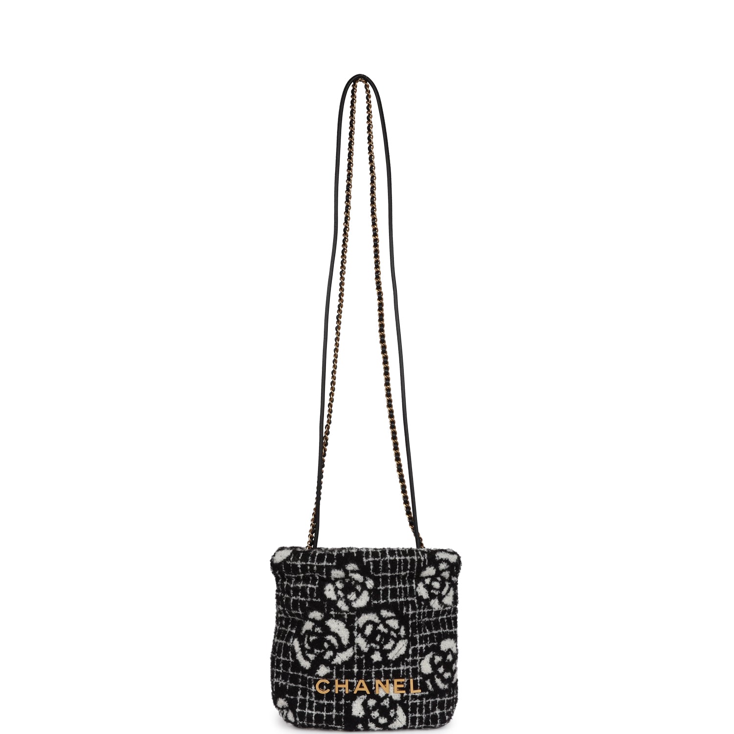 Chanel Mini 22 Bag Black and White Floral Tweed Gold Hardware