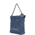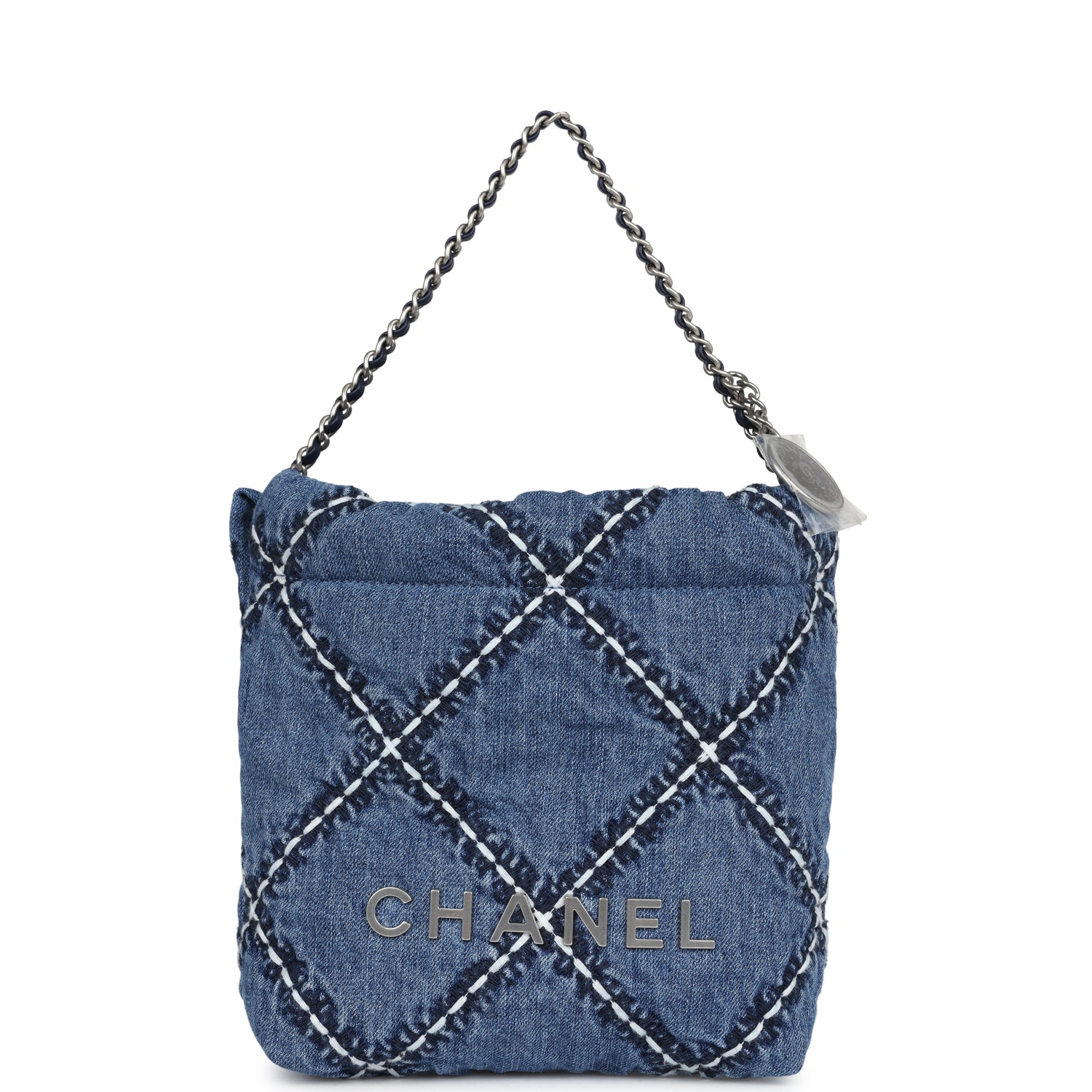 Chanel Mini 22 Bag Blue Stitched Denim Silver Hardware
