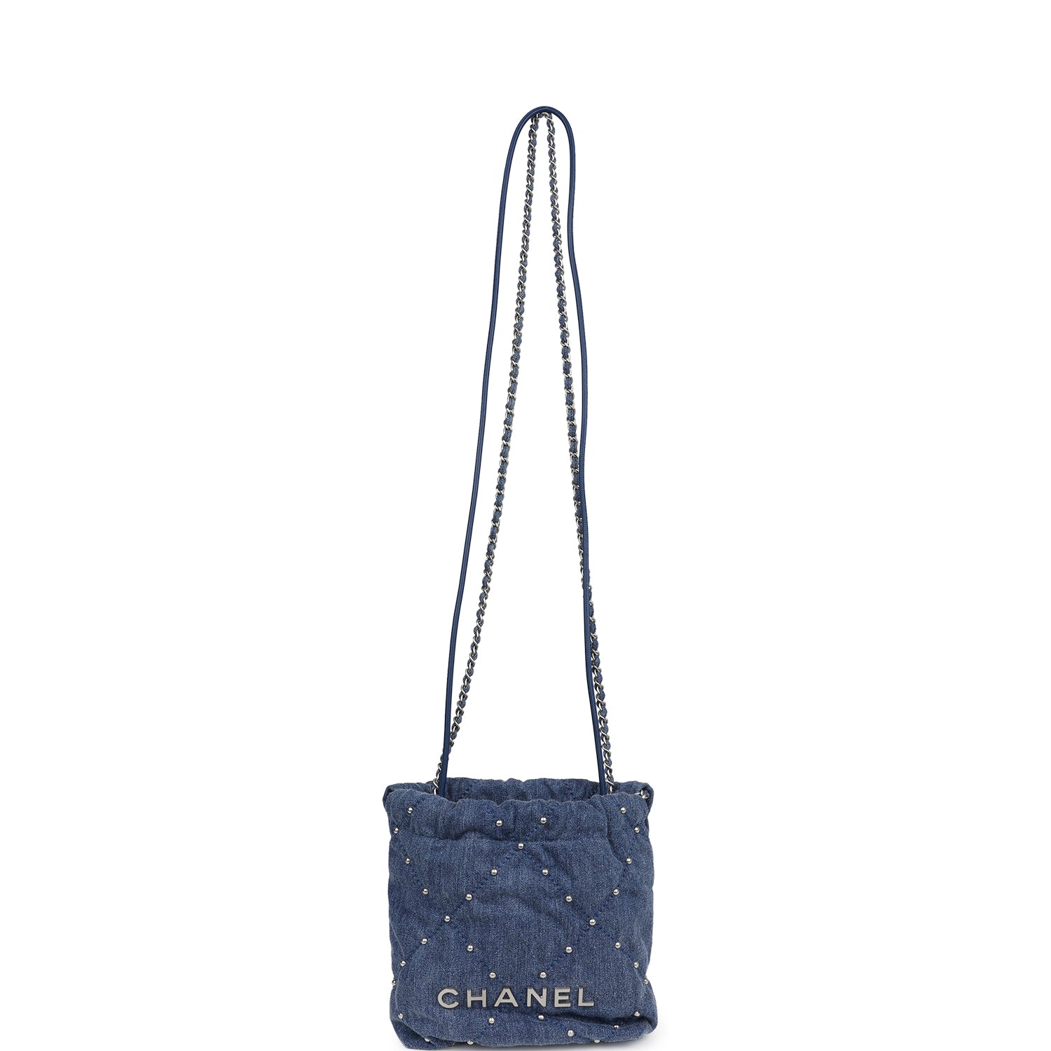 Chanel Mini 22 Bag Blue Studded Denim Silver Hardware