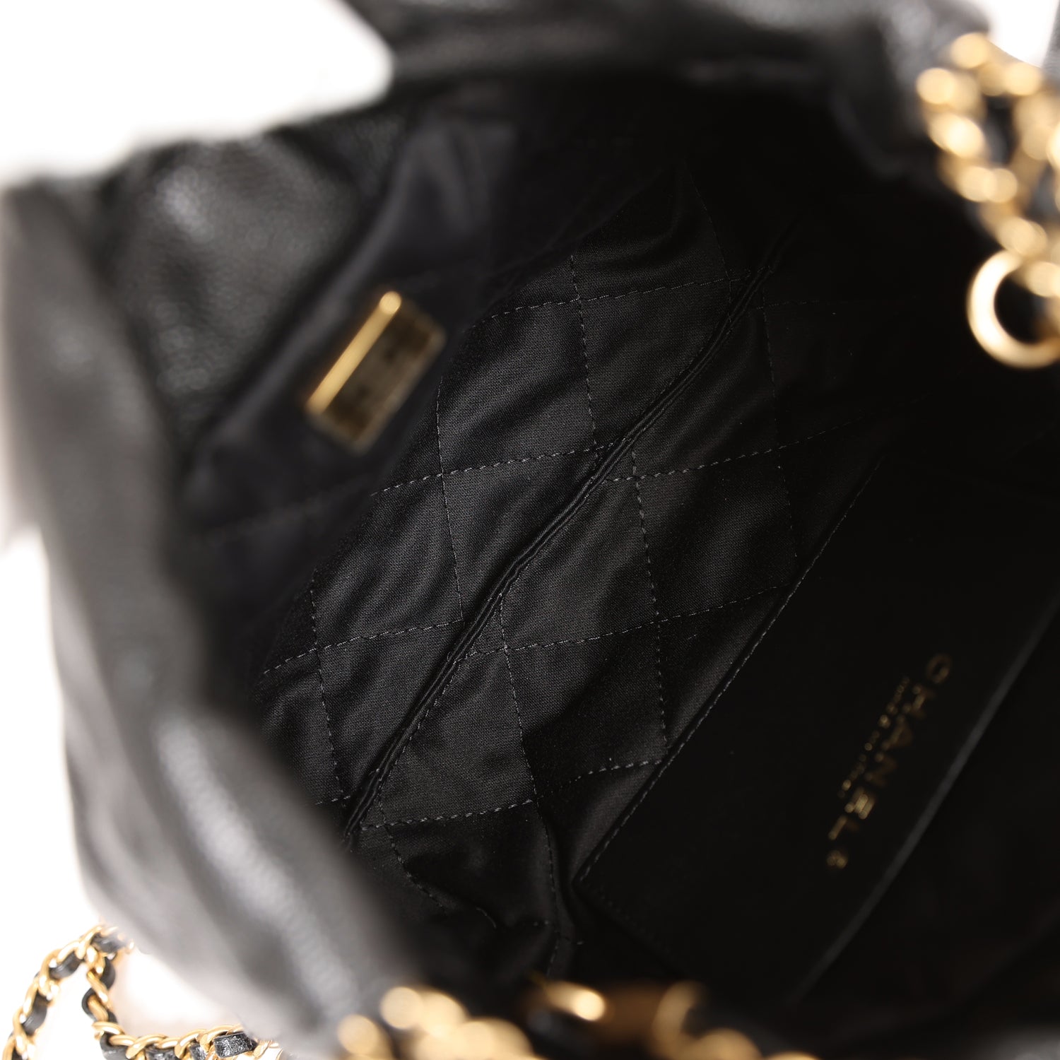 Chanel Mini 22 Bag Black Pebbled Calfskin Gold Hardware