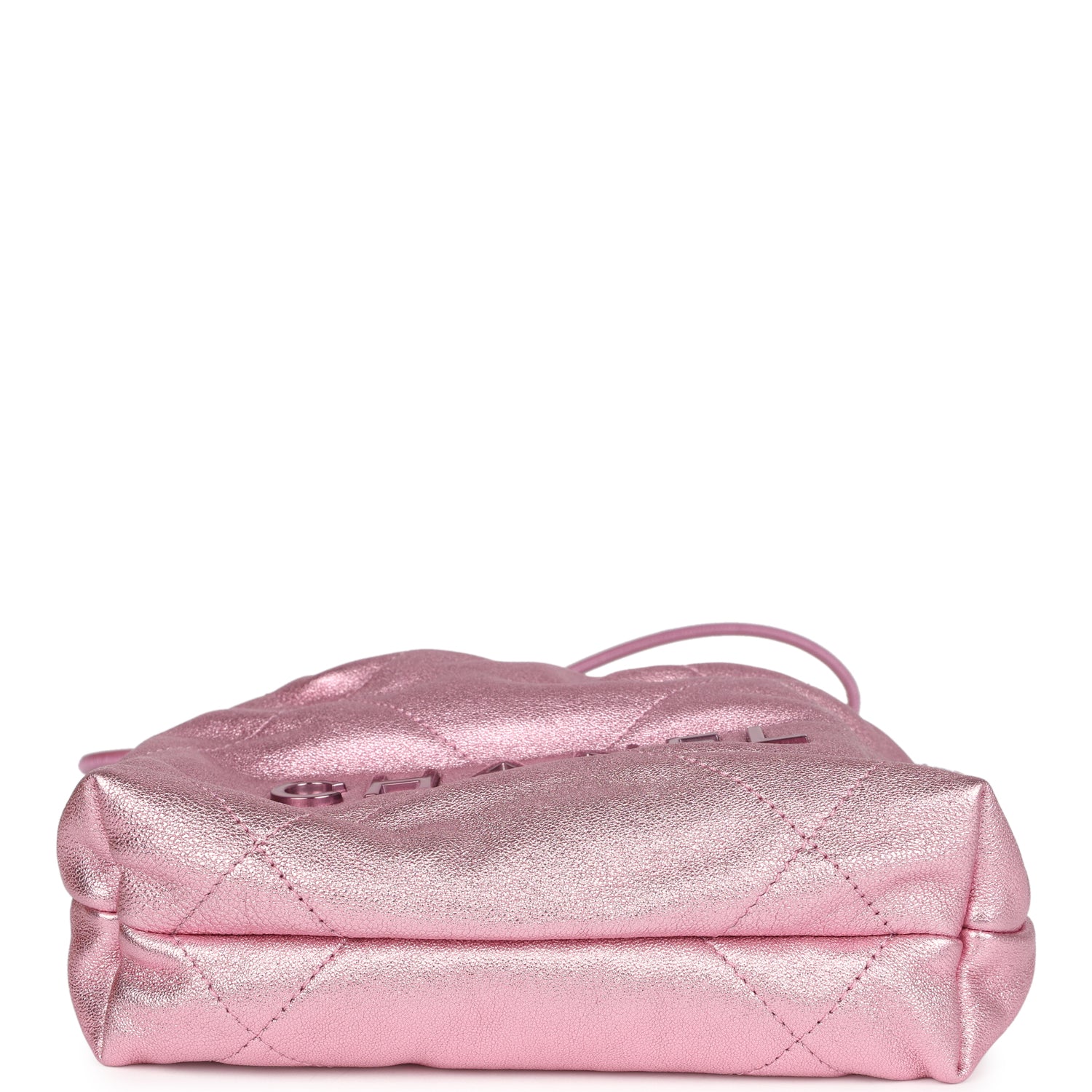 Chanel Mini 22 Bag Pink Metallic Lambskin Lacquered Metal Hardware