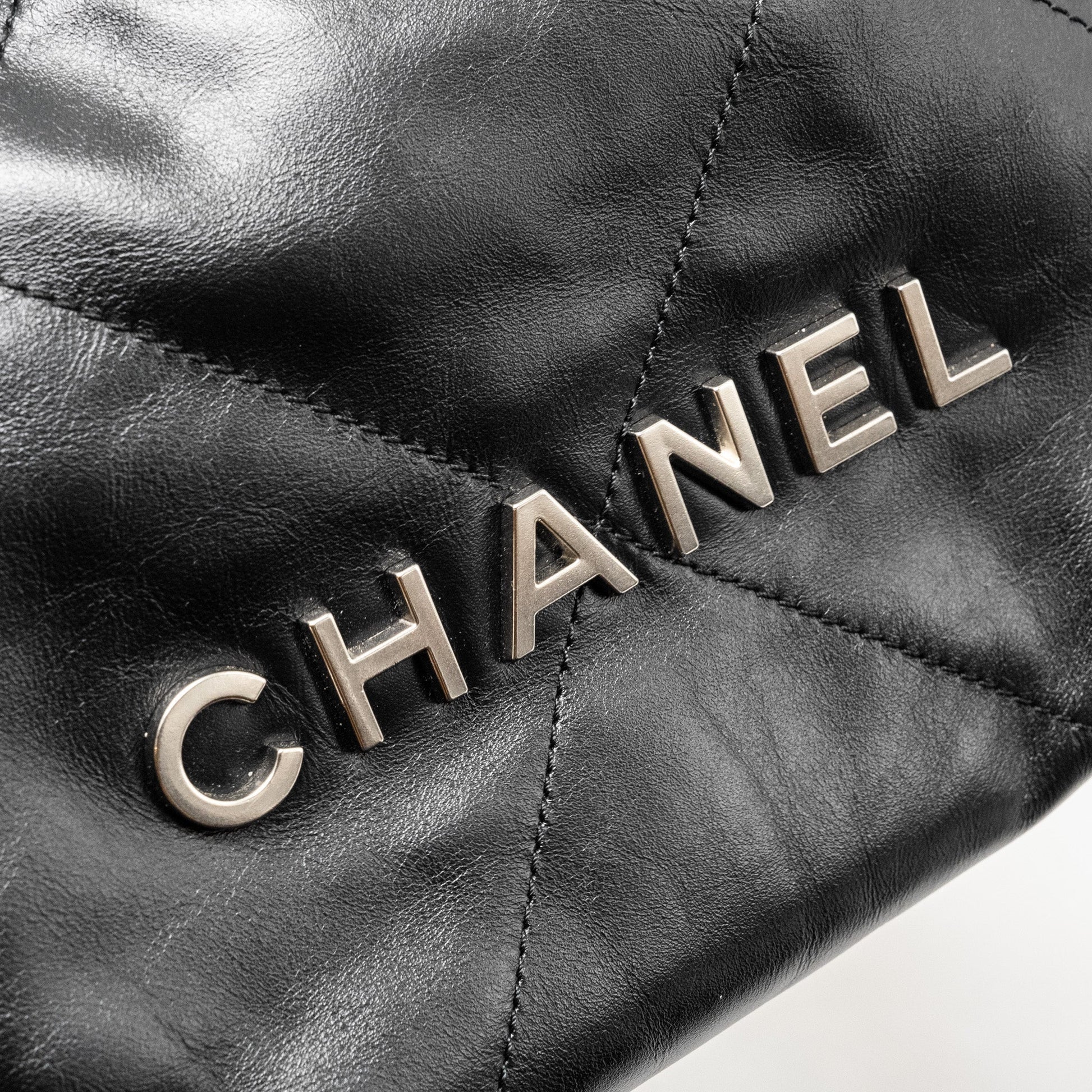 Chanel mini 22 Bag Shiny Calfskin Black SHW (Microchip)