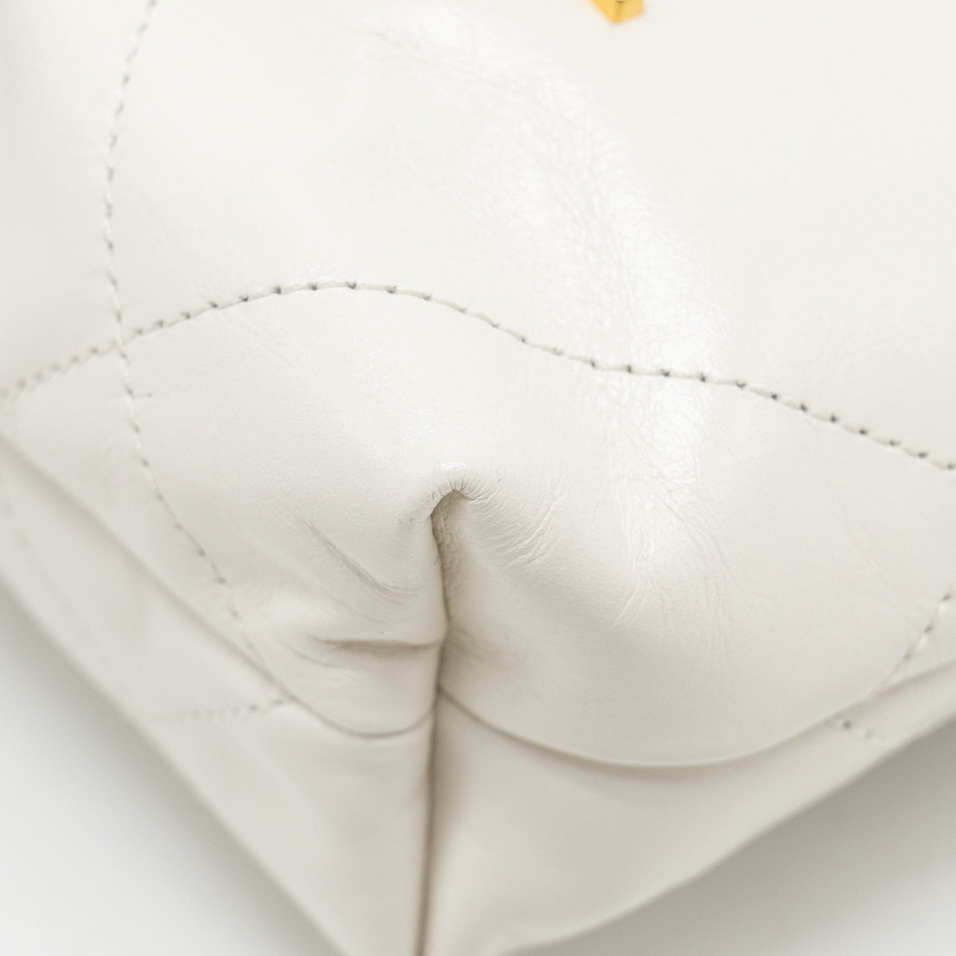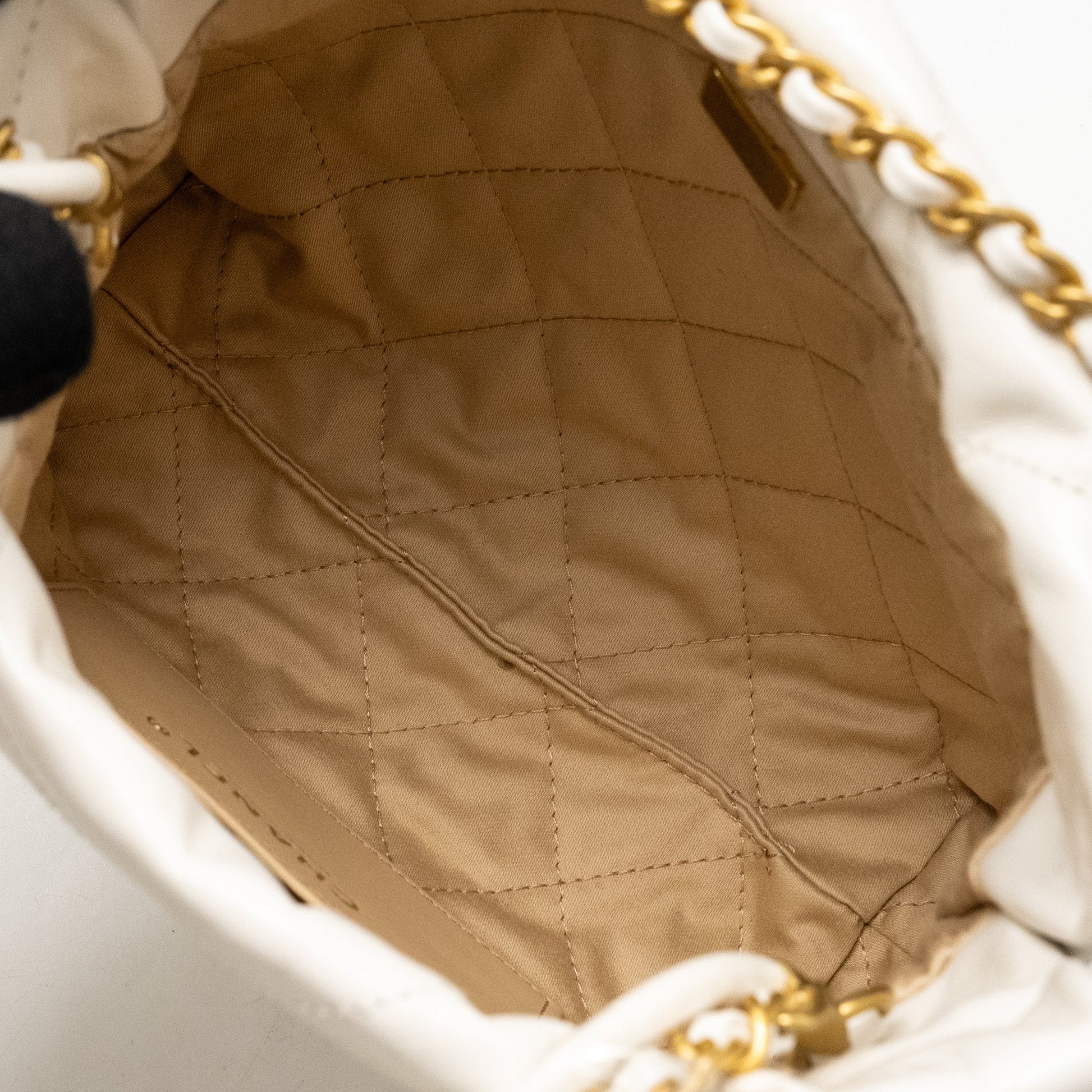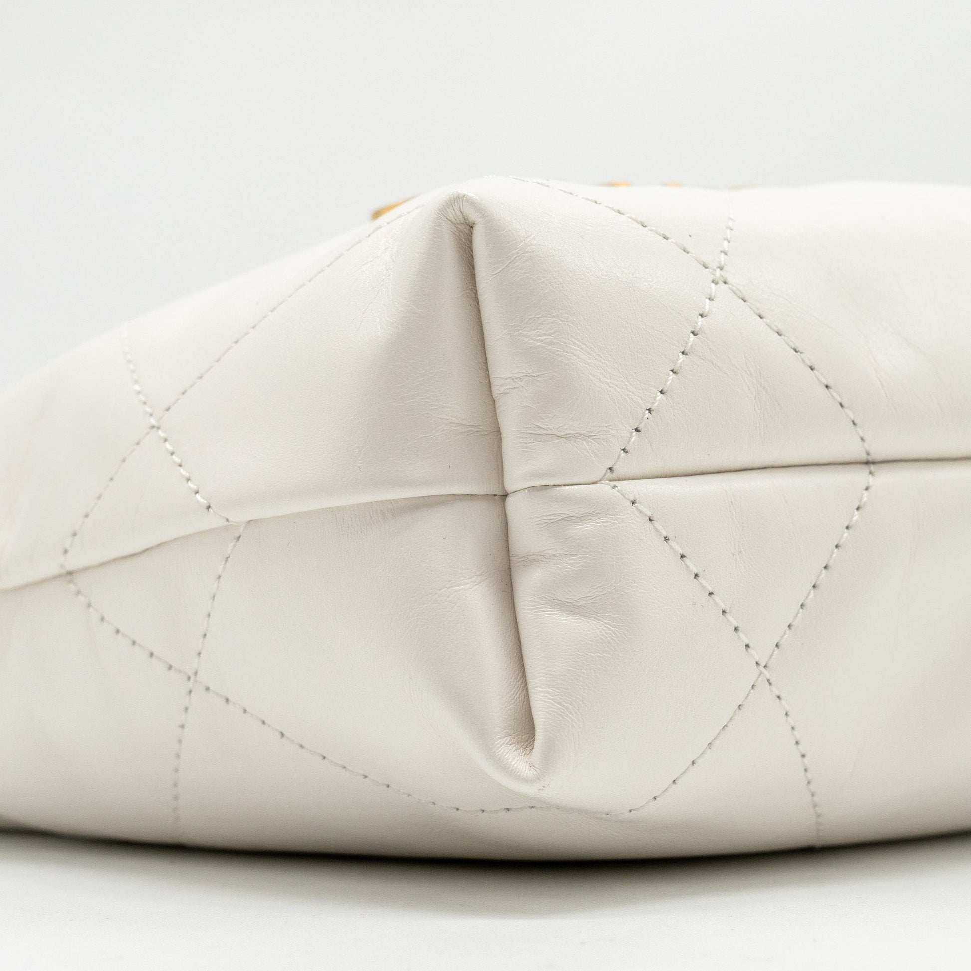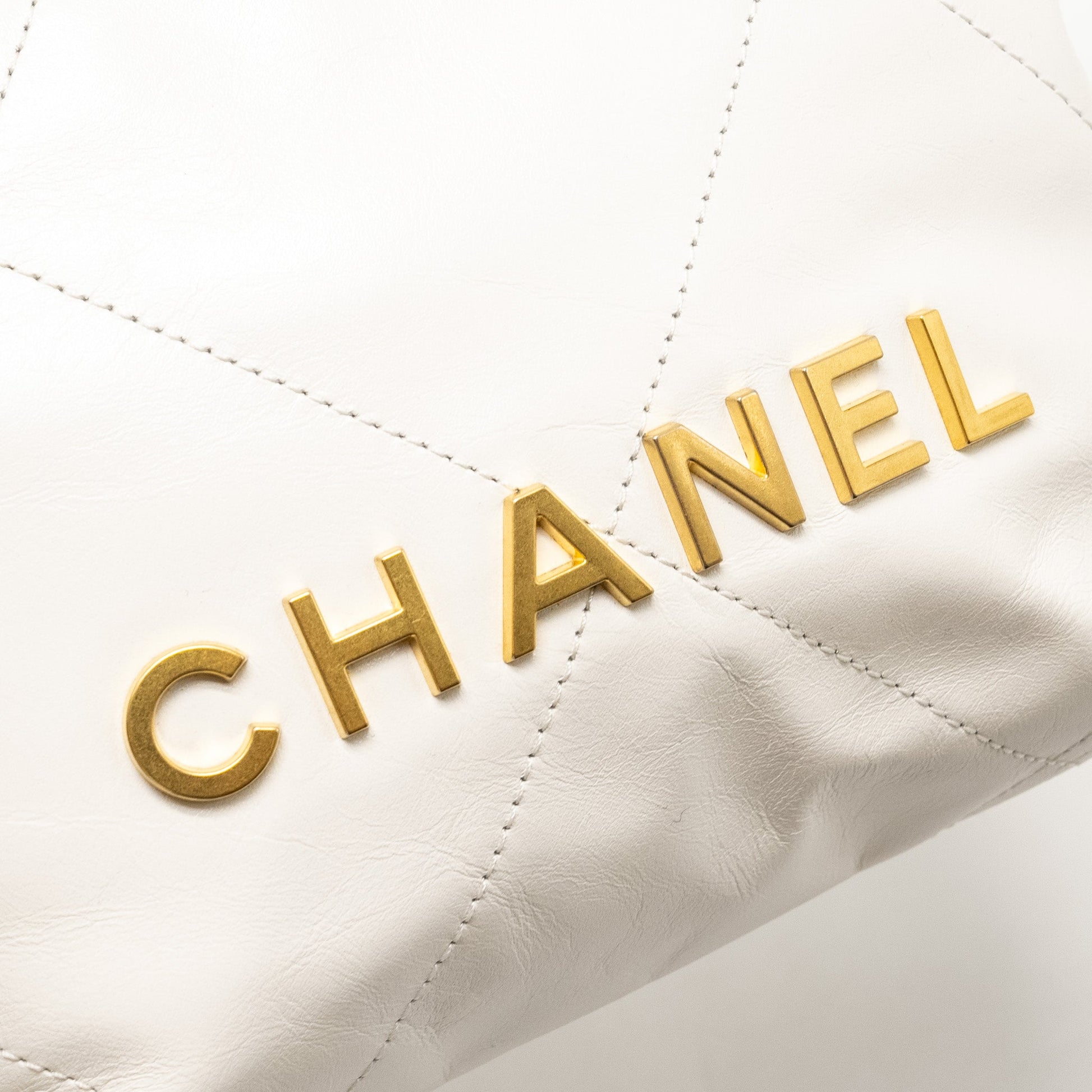 Chanel Mini 22 Bag Shiny Calfskin White GHW (Microchip)