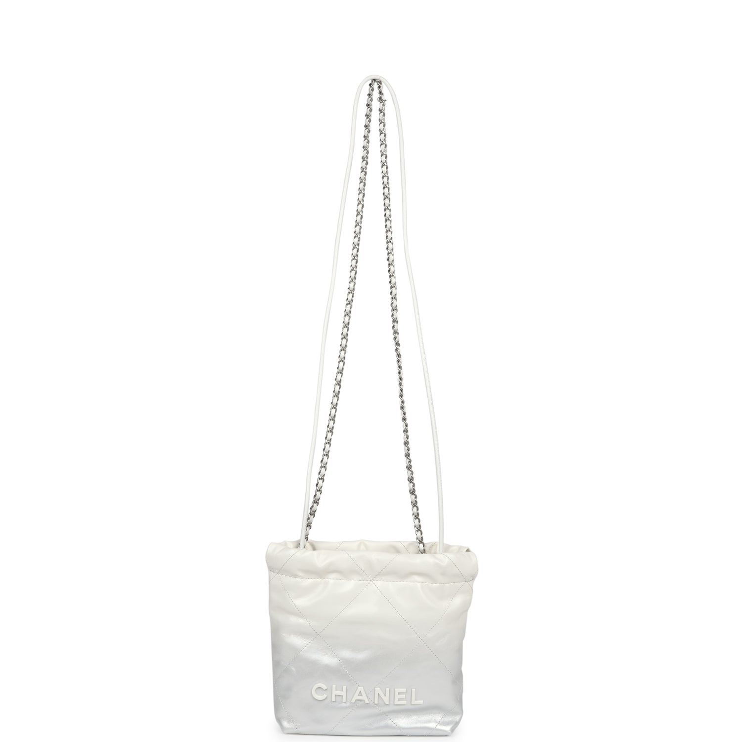 Chanel Mini 22 Bag White and Silver Ombre Metallic Calfskin Silver Hardware