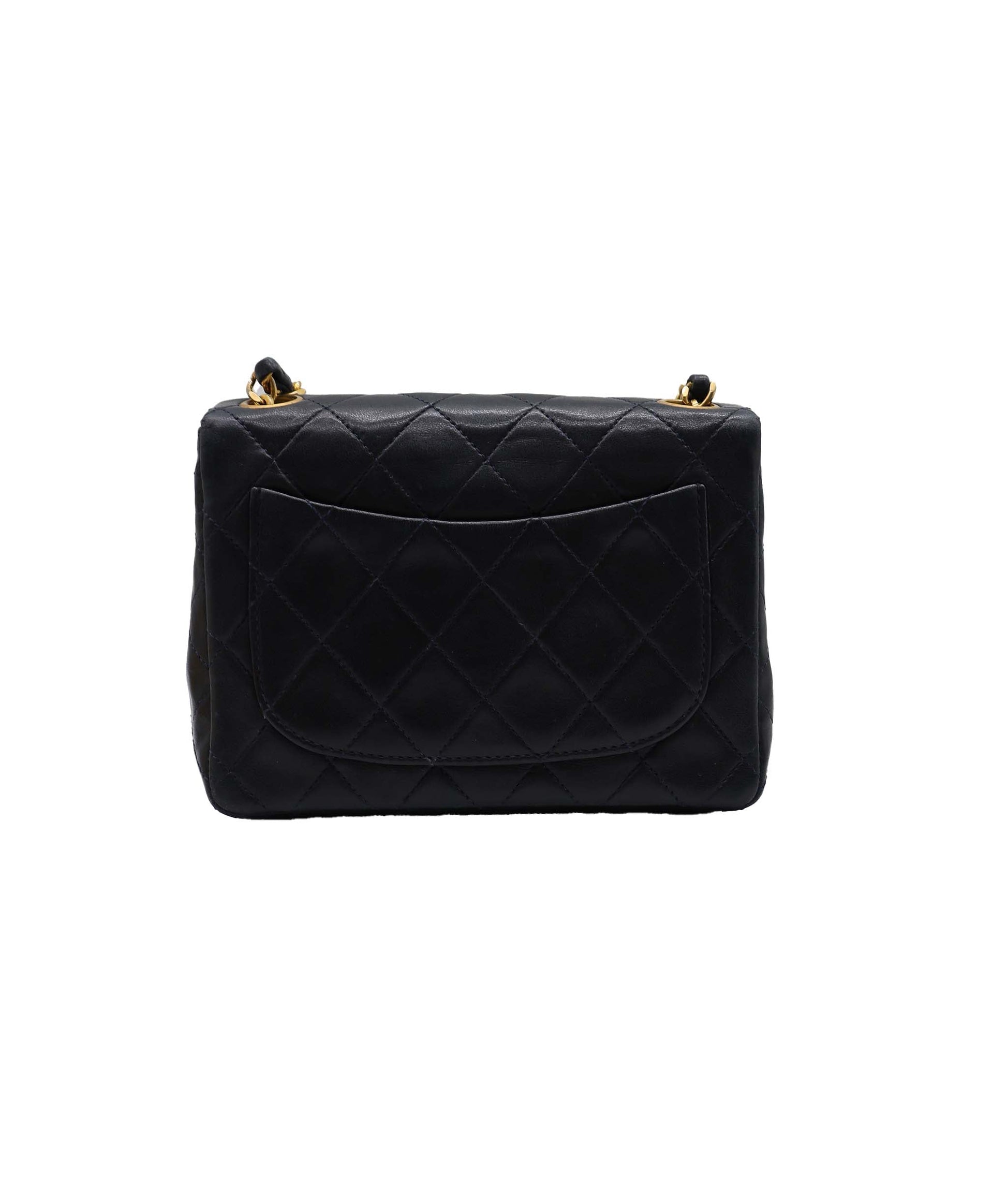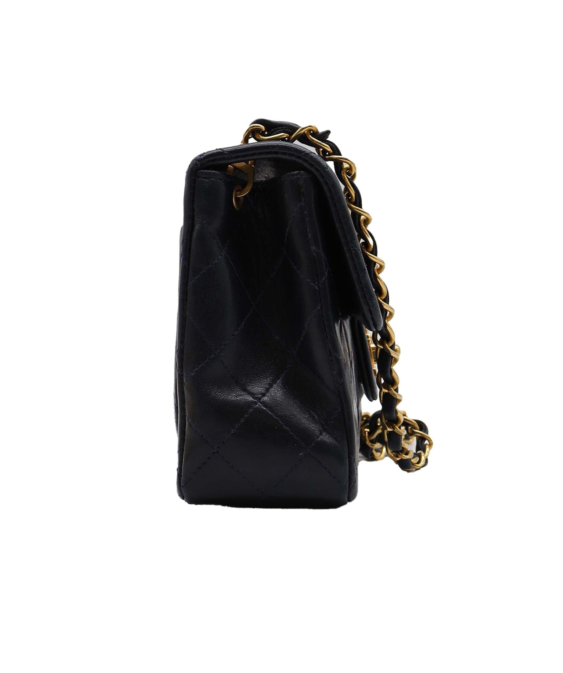 CHANEL VINTAGE MINI SQUARE 20 CHAIN SHOULDER BAG NAVY LAMB SKIN WITH GOLD HARDWARE. BUTTERY SOFT LAMBSKIN. NICE CLEAN CORNERS. NO TARNISH ON HARDWARE. SERIAL 1451344 (1989/91)