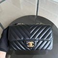 Mini Classic Flap 20CM Chevron Lambskin Black Golden Hardware Series 27