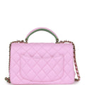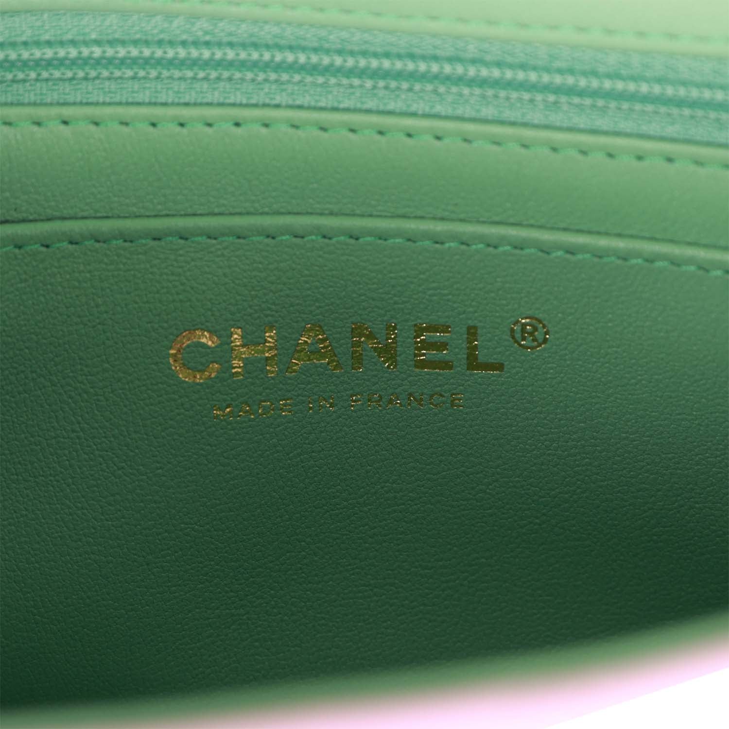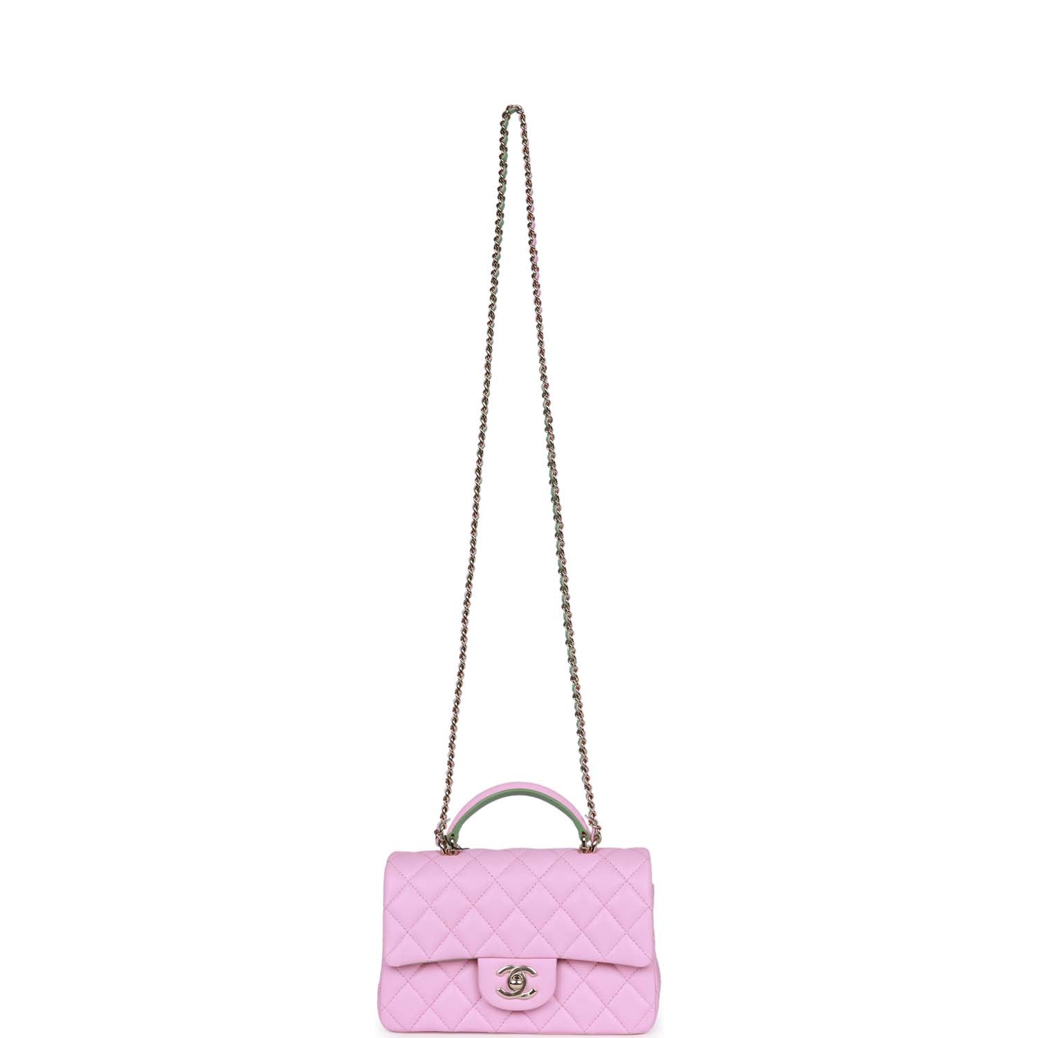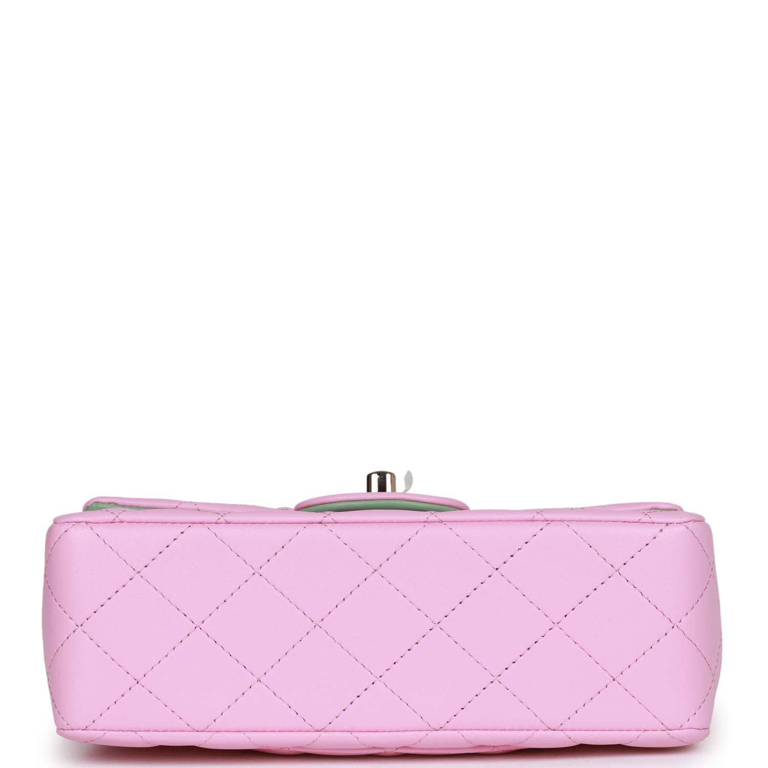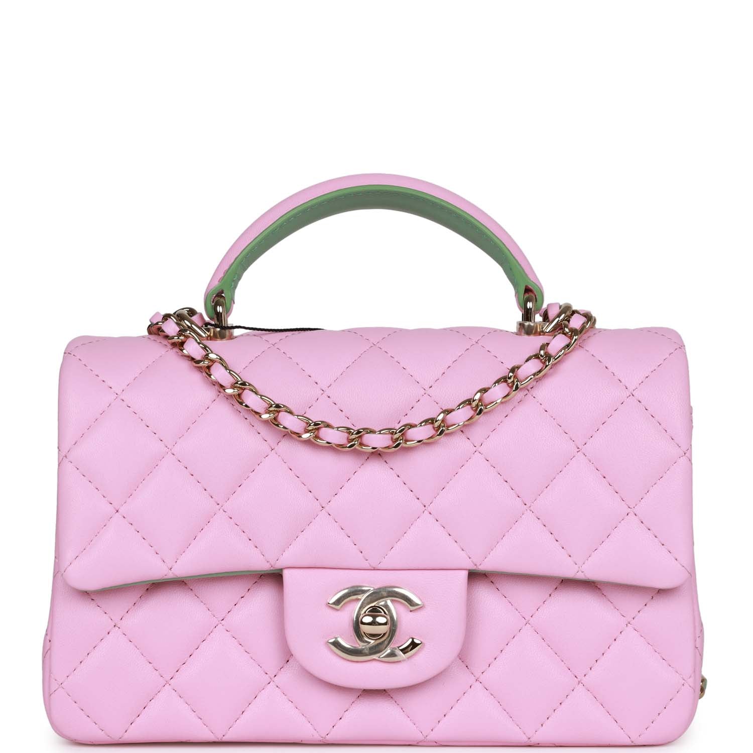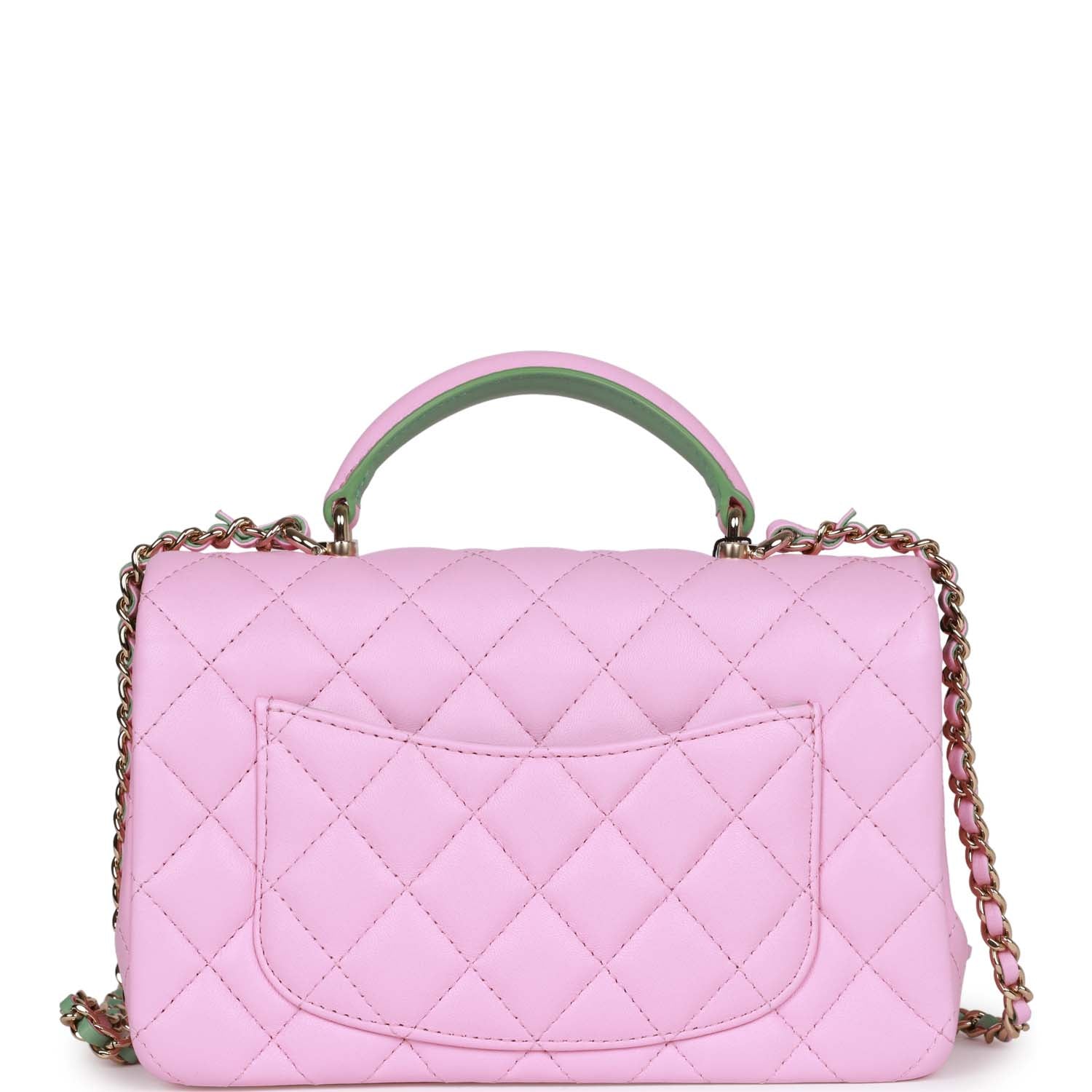 Chanel Mini Rectangular Flap with Top Handle Pink and Green Lambskin Light Gold Hardware