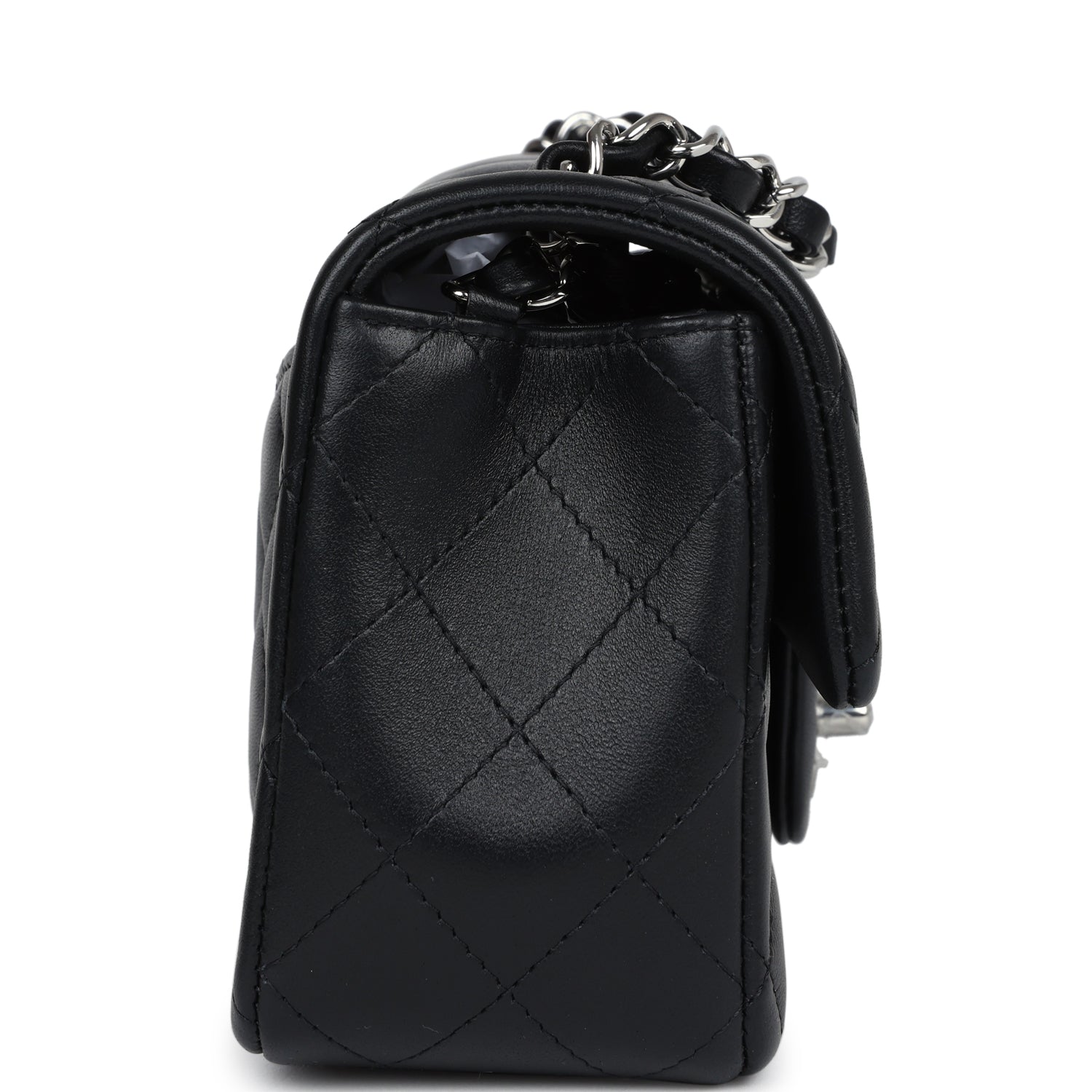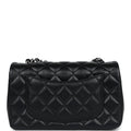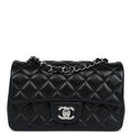 Chanel Mini Rectangular Flap Black Lambskin Silver Hardware