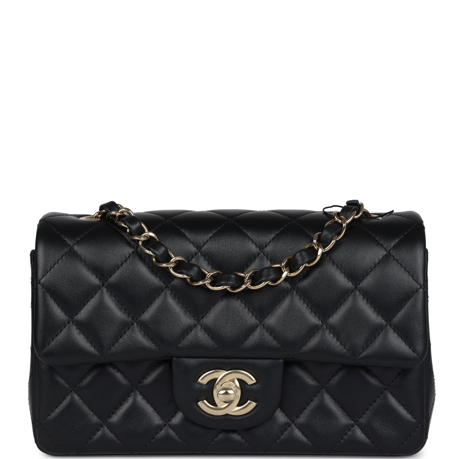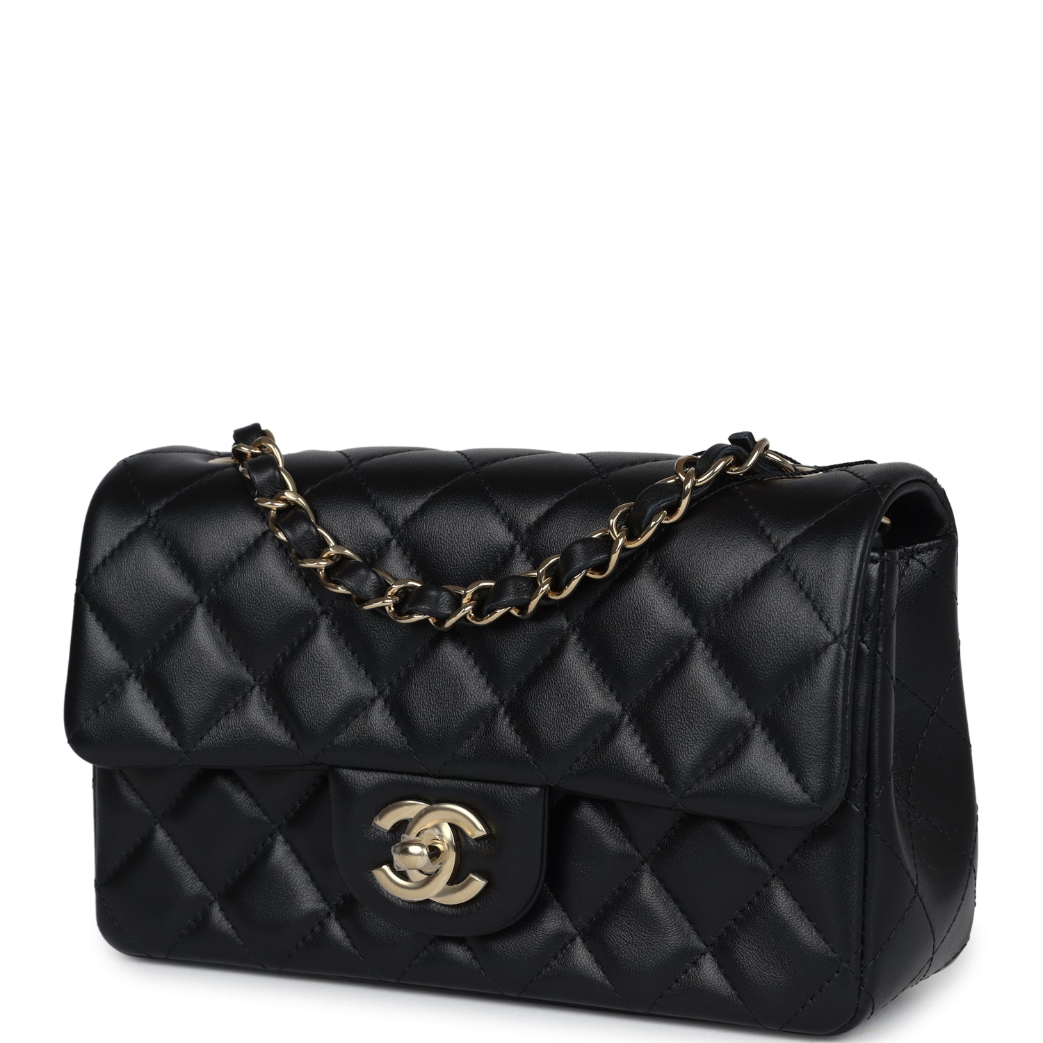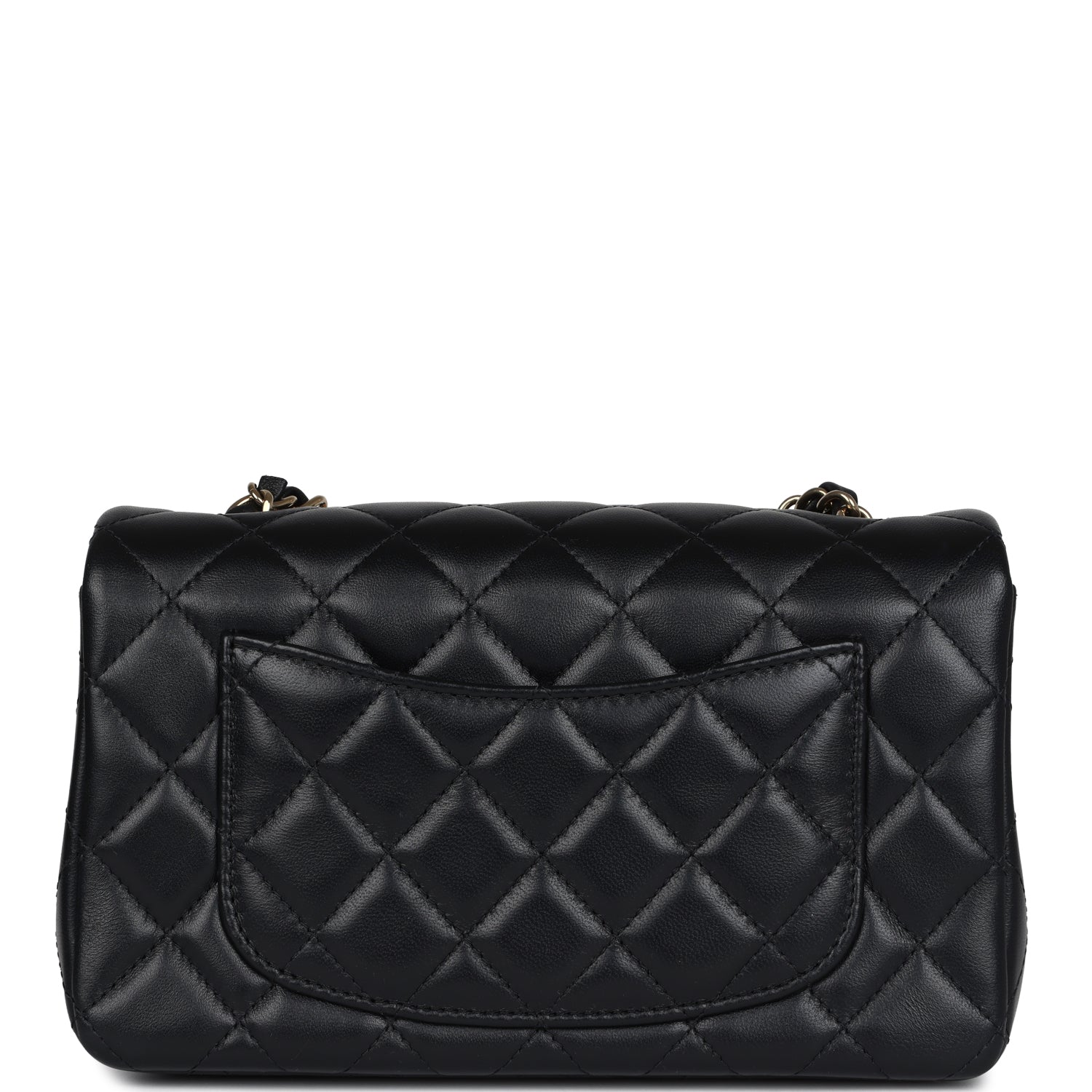 Chanel Mini Classic Rectangular Flap Bag Black Lambskin Light Gold Hardware
