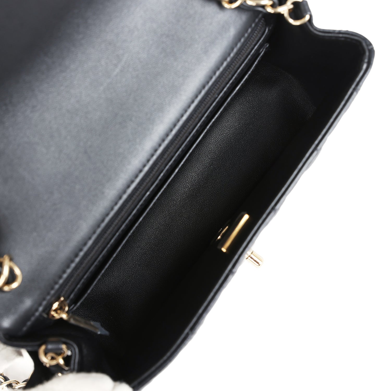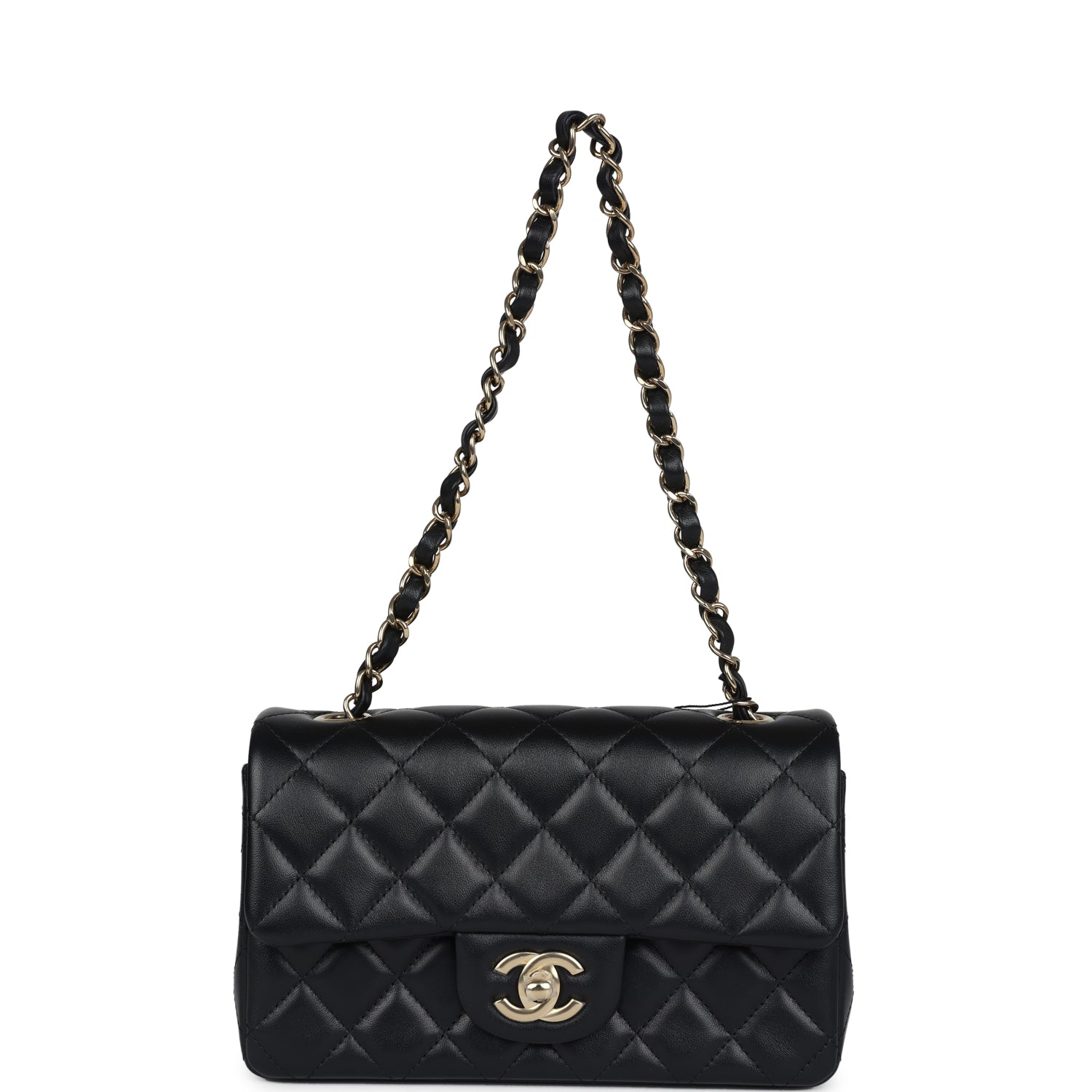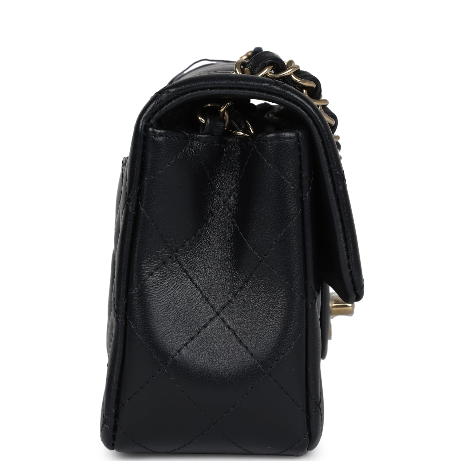 Chanel Mini Classic Rectangular Flap Bag Black Lambskin Light Gold Hardware