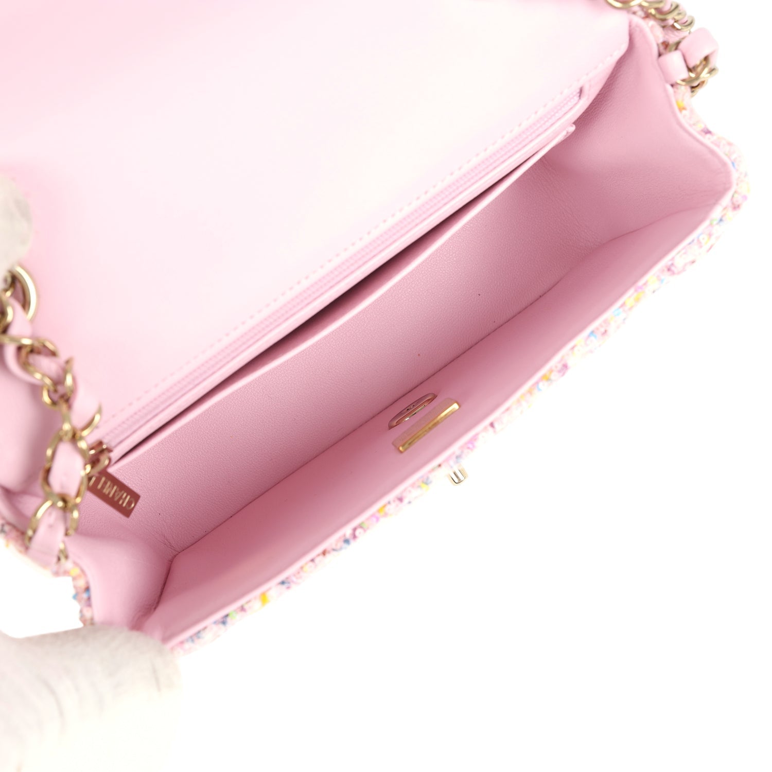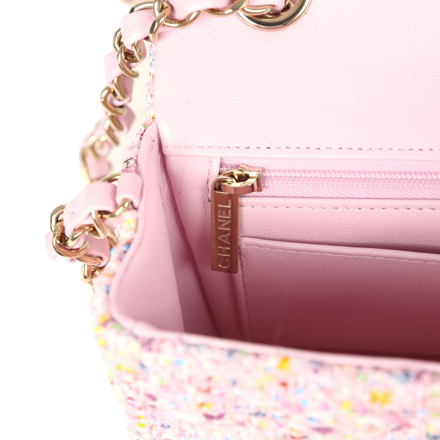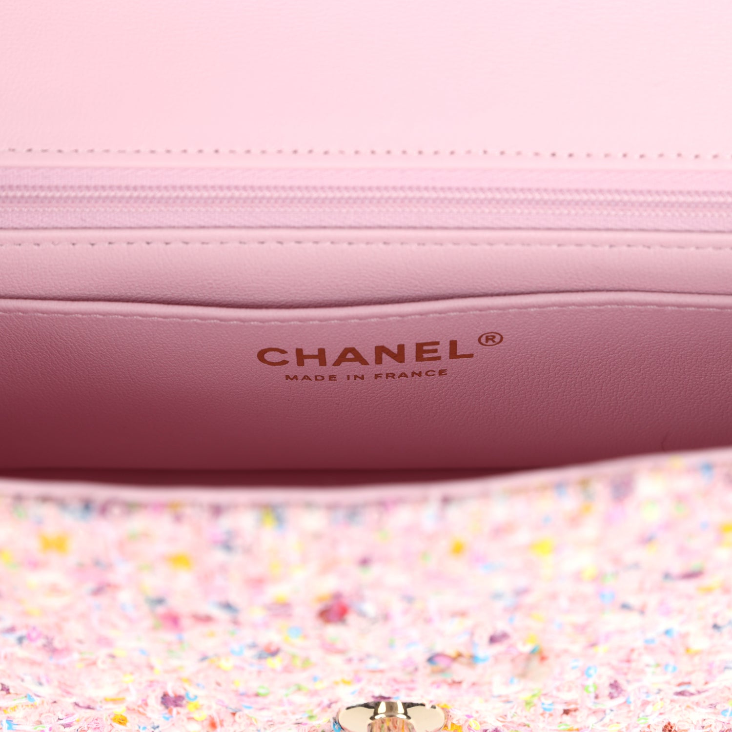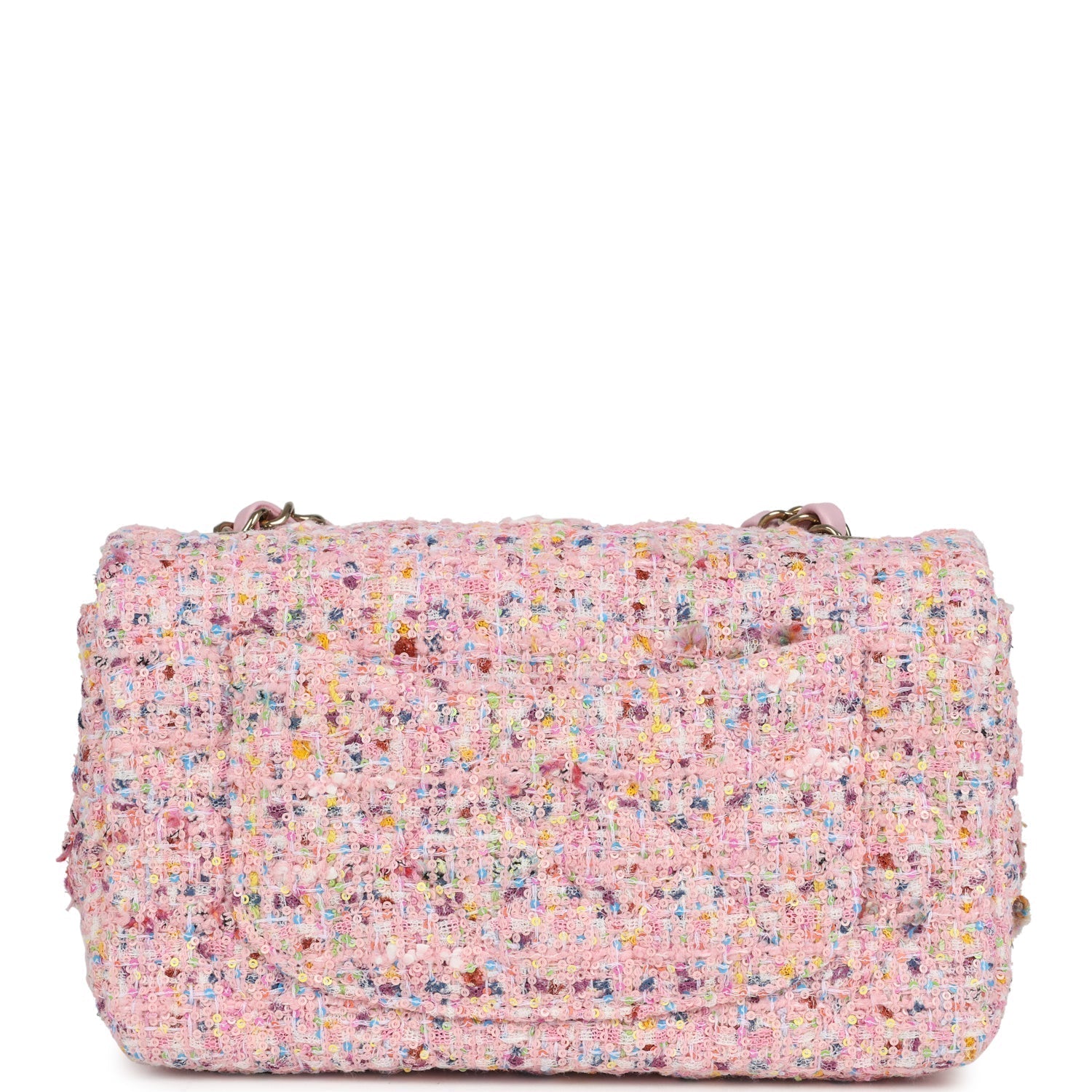 Chanel Mini Classic Rectangular Flap Bag Pink Tweed and Sequin Light Gold Hardware