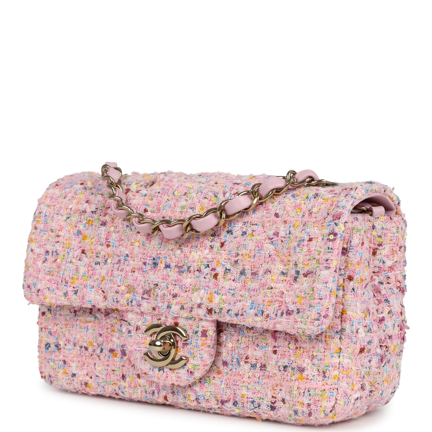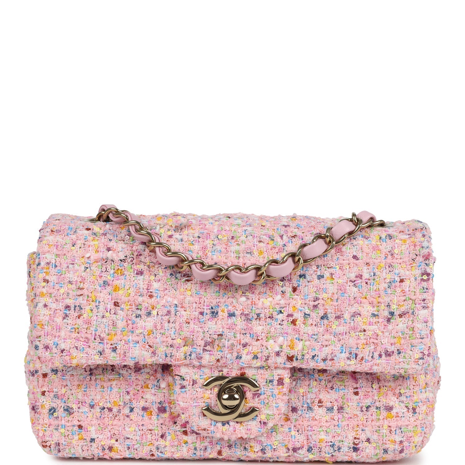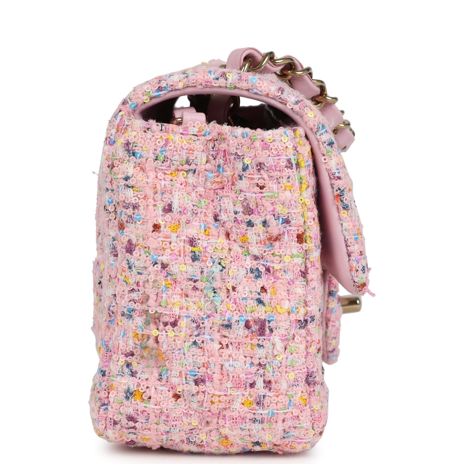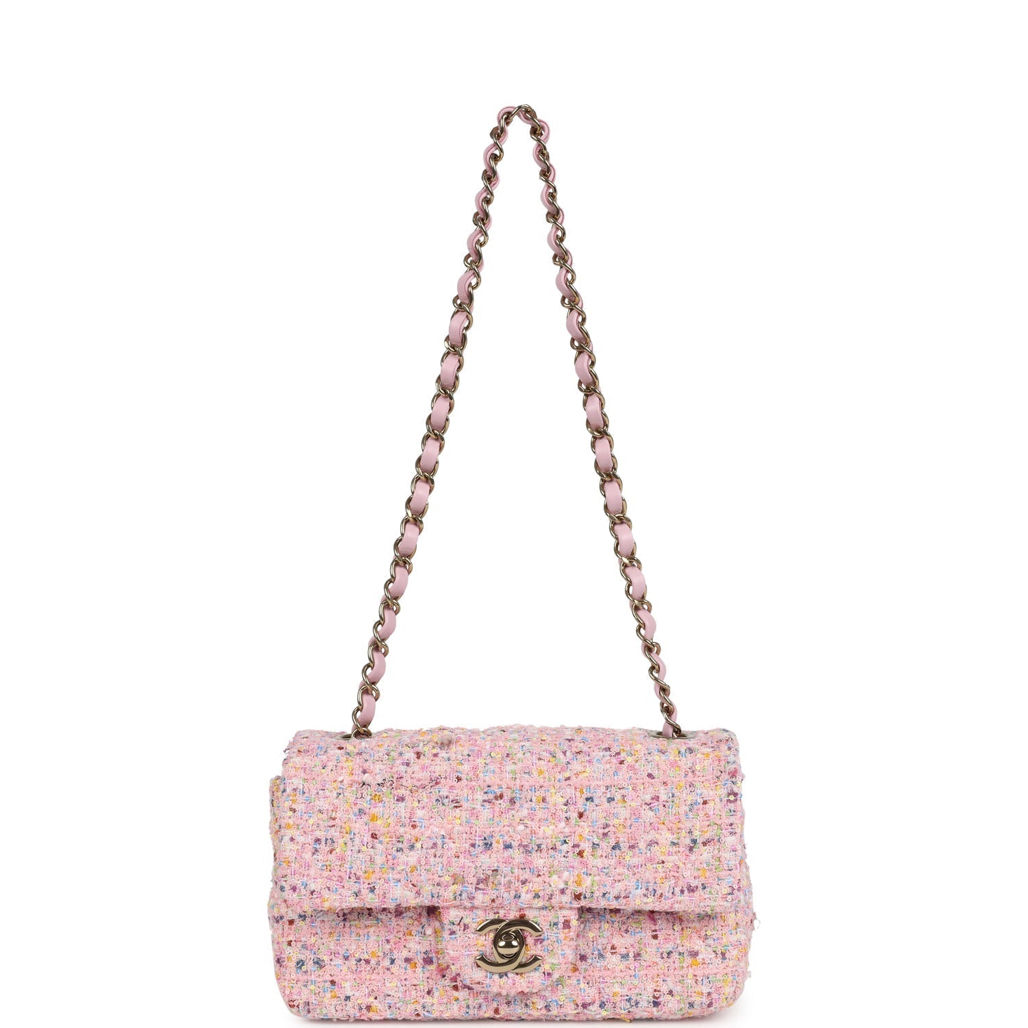 Chanel Mini Classic Rectangular Flap Bag Pink Tweed and Sequin Light Gold Hardware