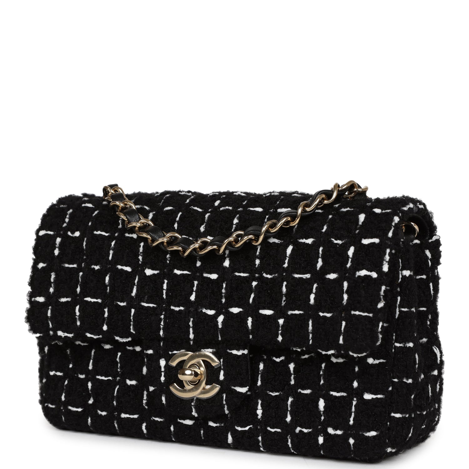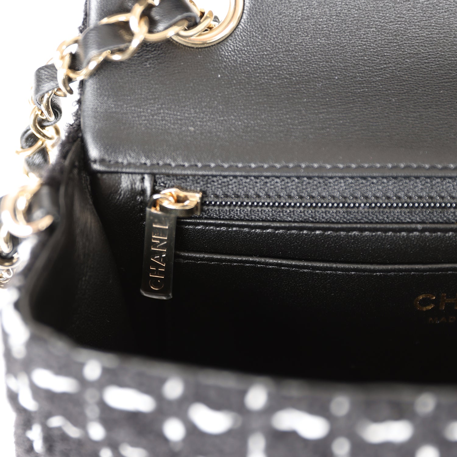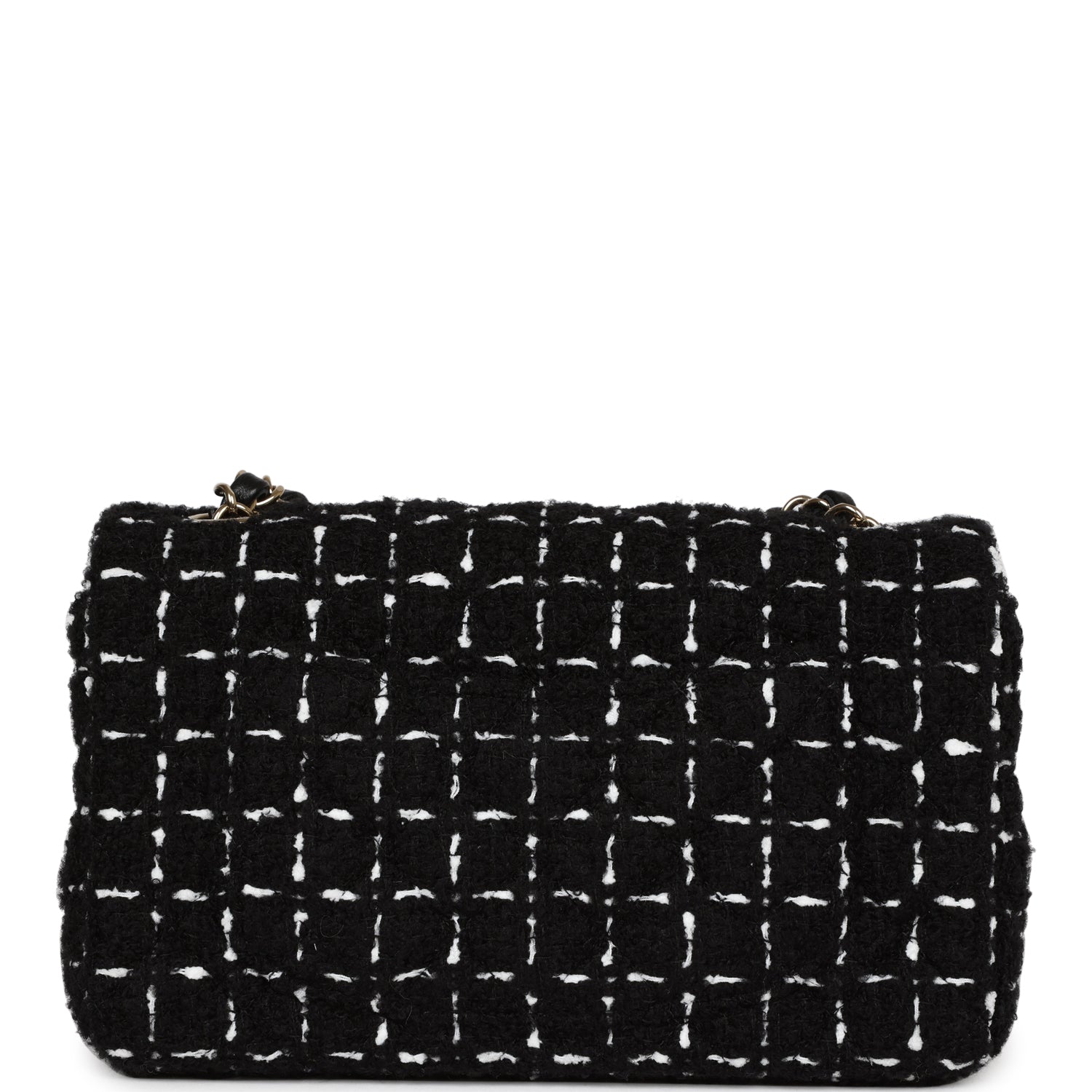 Chanel Mini Classic Rectangular Flap Black and White Tweed Gold Hardware