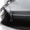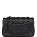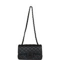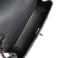 This Mini Classic Rectangular Flap Bag is in So Black Iridescent lambskin with black hardware and features a front flap with CC turnlock closure, half moon back pocket and interwoven black chain link and black leather shoulder/crossbody strap.